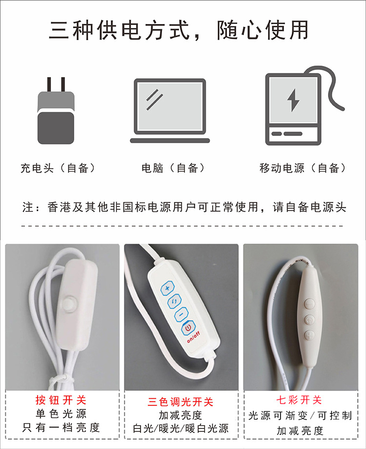 Usbタイプ (白色光),Usbタイプ (暖かい光),Usbタイプ (2色調光),Usbタイプ (カラフル調光),充電金 (白色光),充電金 (暖光),充電タイプ (2色調光),充電金 (カラフル調光)