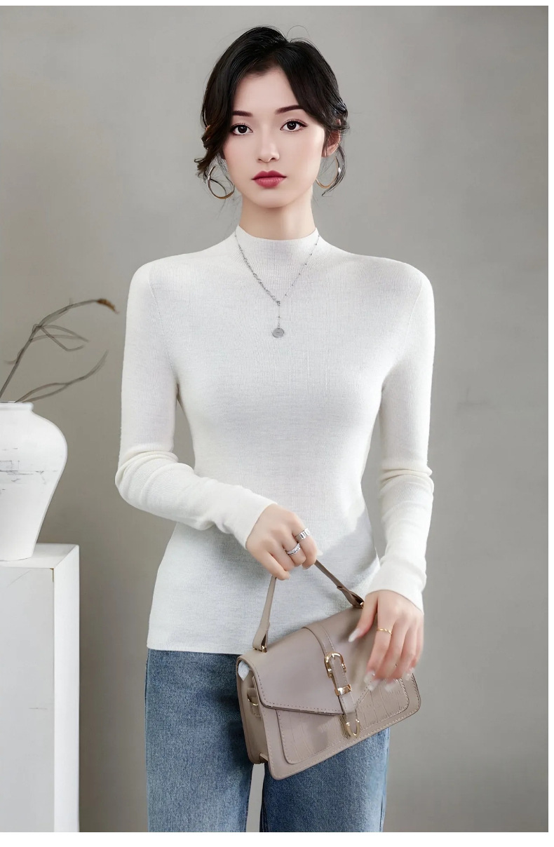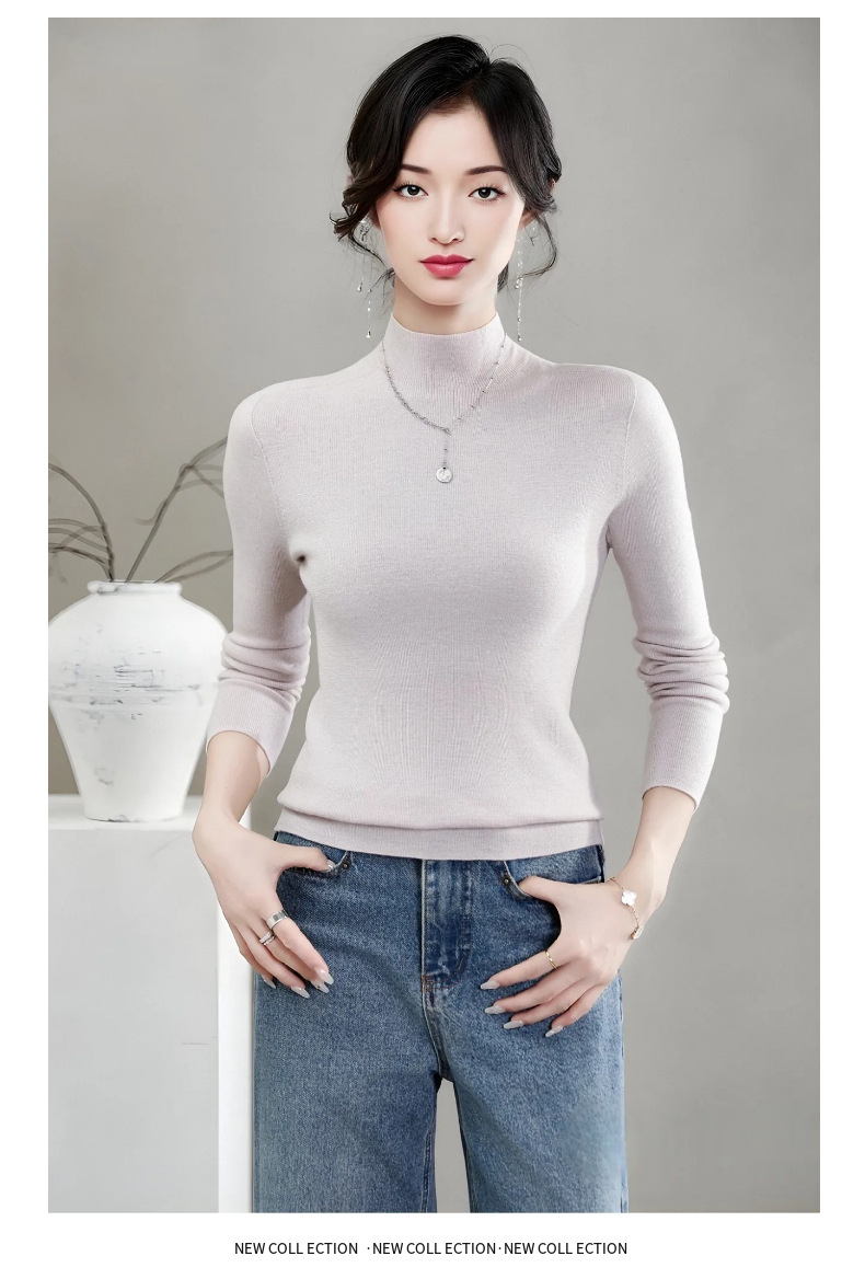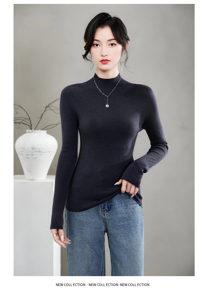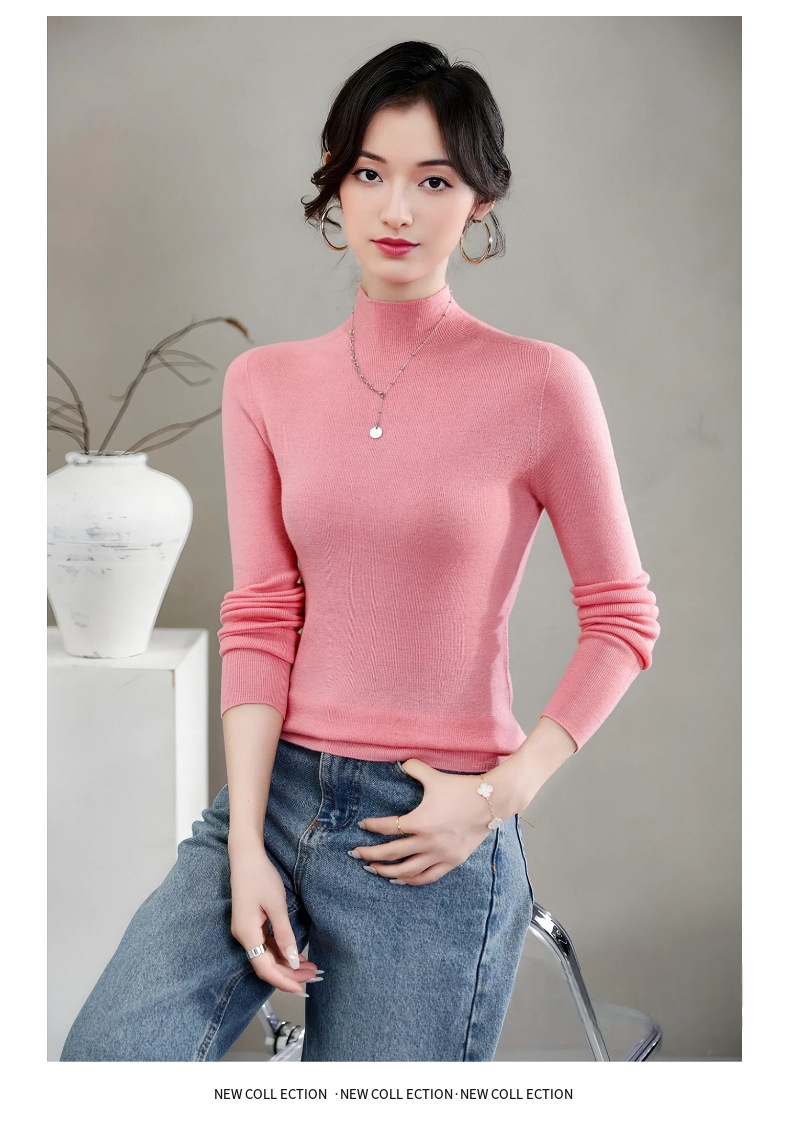 揚子糸ワンピース成形シームレスウールセーター女性のセータースリムハーフタートルネック 100% ウールニットボトリングシャツ