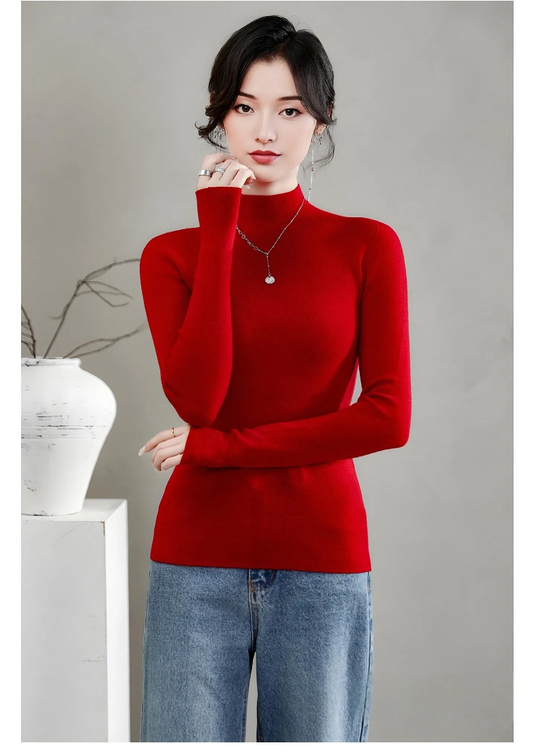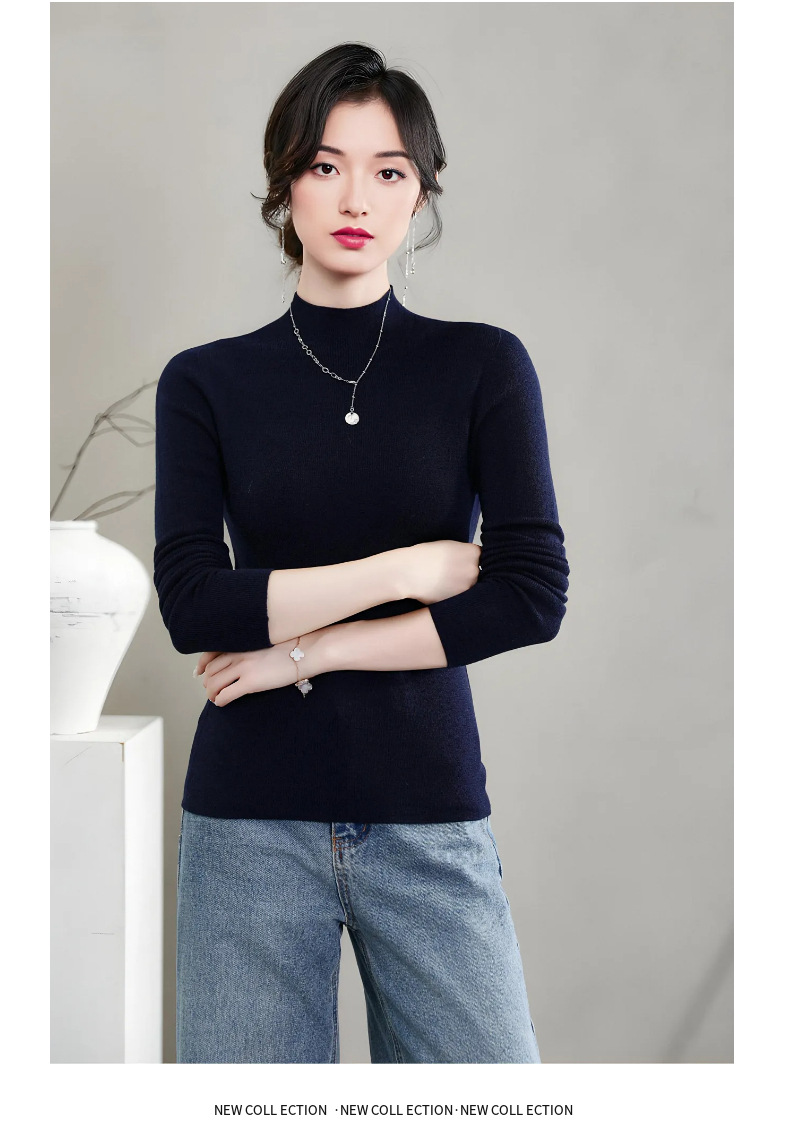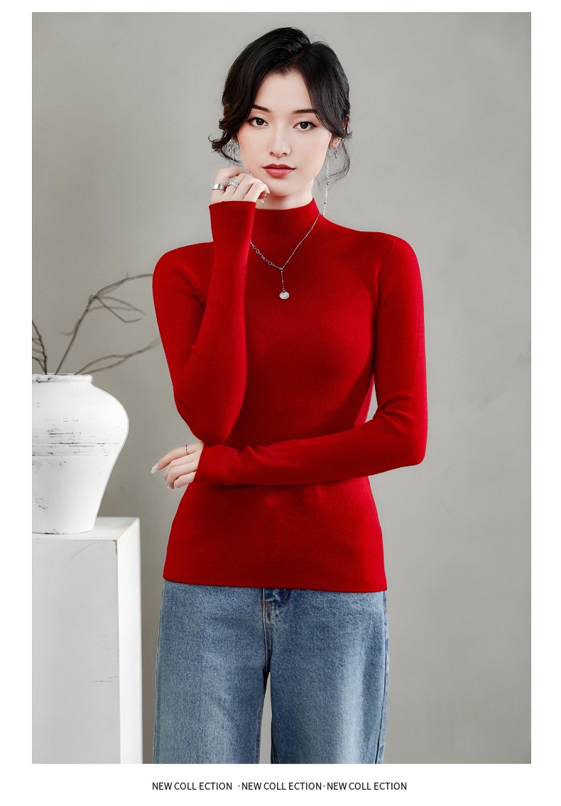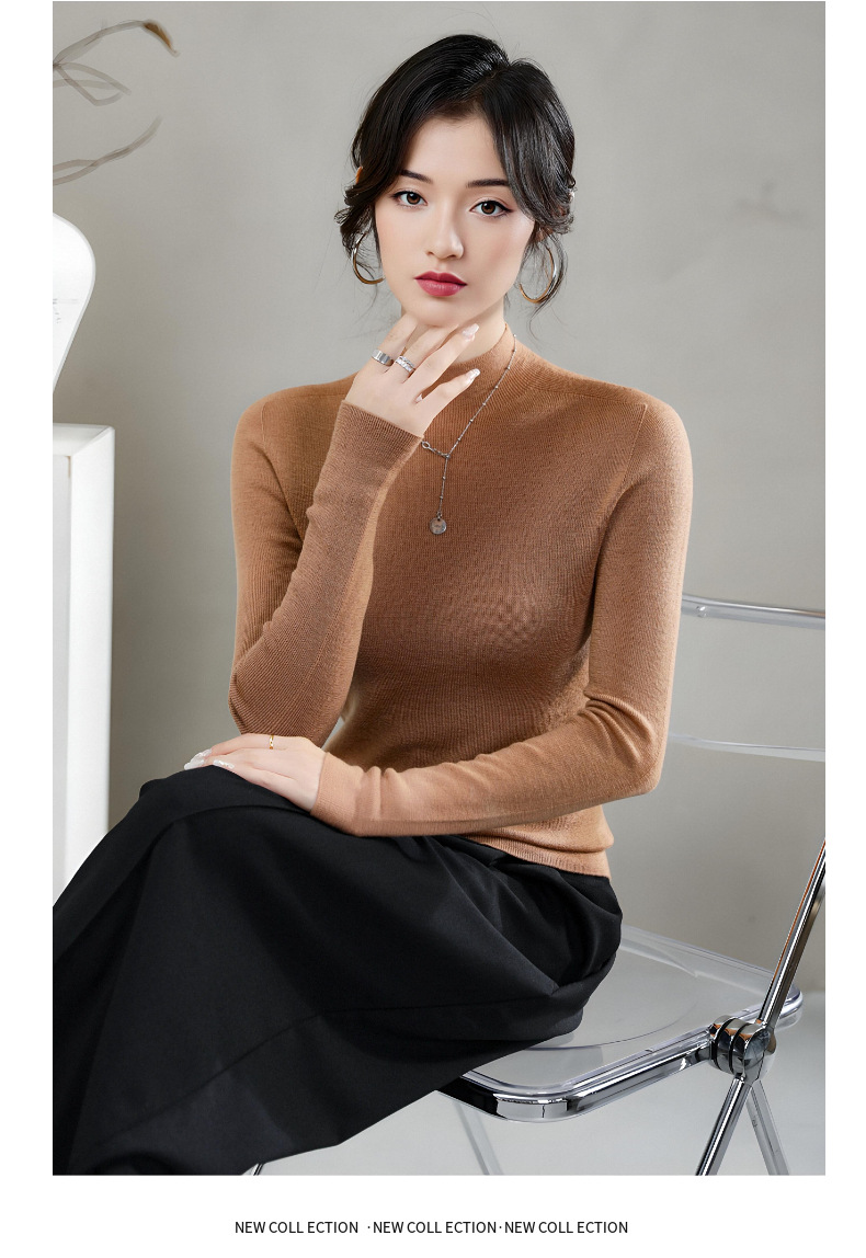 揚子糸ワンピース成形シームレスウールセーター女性のセータースリムハーフタートルネック 100% ウールニットボトリングシャツ