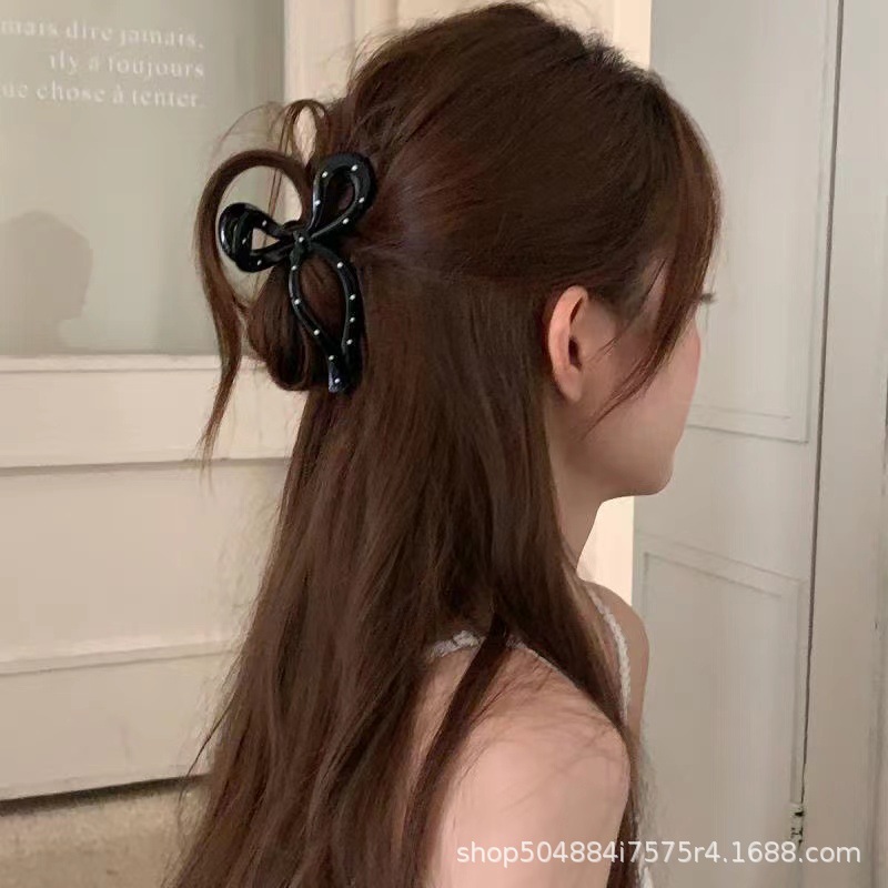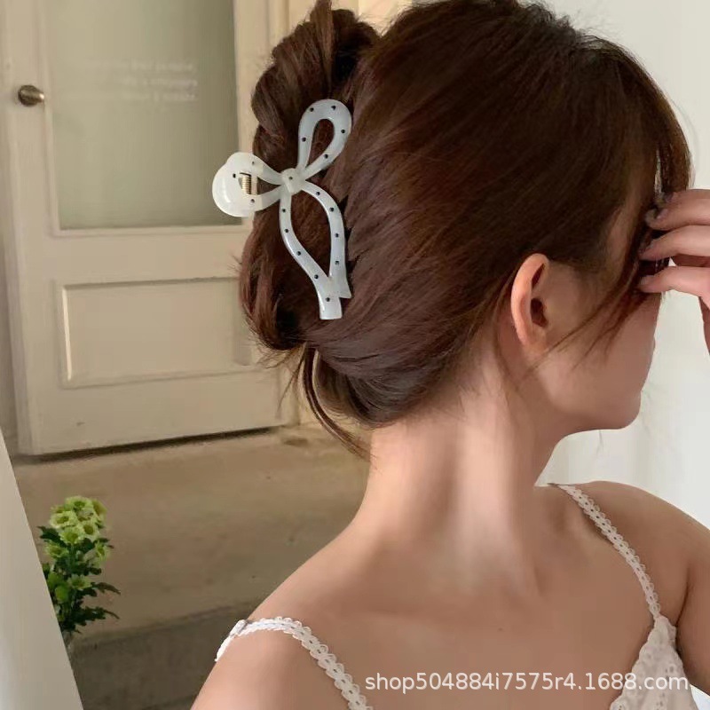 水玉模様の弓クリップ女性の夏 2024 新しい気質絶妙なヘアクリップ後頭部サメクリップ頭飾り前髪
