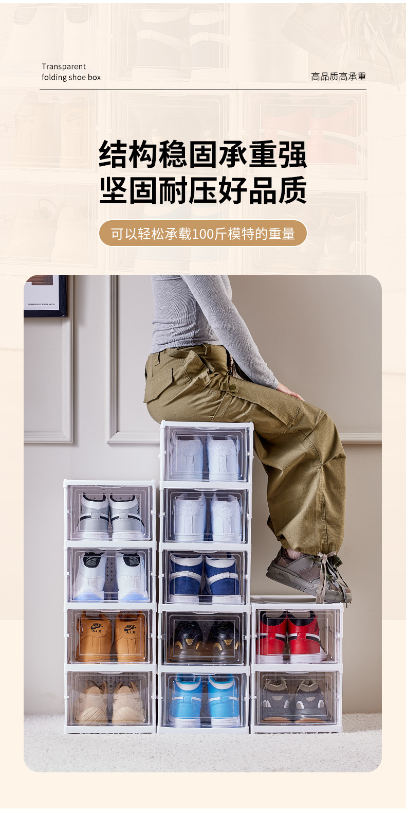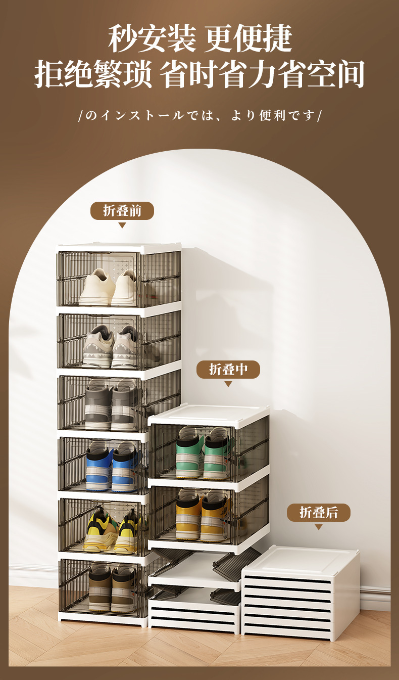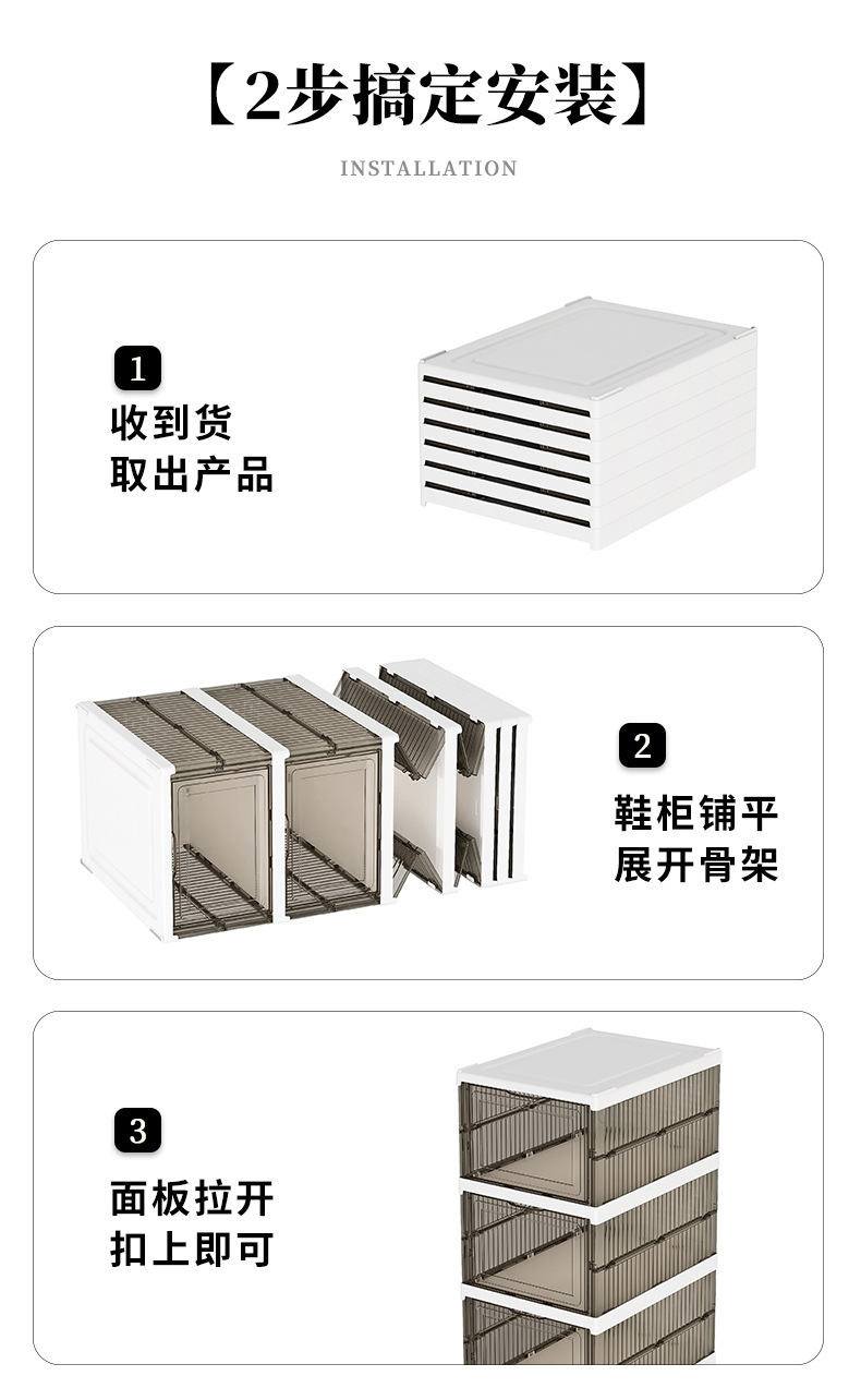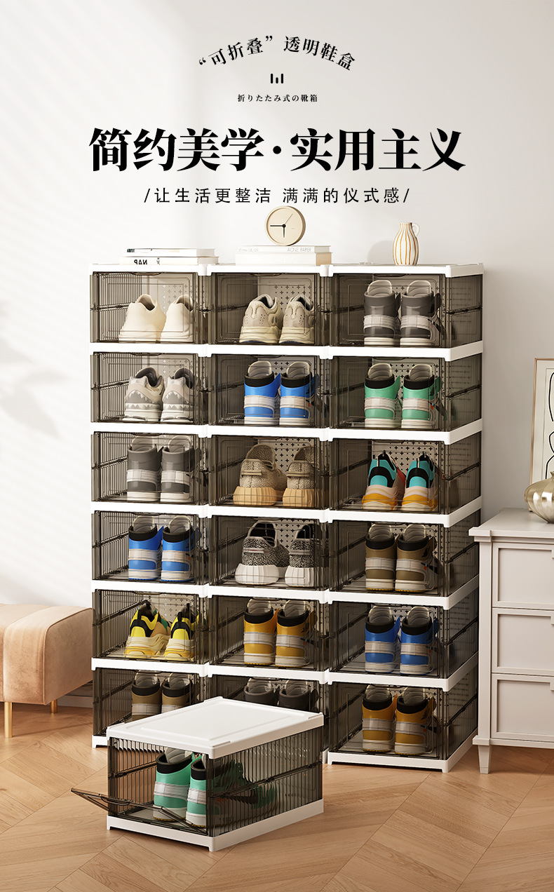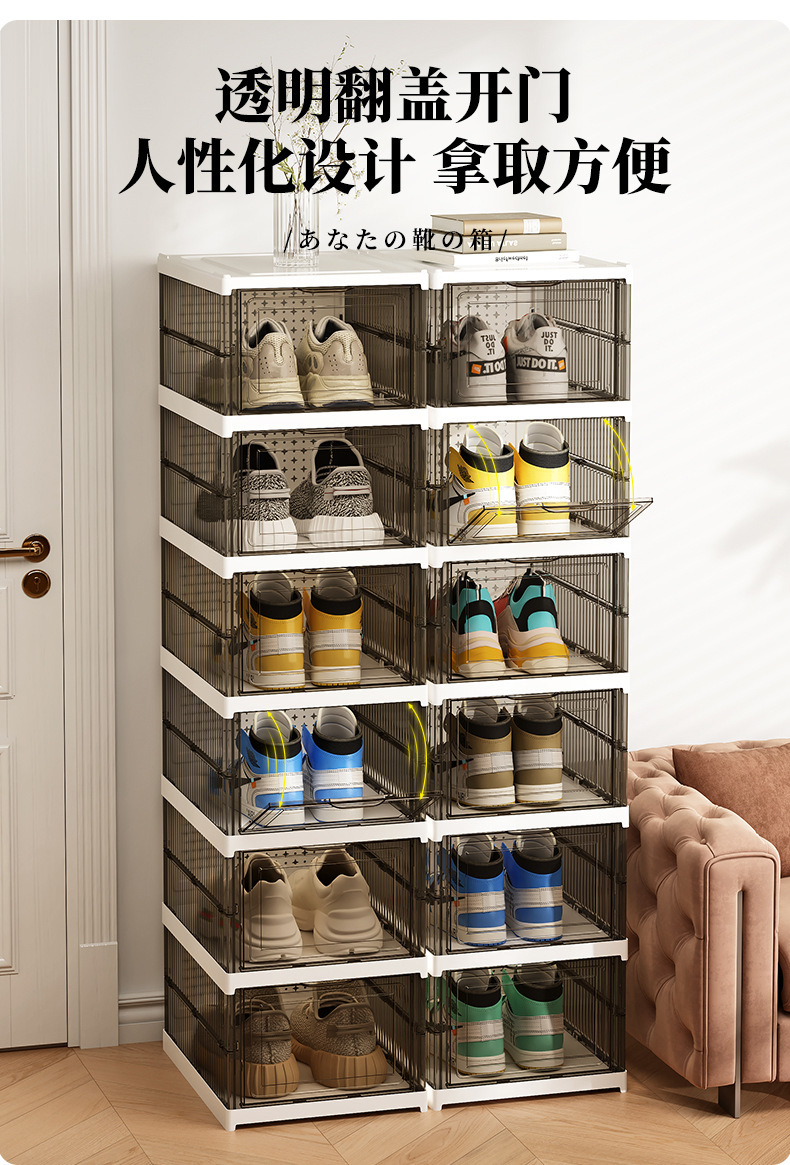 厚手の靴棚を取り付けないで折り畳み可能な一体型の靴ケース透明な靴ケース収納ケースプラスチック防塵簡易靴ケース