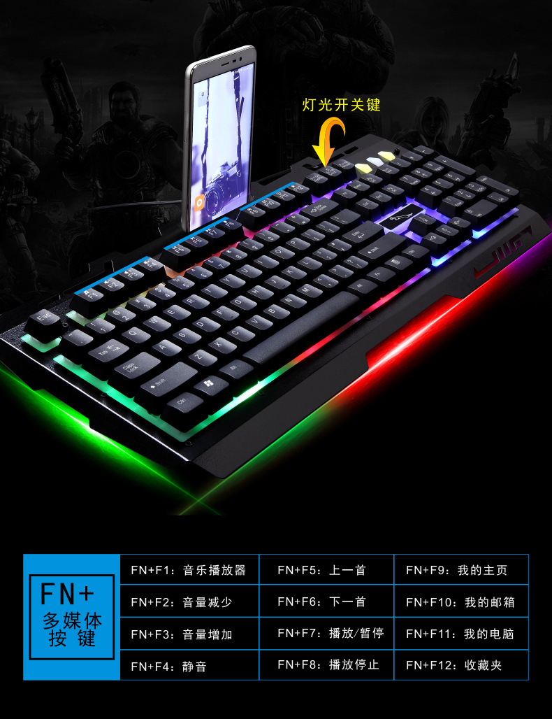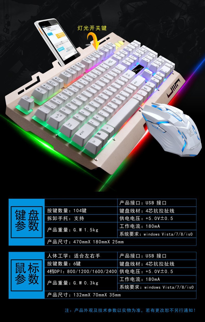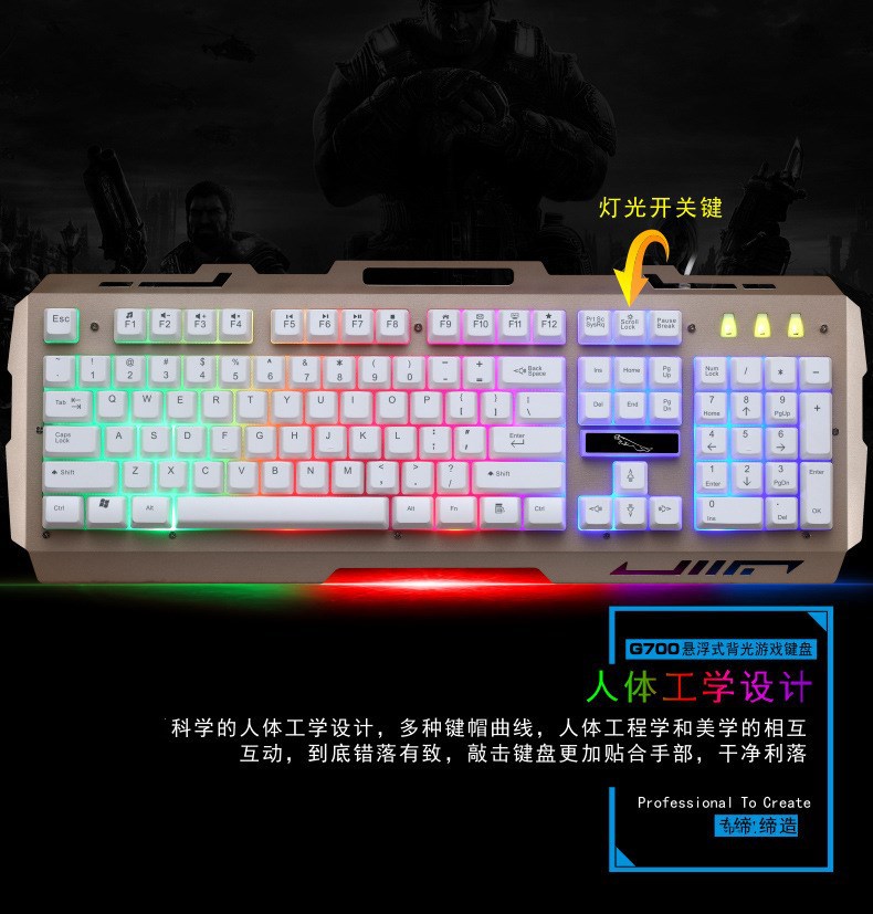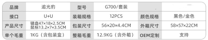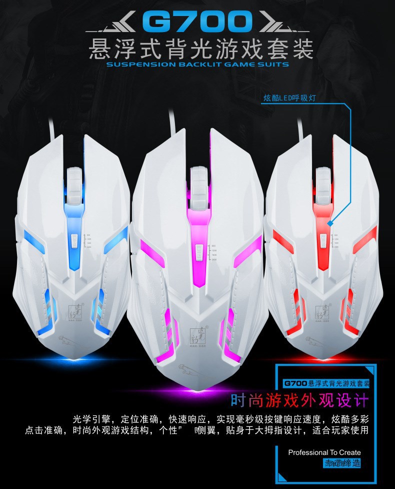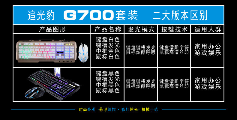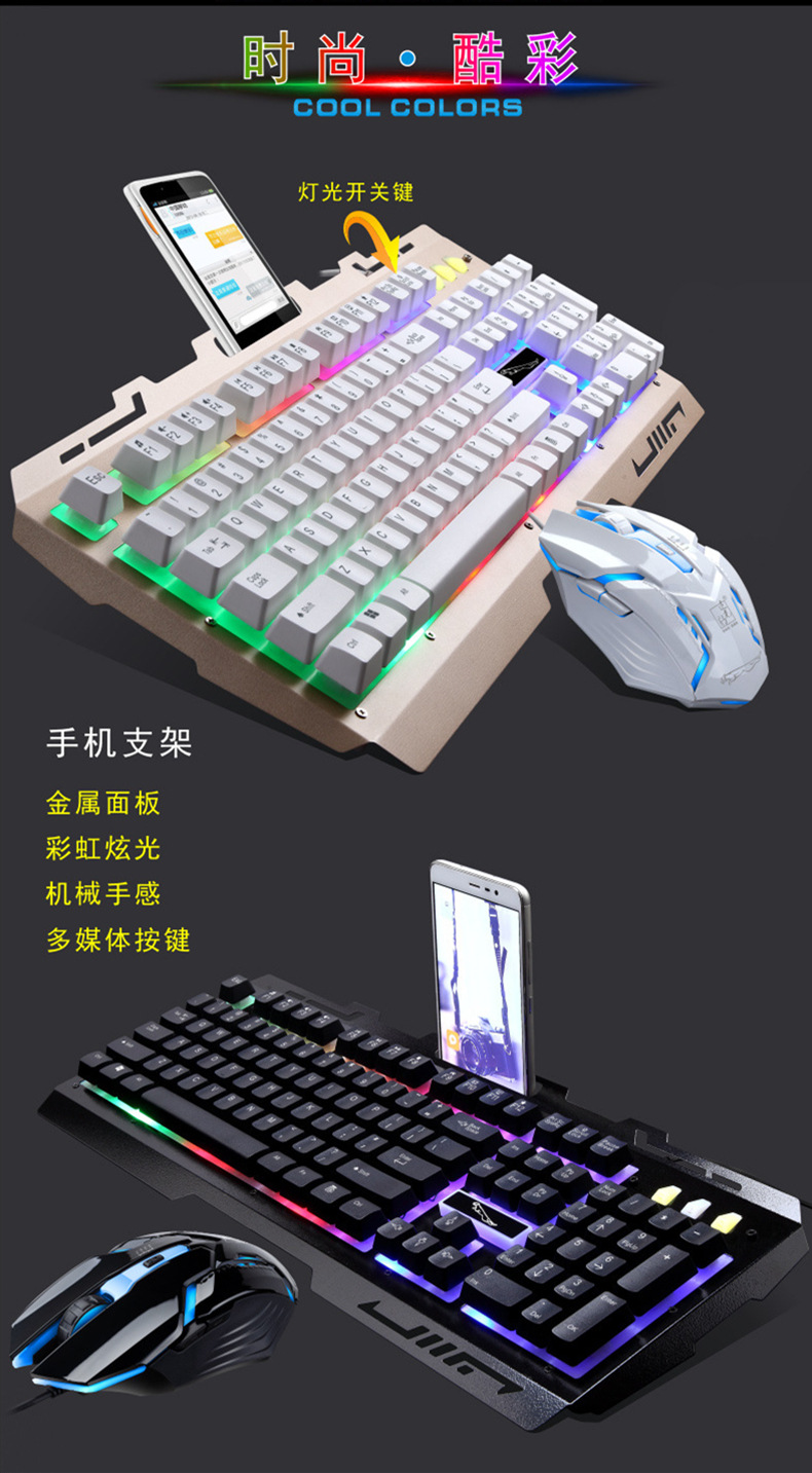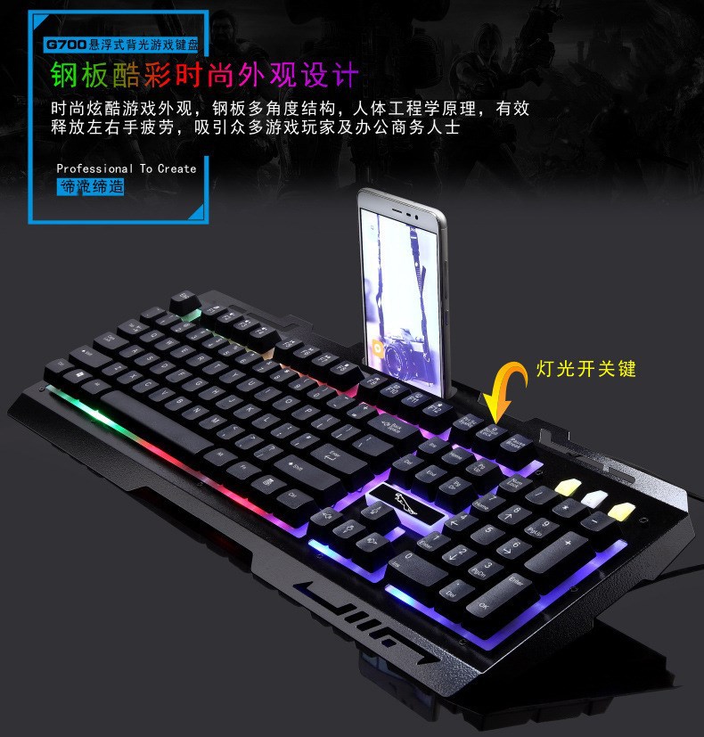 追光豹G700キーボードマウスセットusb有線キーボードビジネス電気競争ゲーム発光金属板パソコン