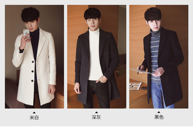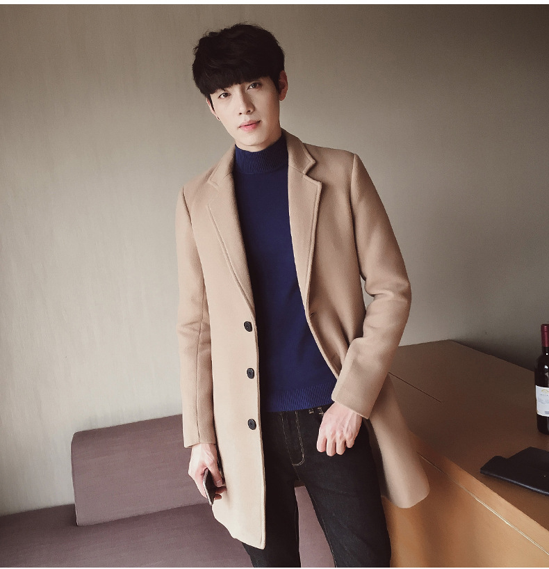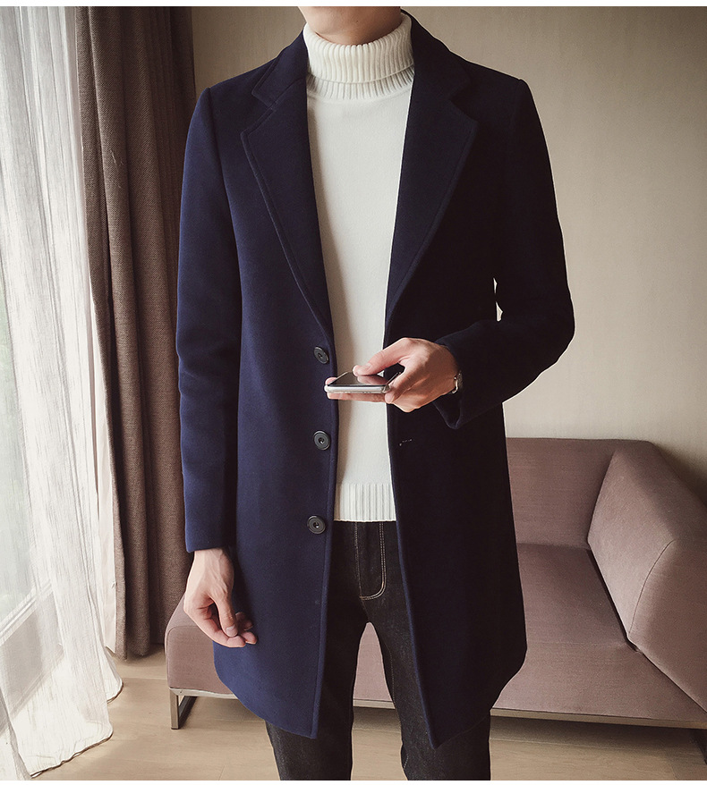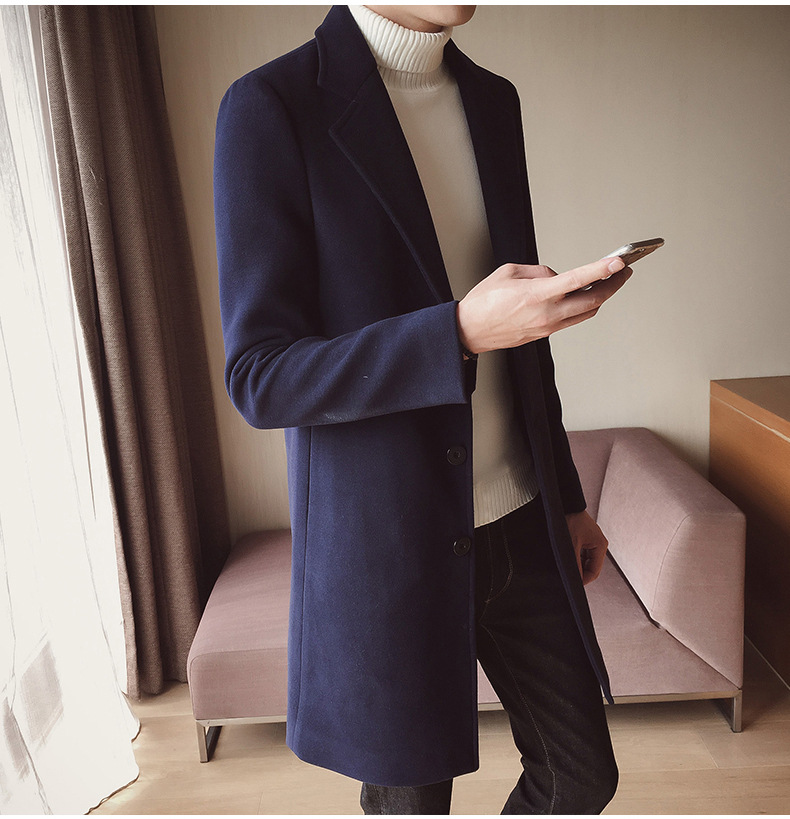 2025秋冬新作メンズミドル丈ウインドブレーカー韓国風スリムウールコート英国風ウールジャケット