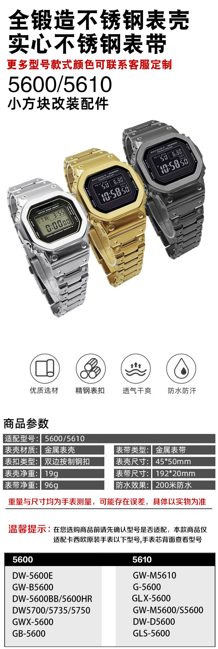 代わりにカシメの小さい四角のDW-5600のGW-M5610を使って金属のステンレスの時計の時計の時計の腕時計の時計のチェーンを改造します。