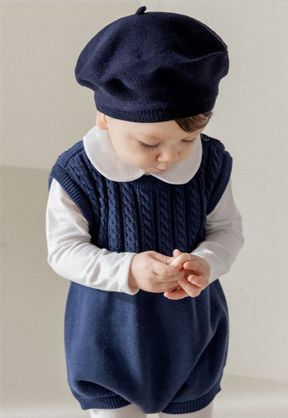 ボディスーツ,帽子,ネイビーブルー,黒のニットベレー帽,ピクチャーカラージャンプスーツ,絵の色の帽子,10月15日より、肌着(肌着)の予約販売を開始いたします。,ボトムシャツ,白いニット,フリル襟一体型ベルベット