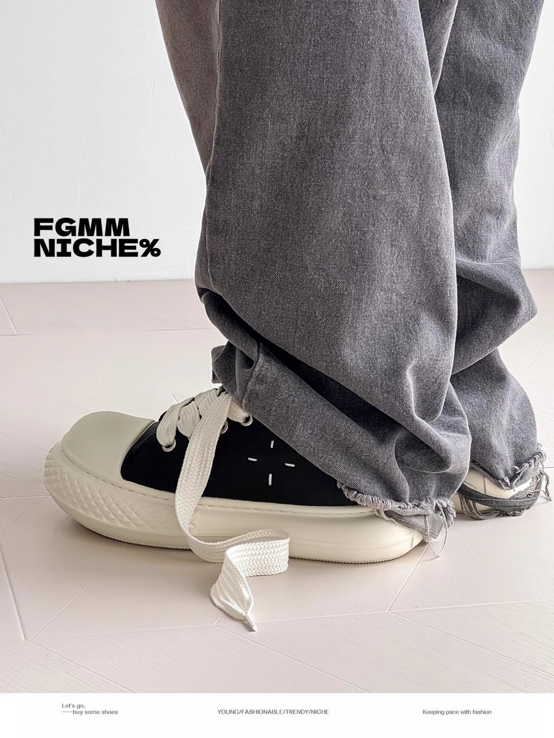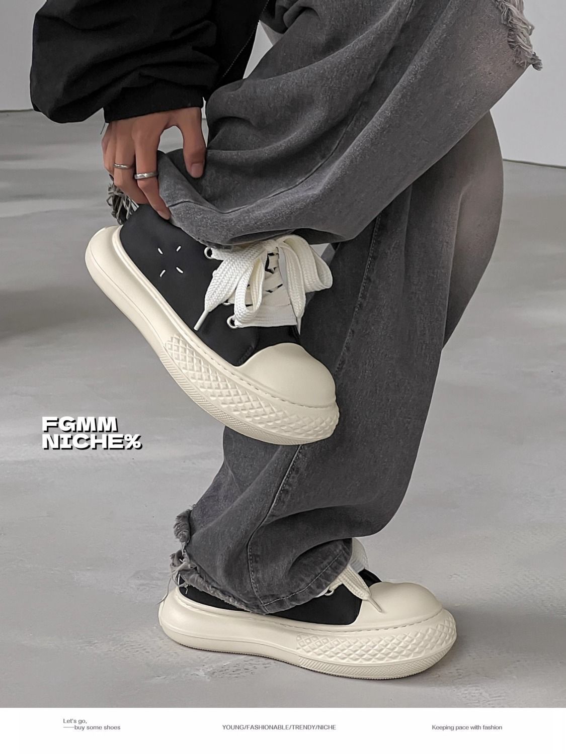 ジムミッキーの連名の黒色の大きい頭の靴の厚い底は高くなってカジュアルな板の靴のinsヨーロッパ駅の潮牌の男性の靴