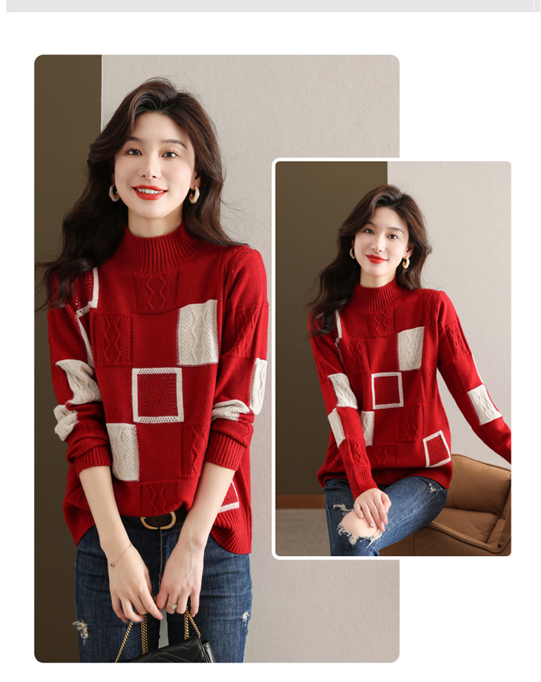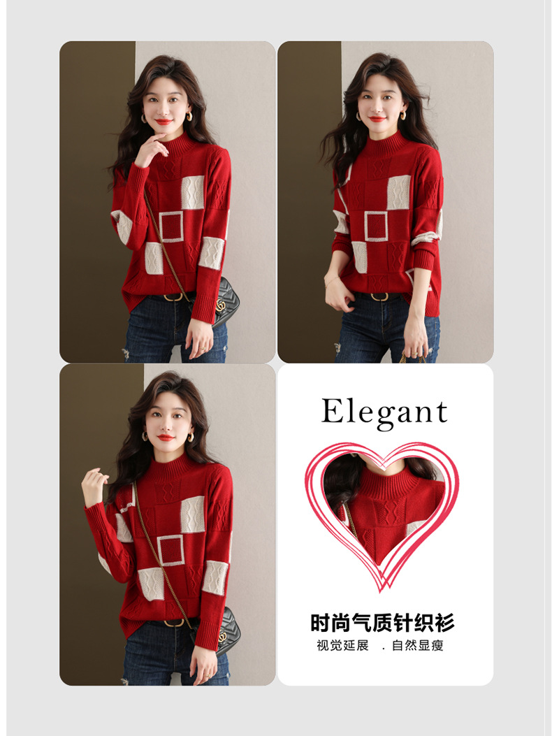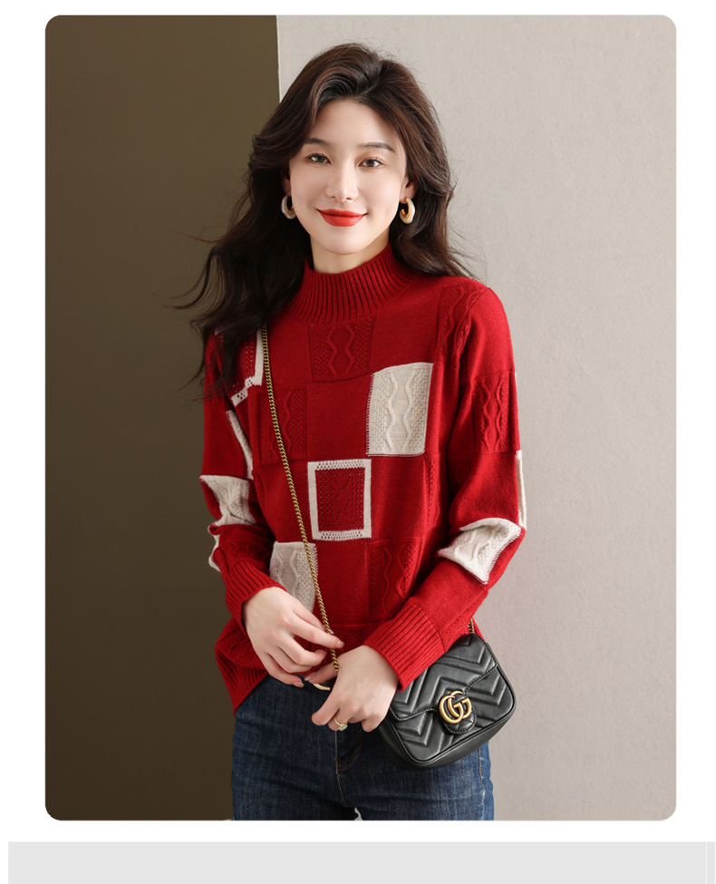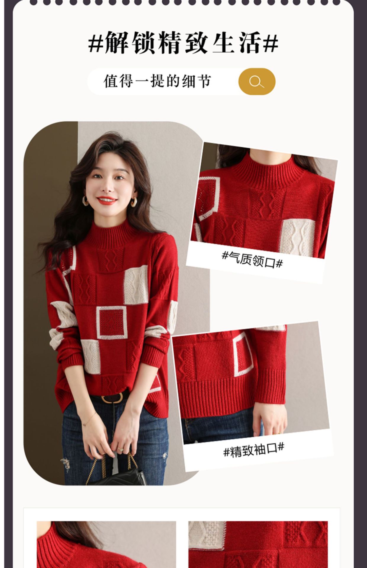 太ったmm秋冬の特大サイズの半高襟の本命年の赤いセーターの女性は200斤のカシミヤの底のシャツを緩めます。