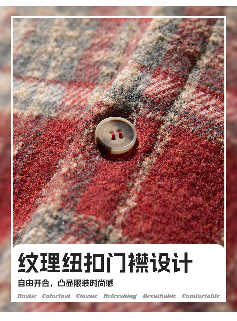 アメリカンレトロチェック柄長袖シャツメンズ春新作ラペルポケットシャツ質感ルーズカップルジャケット女性用