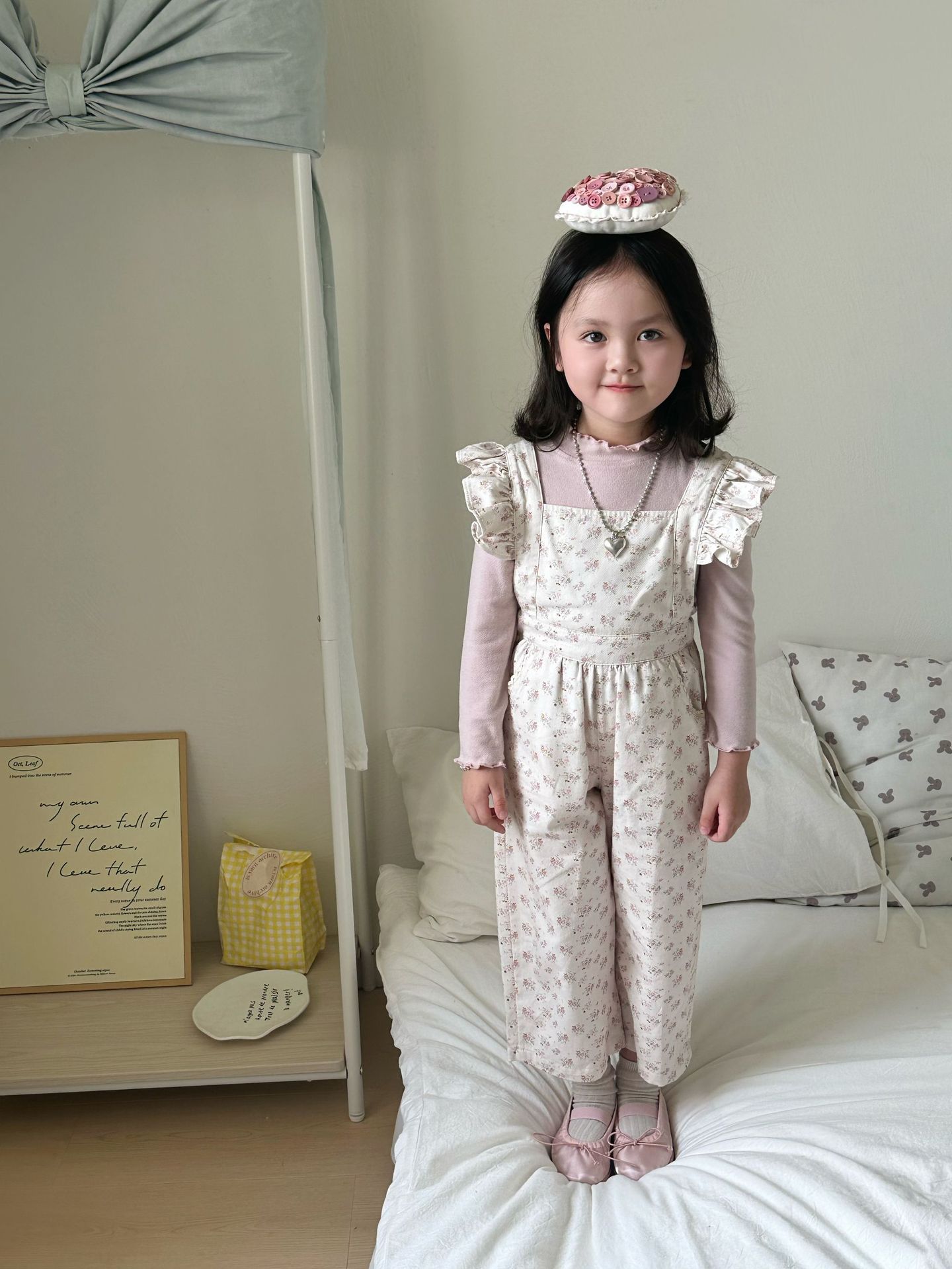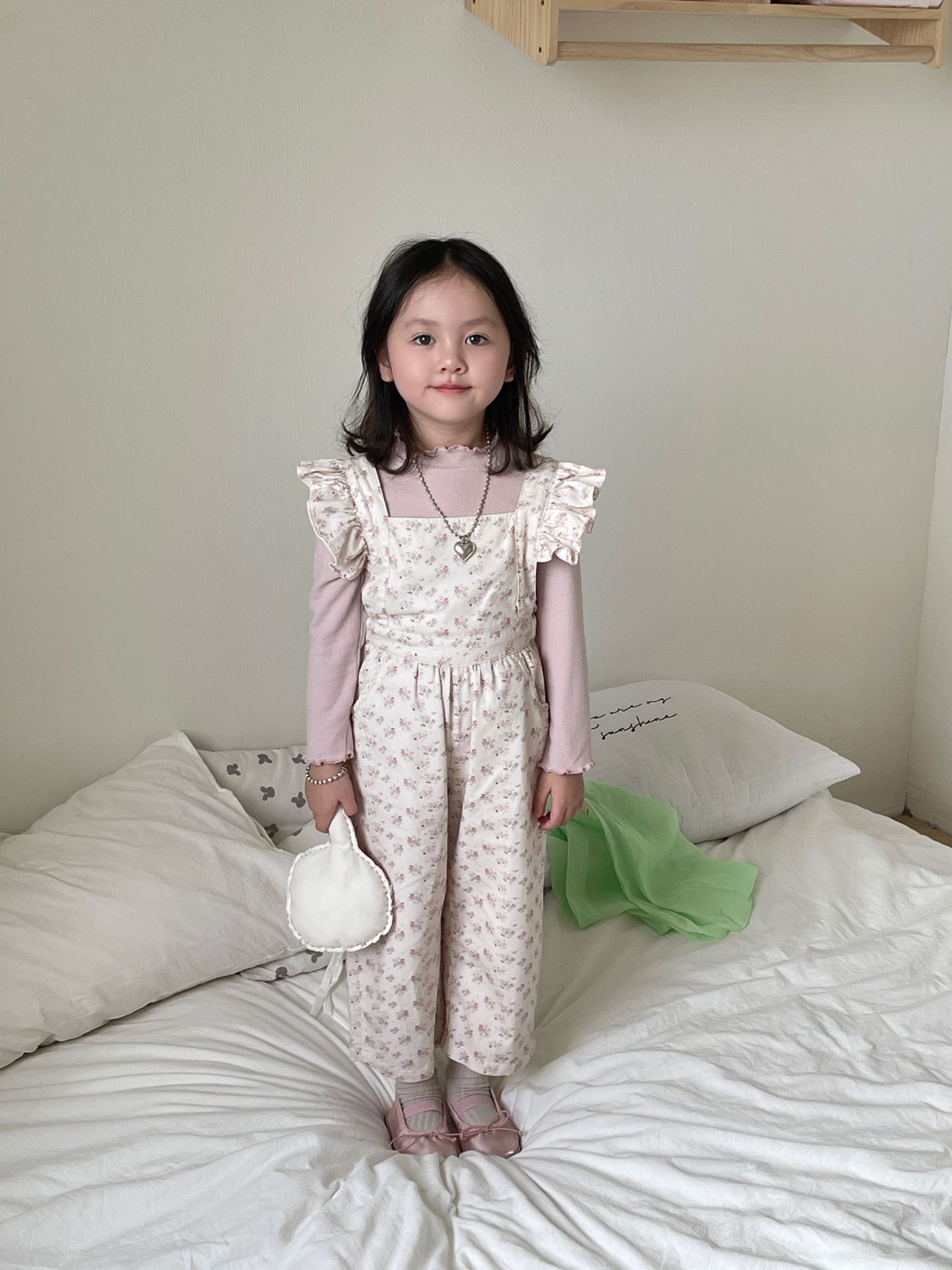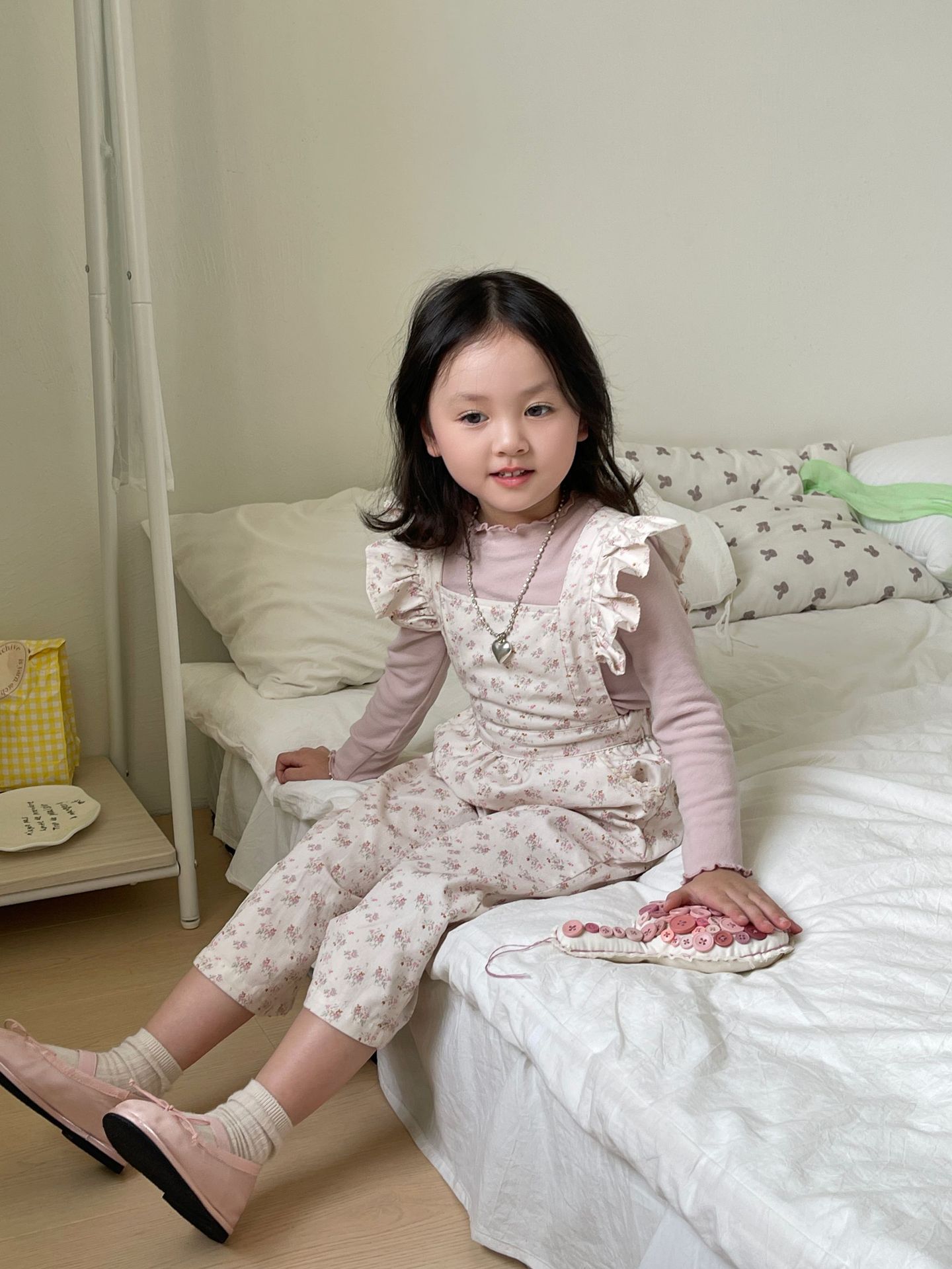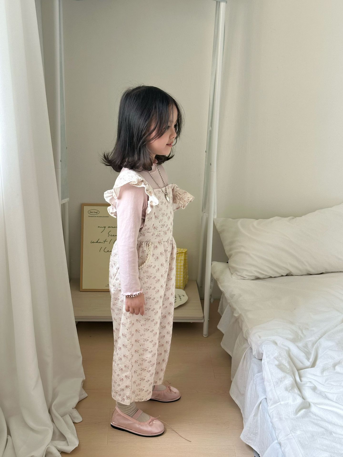 ピンクの花柄オーバーオール