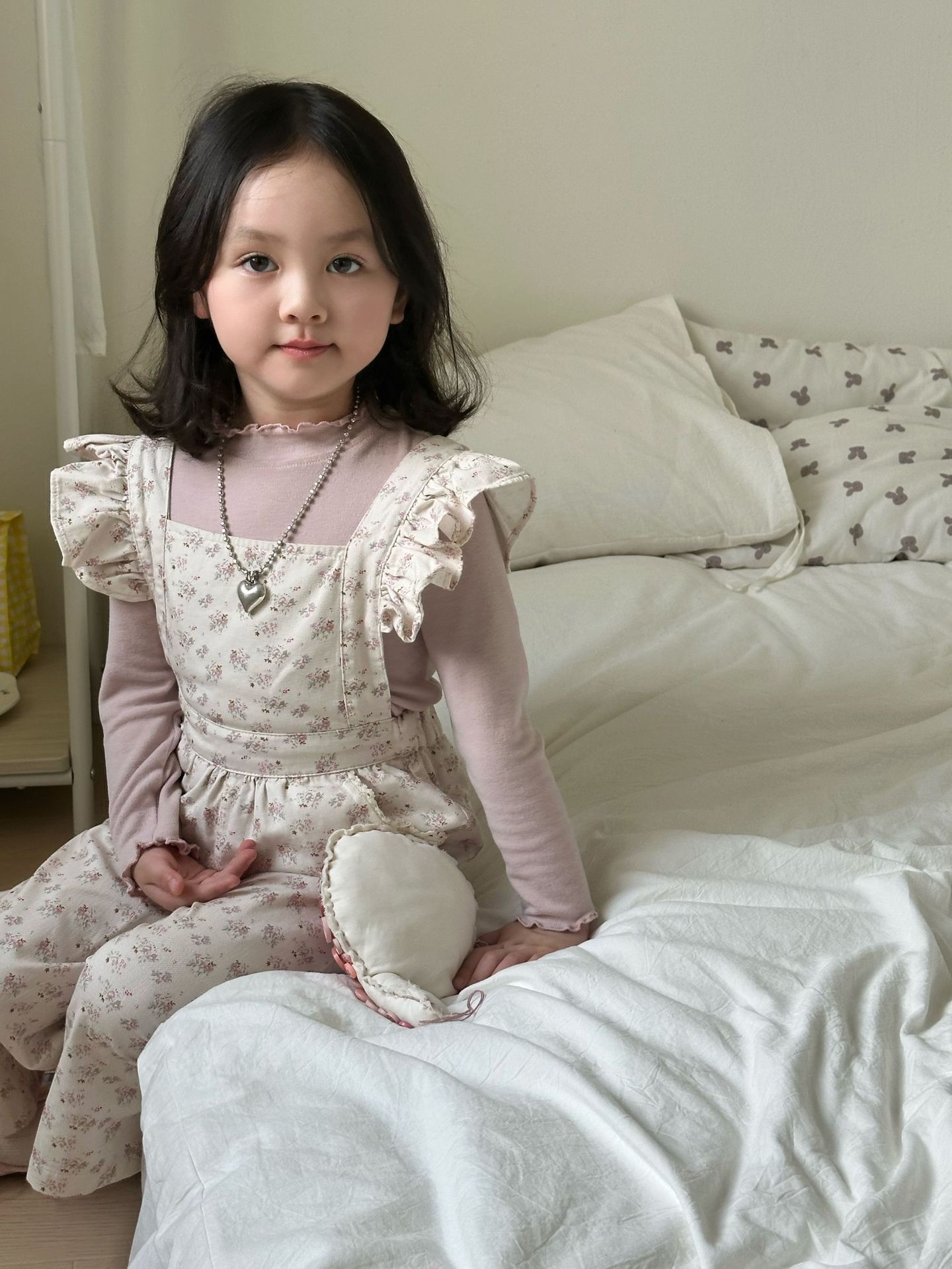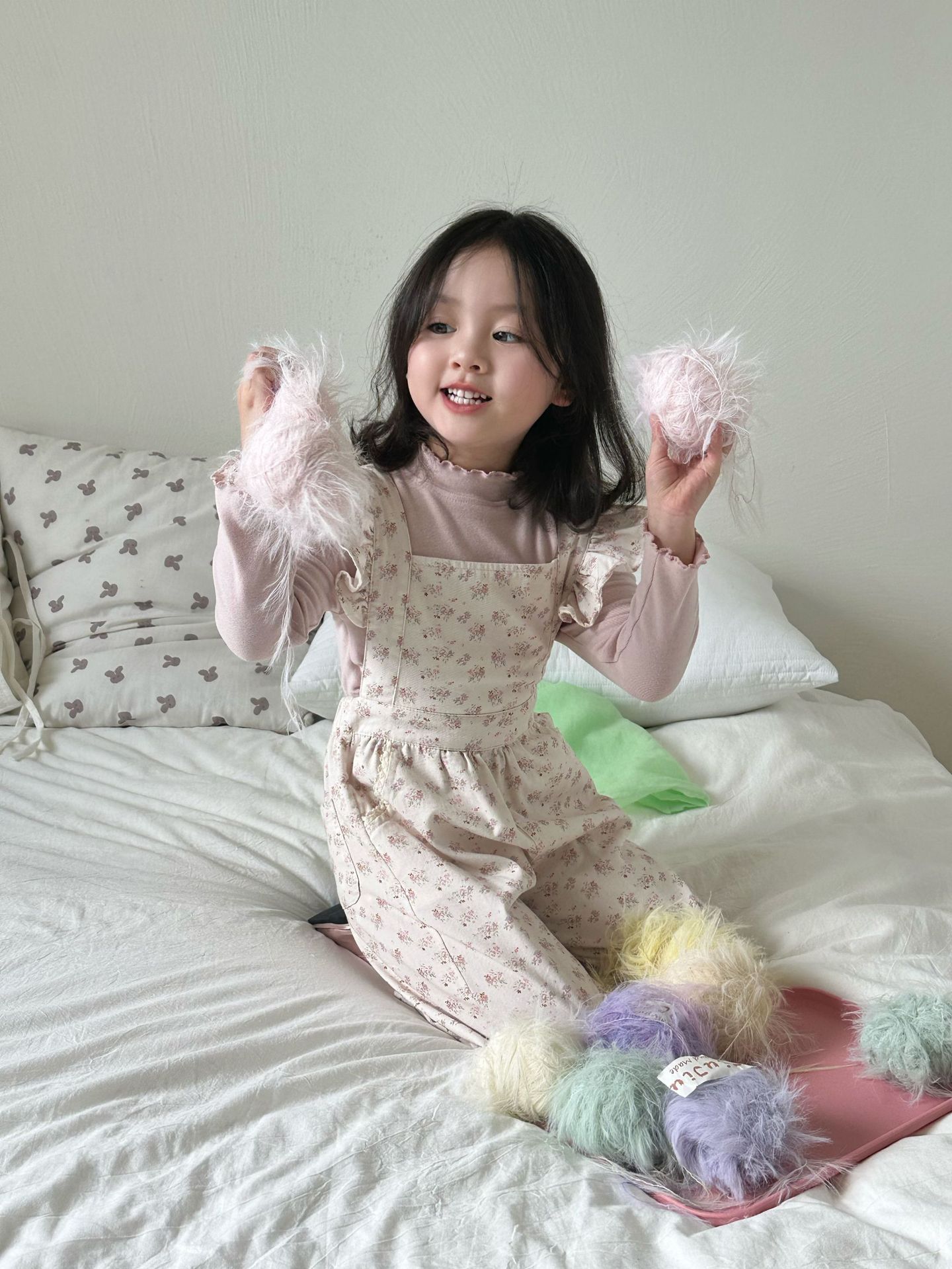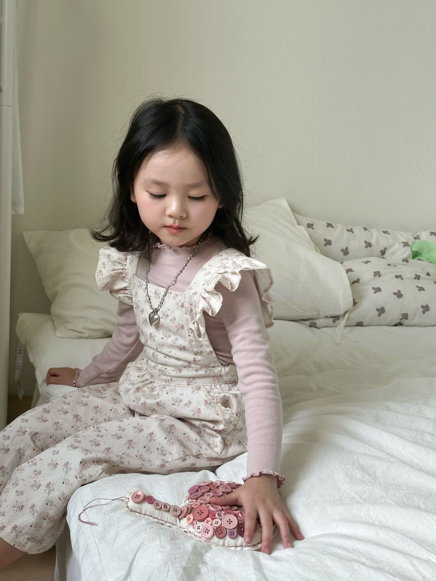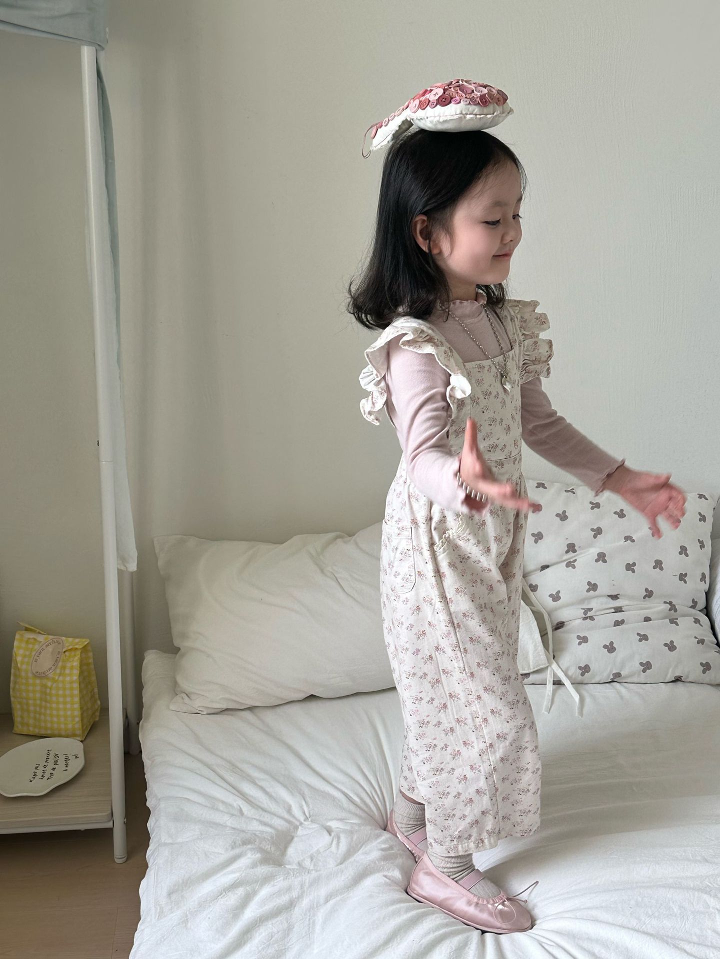ピンクの花柄オーバーオール