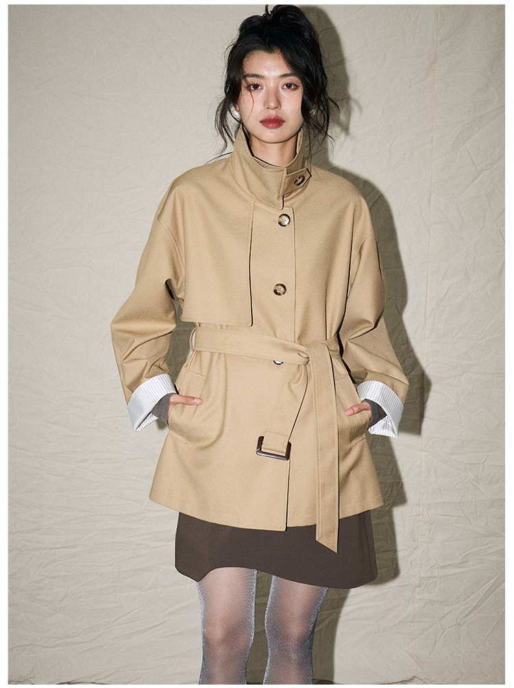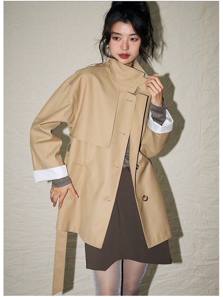 [Shengdu] 25春新作韓国風カジュアルレトロスタイル万能スタンドカラー小柄ゆったりミドル丈ウインドブレーカージャケット