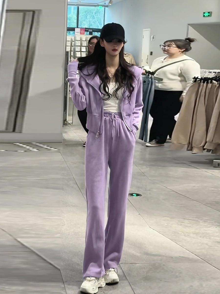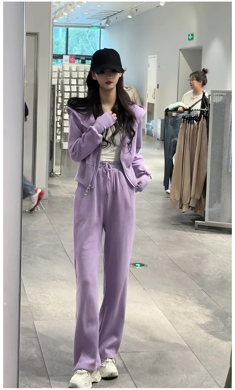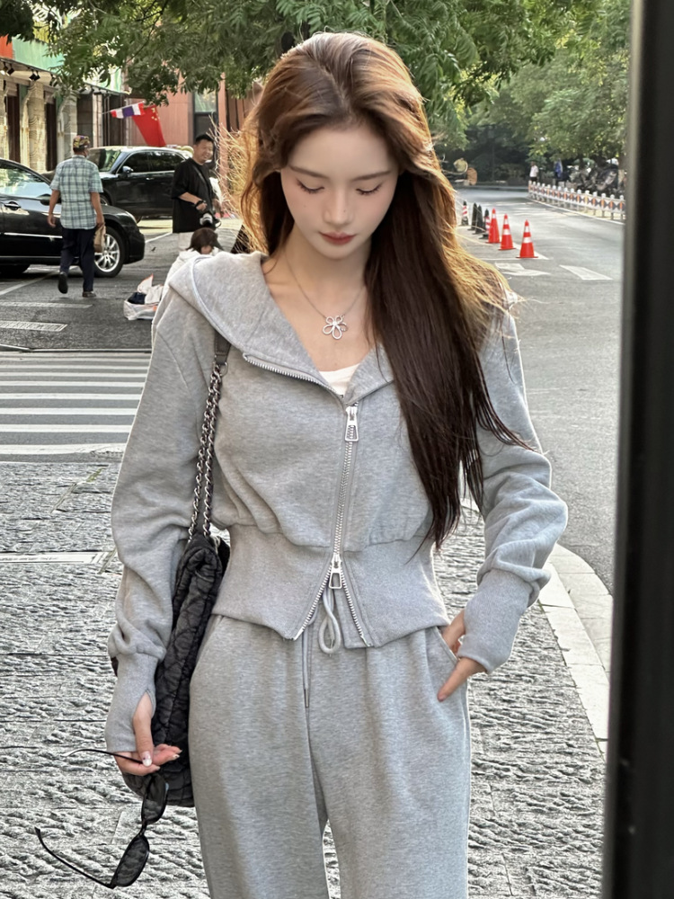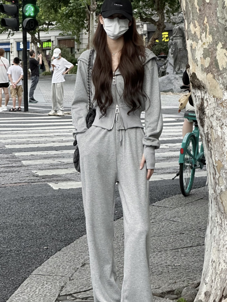 2023年秋新作 韓国風 ゆったり インフルエンサー風 カジュアル スウェットジップアップ+ワイドパンツ 上下セット レディース
