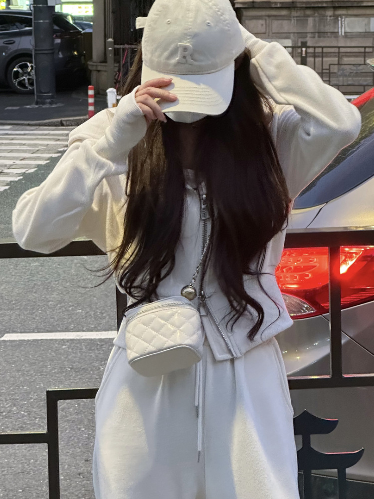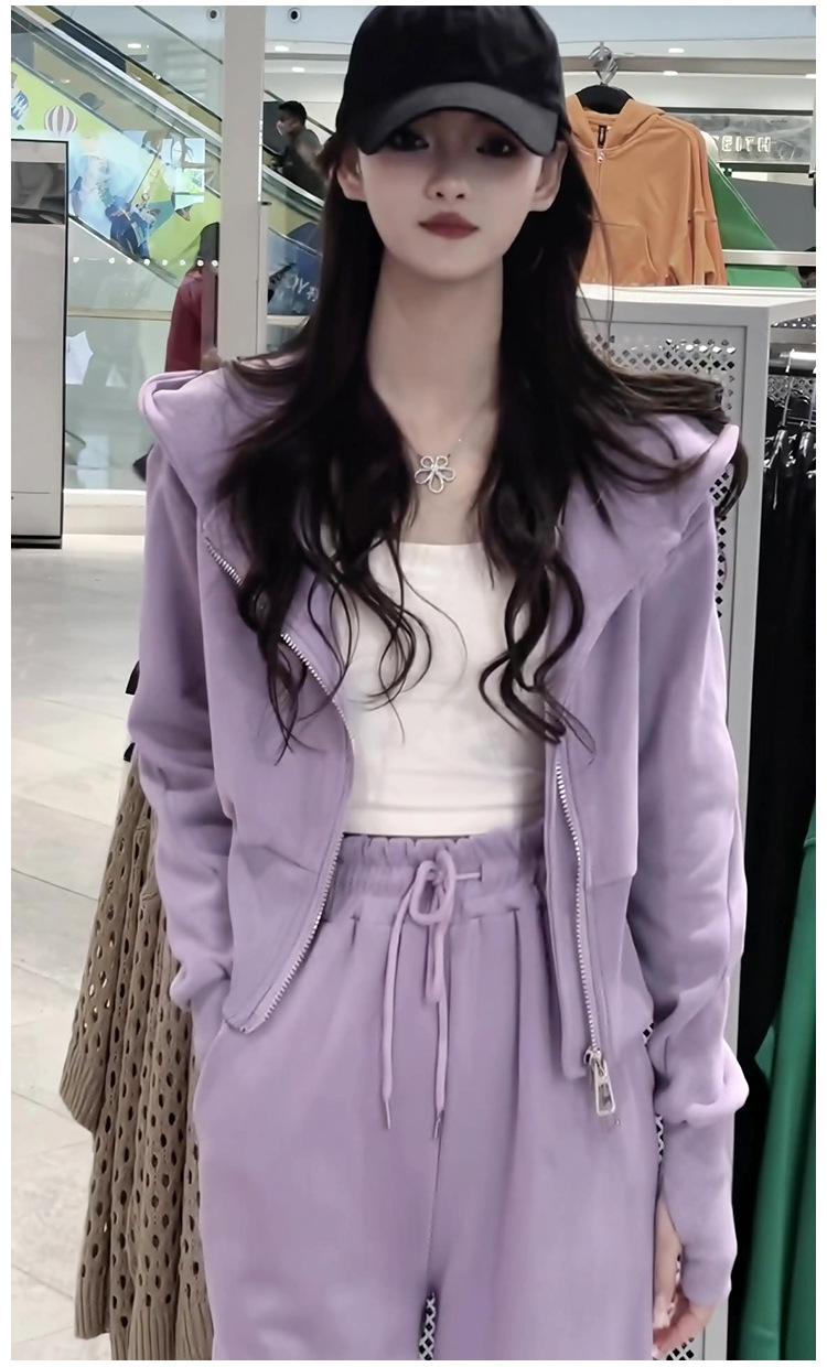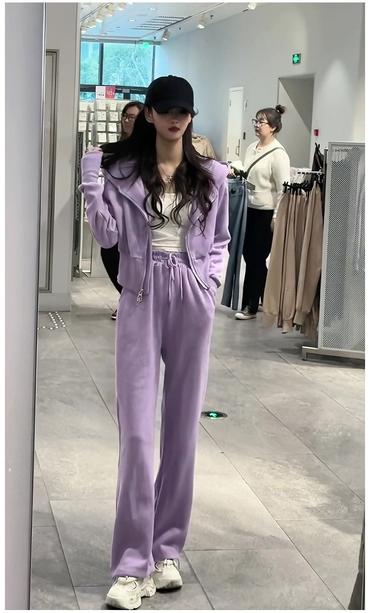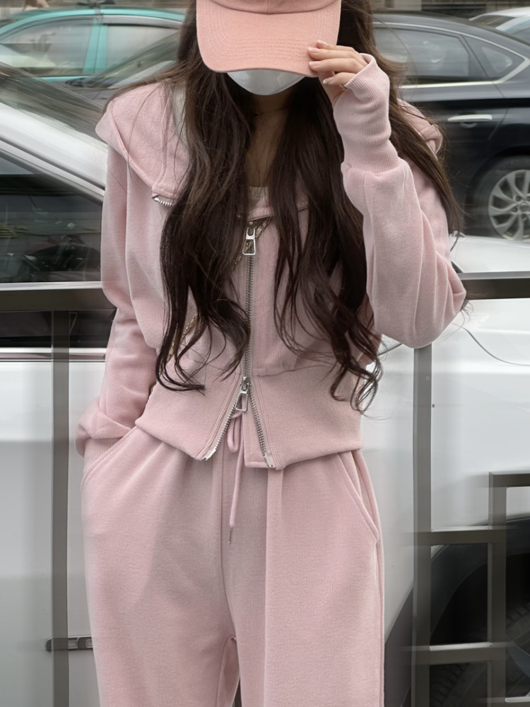 2023年秋新作 韓国風 ゆったり インフルエンサー風 カジュアル スウェットジップアップ+ワイドパンツ 上下セット レディース