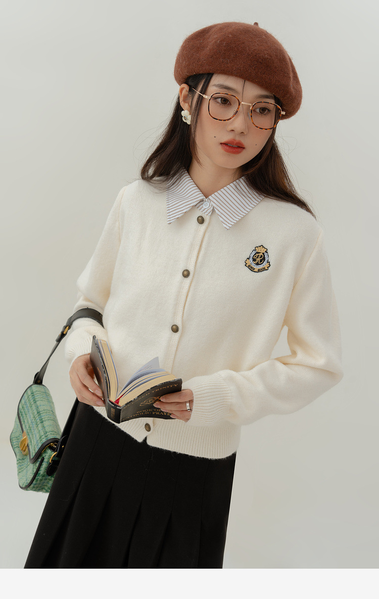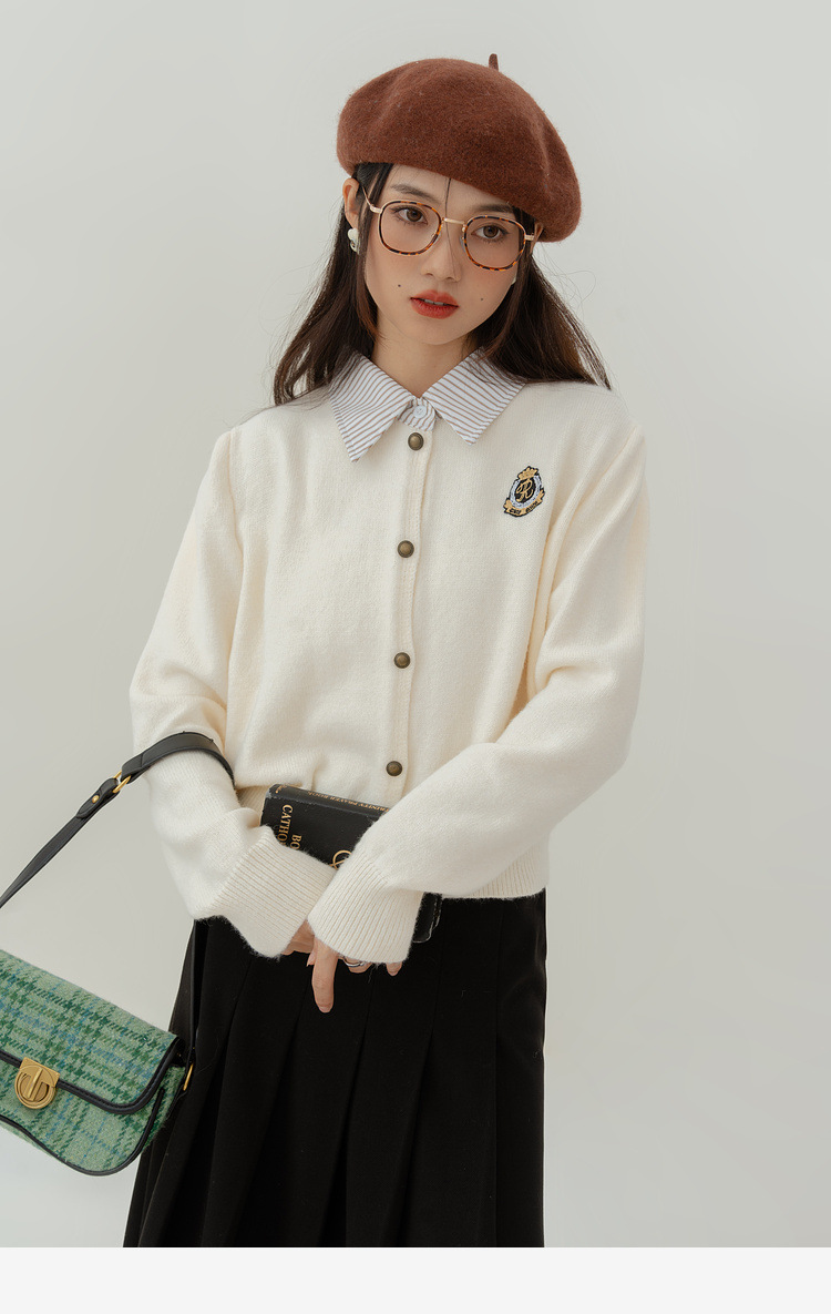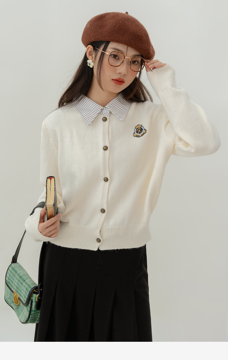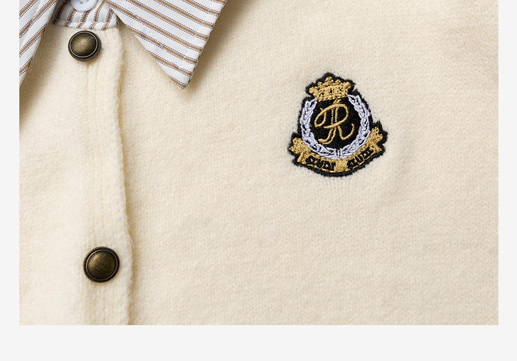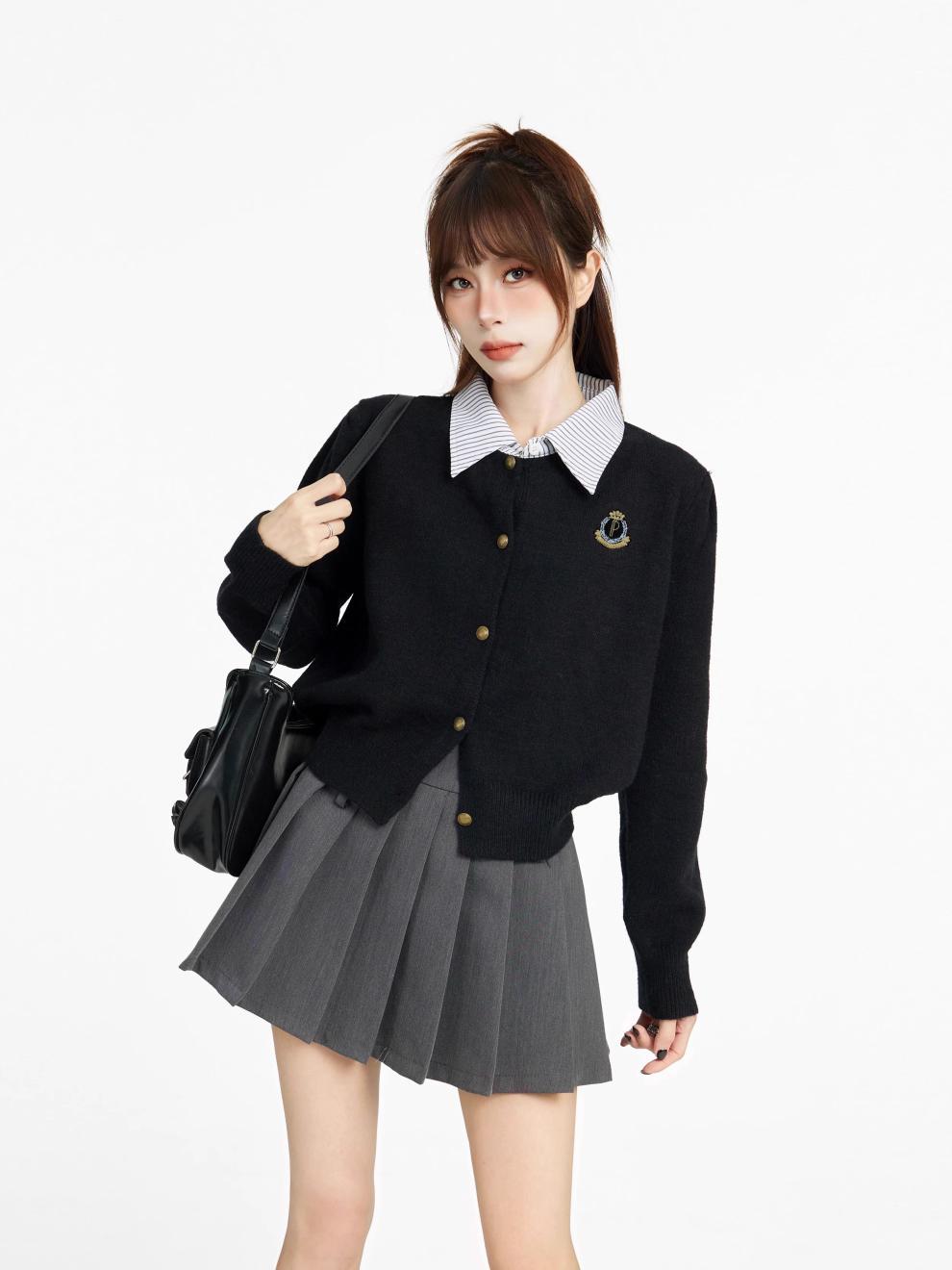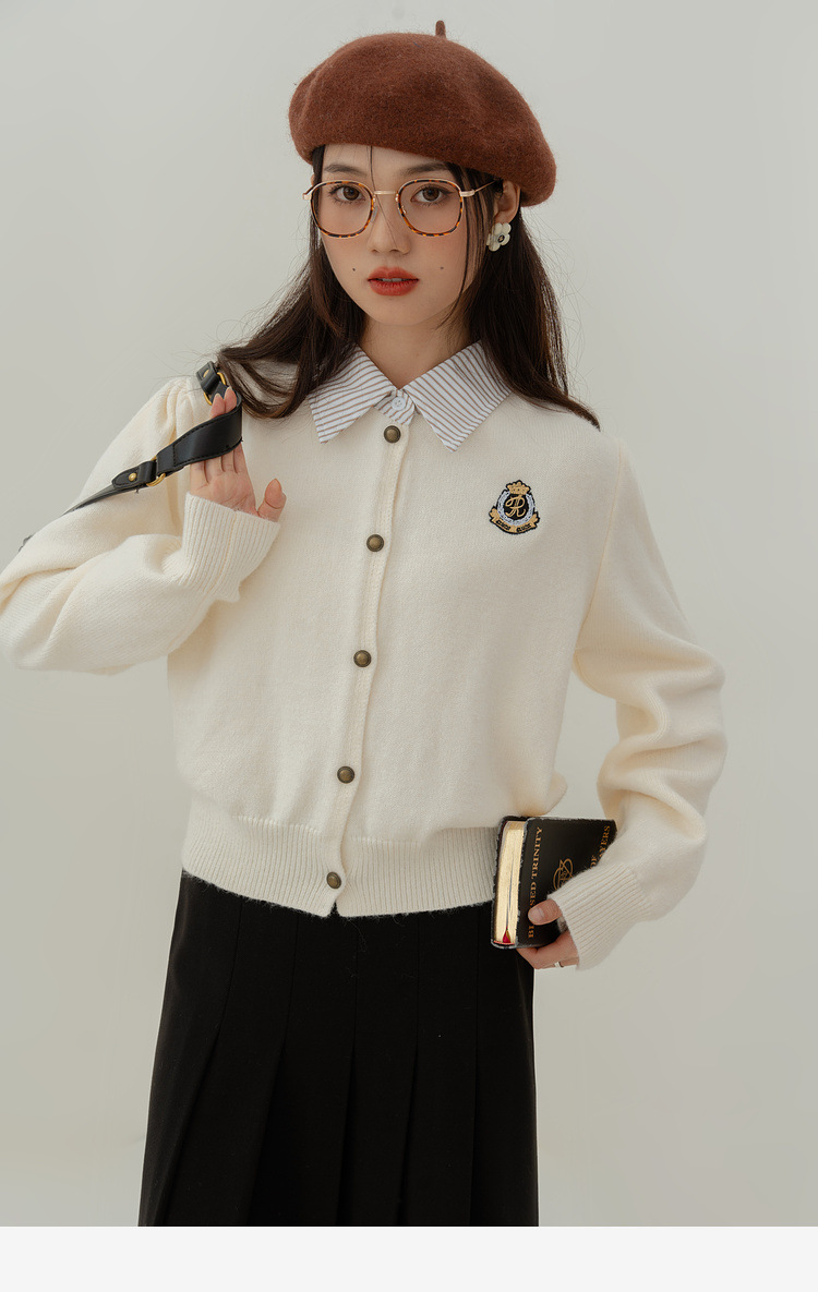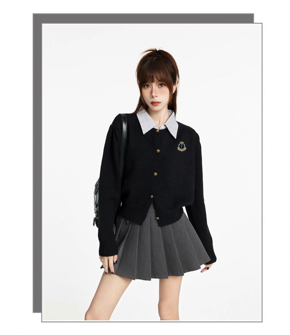 偽の2枚の学院風polo襟のカーディガンのセーターの女性秋冬のデザイン感の小さい人たちはニットのカーディガンを着ます。