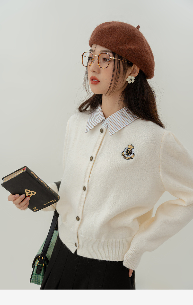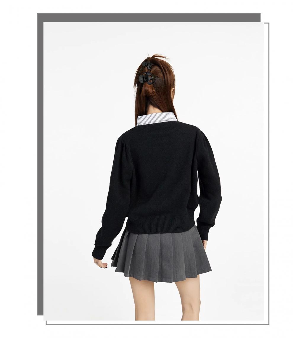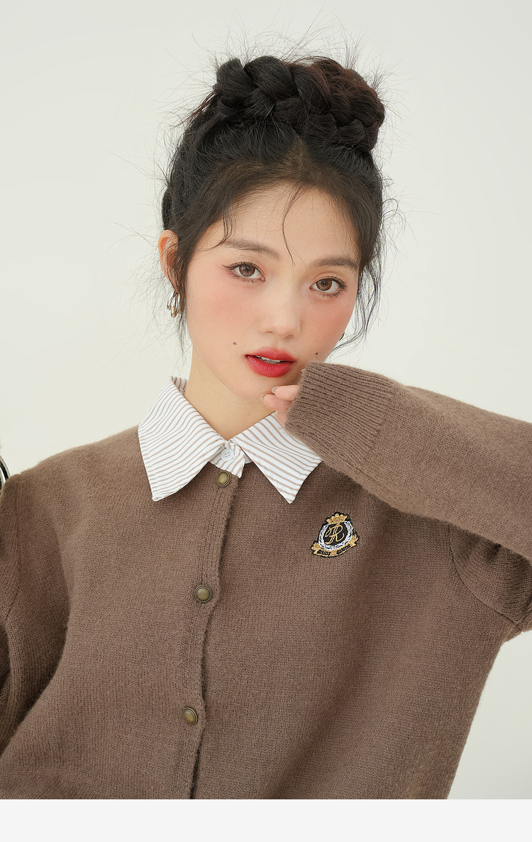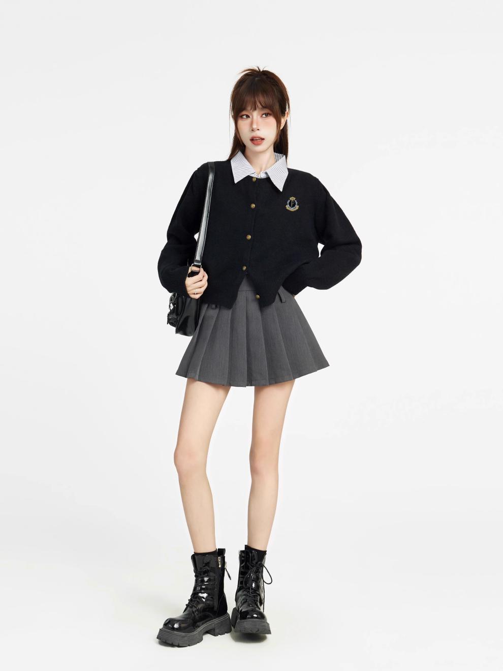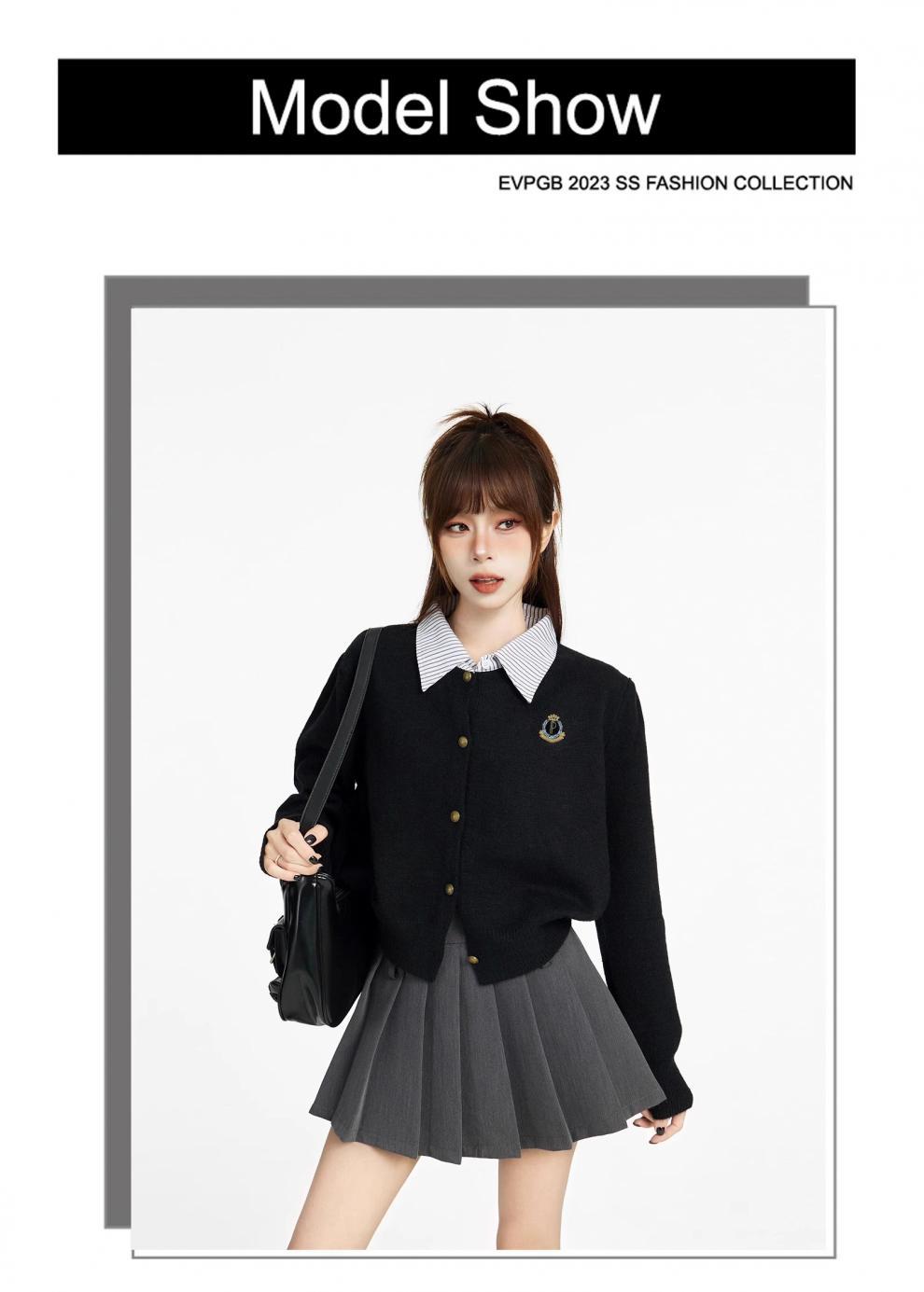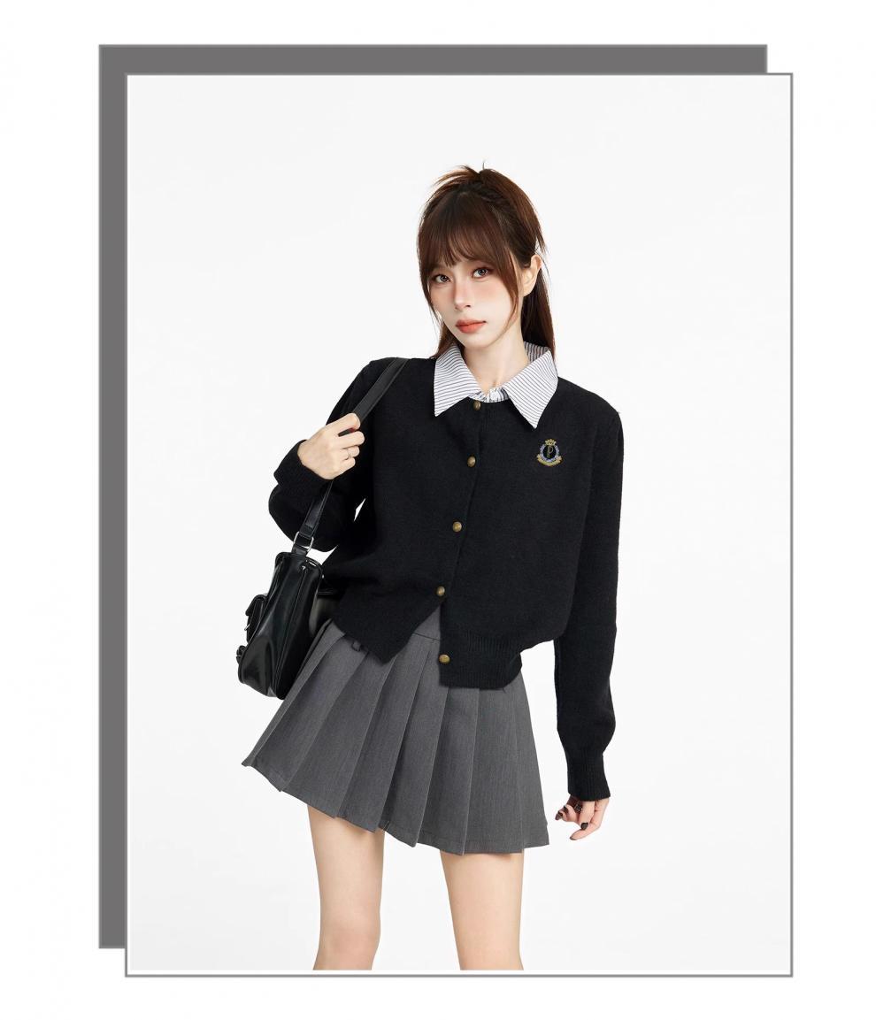 偽の2枚の学院風polo襟のカーディガンのセーターの女性秋冬のデザイン感の小さい人たちはニットのカーディガンを着ます。