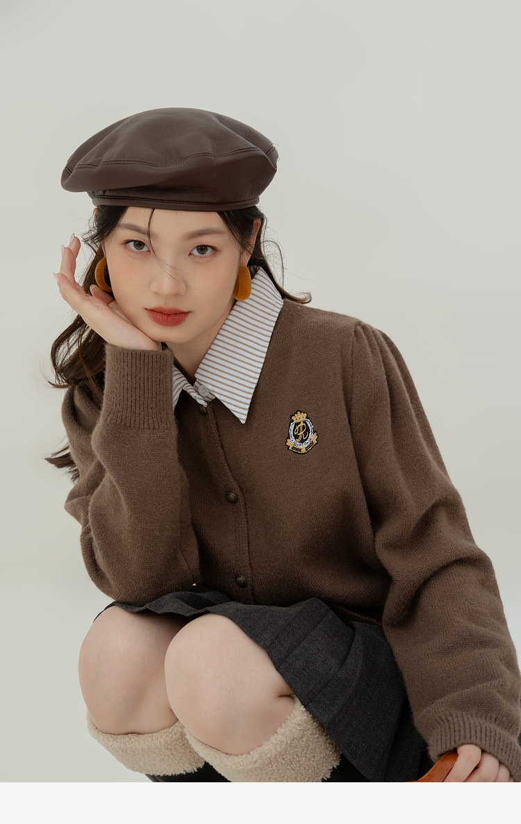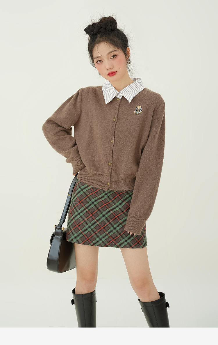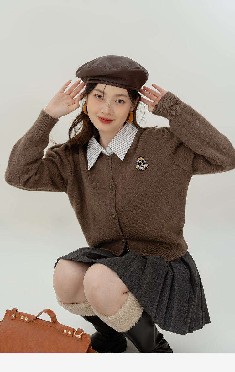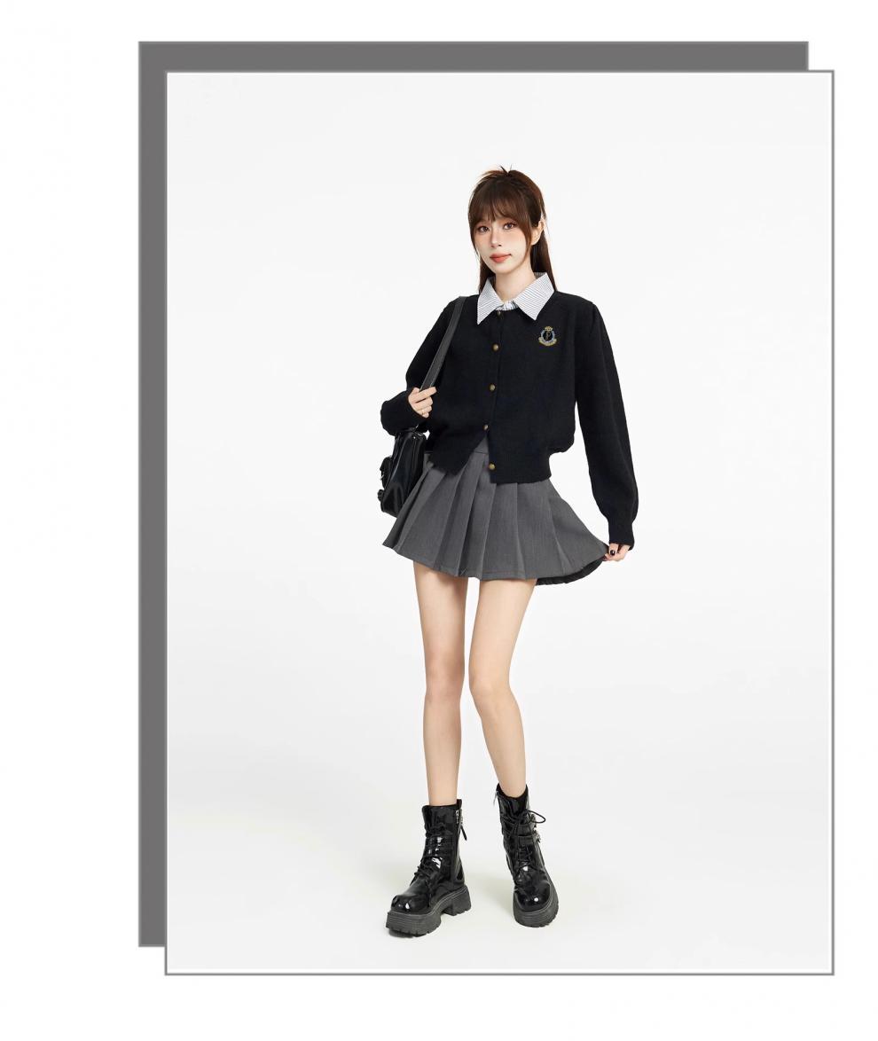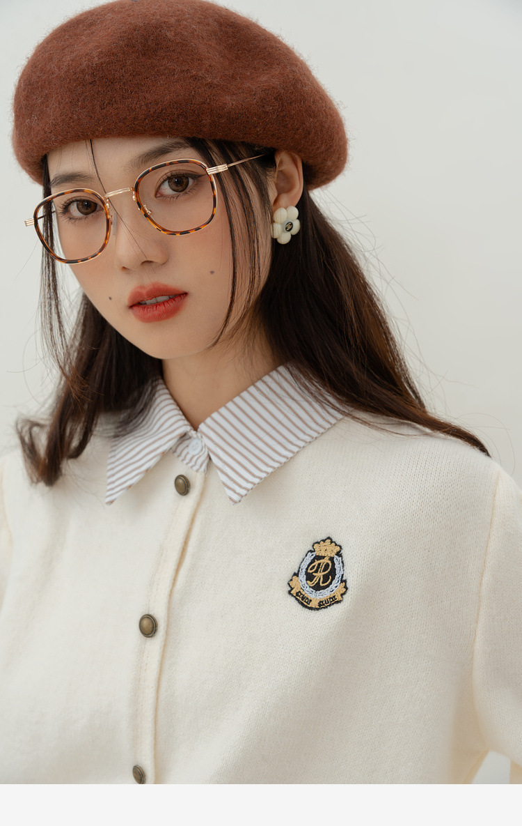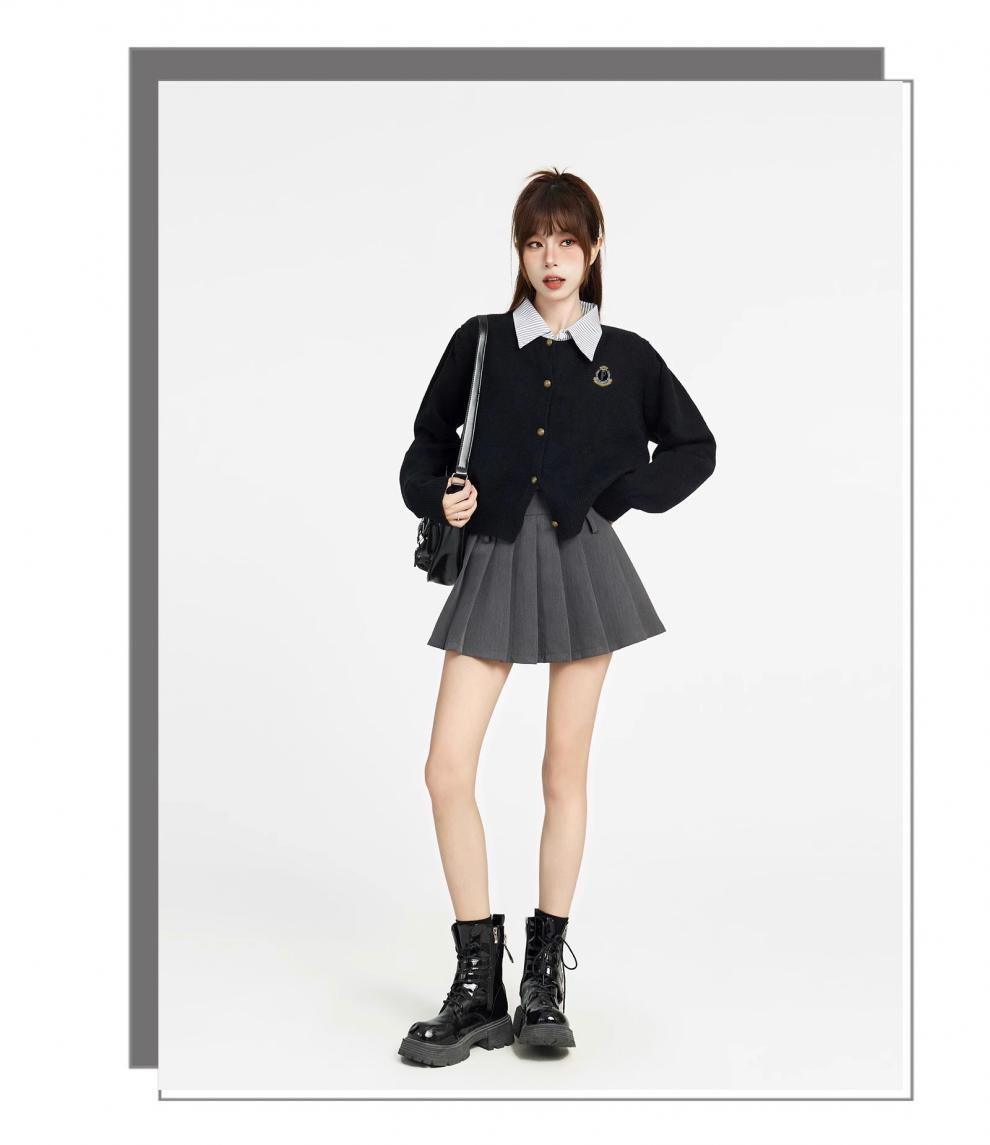偽の2枚の学院風polo襟のカーディガンのセーターの女性秋冬のデザイン感の小さい人たちはニットのカーディガンを着ます。