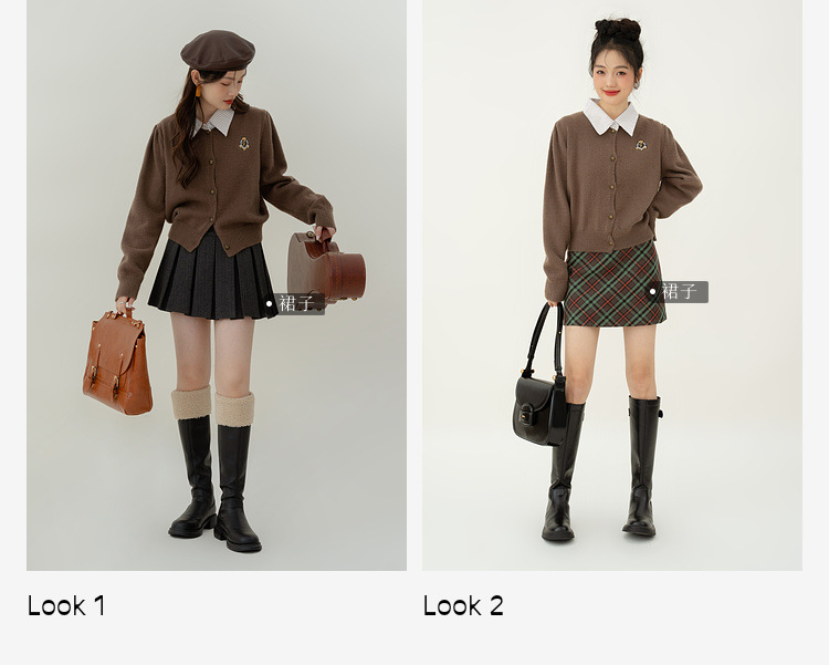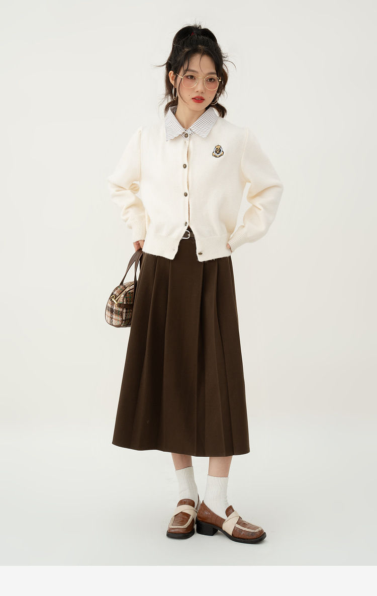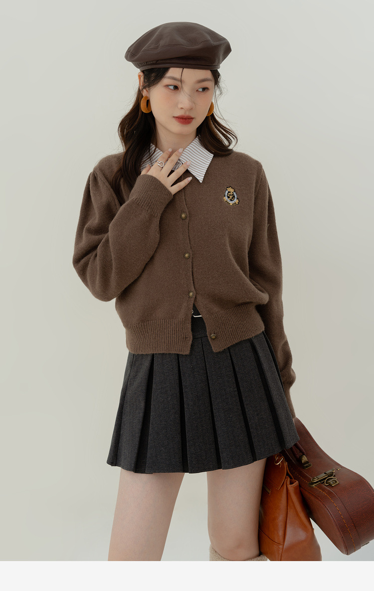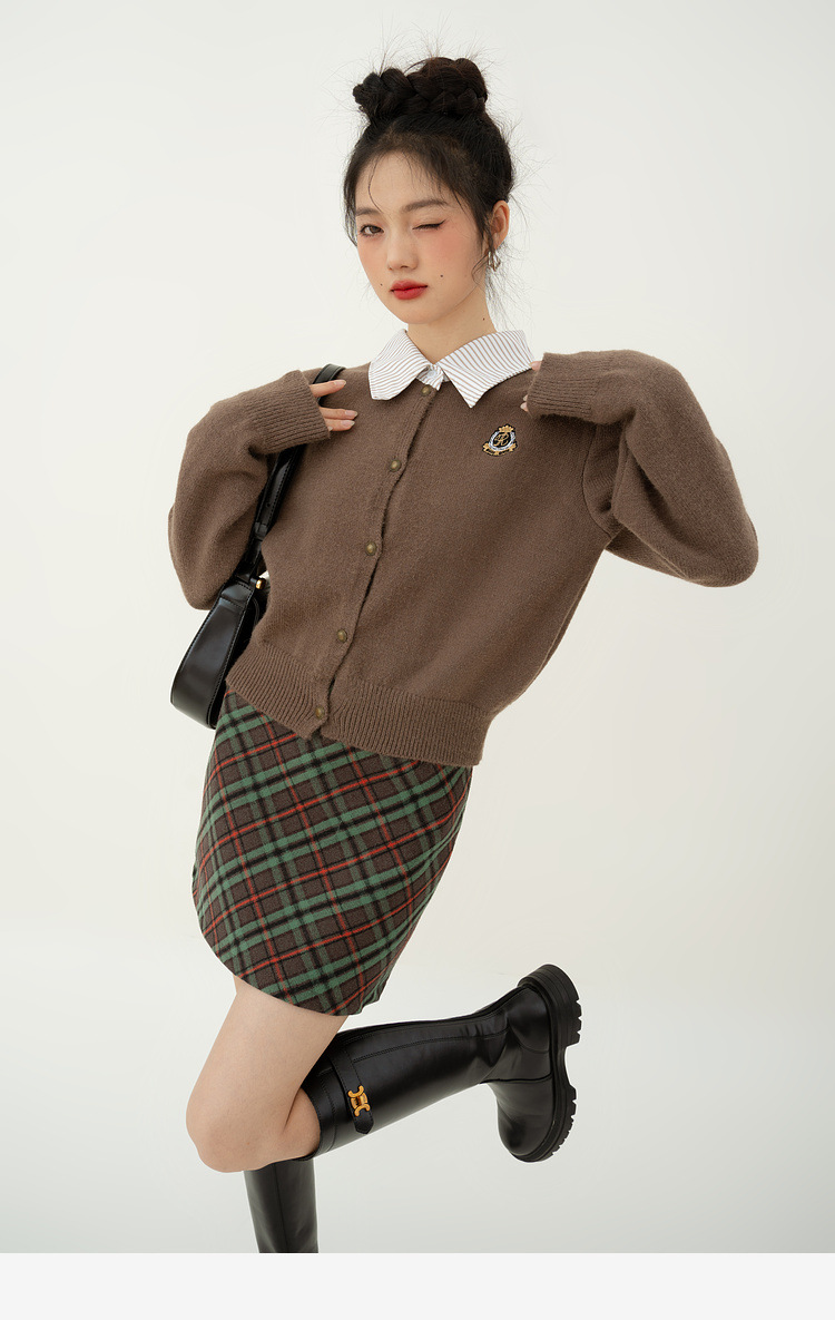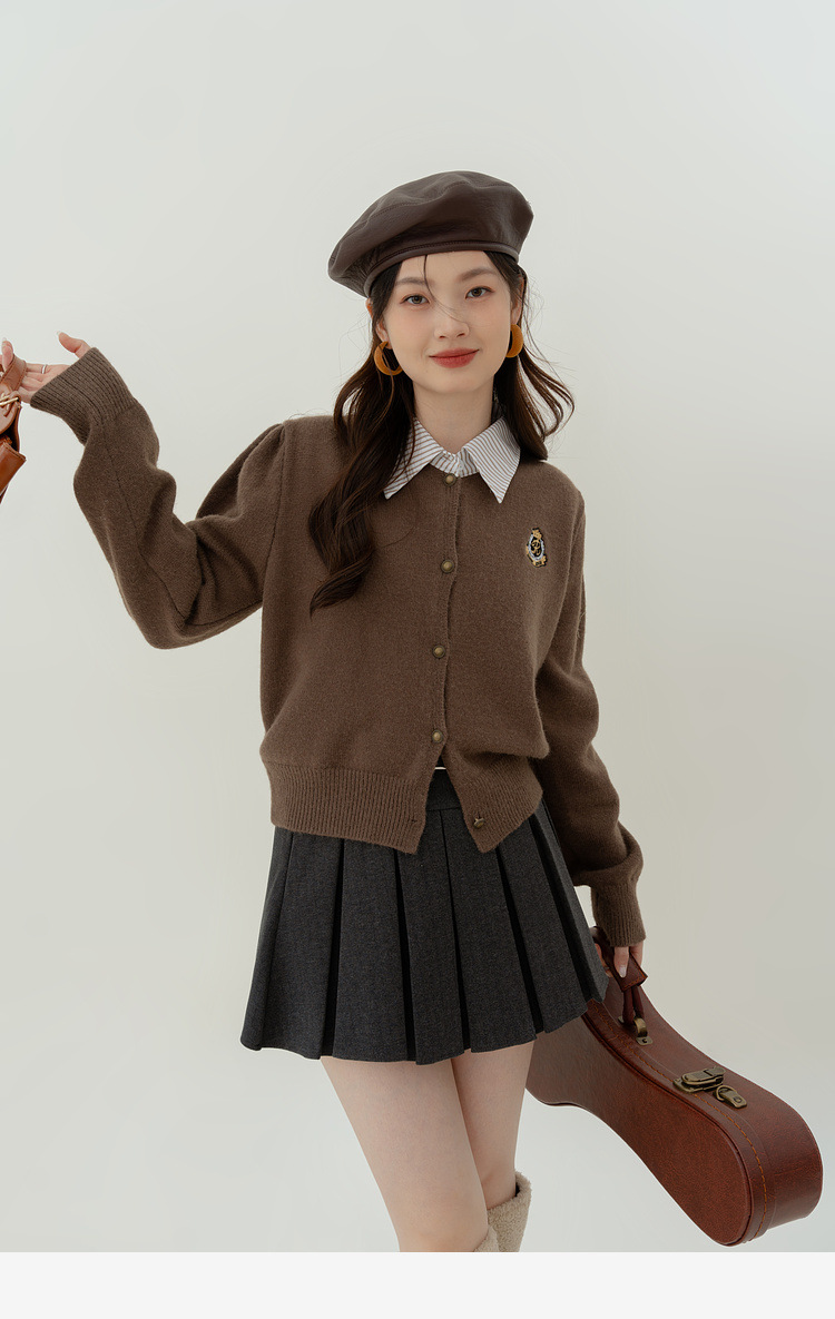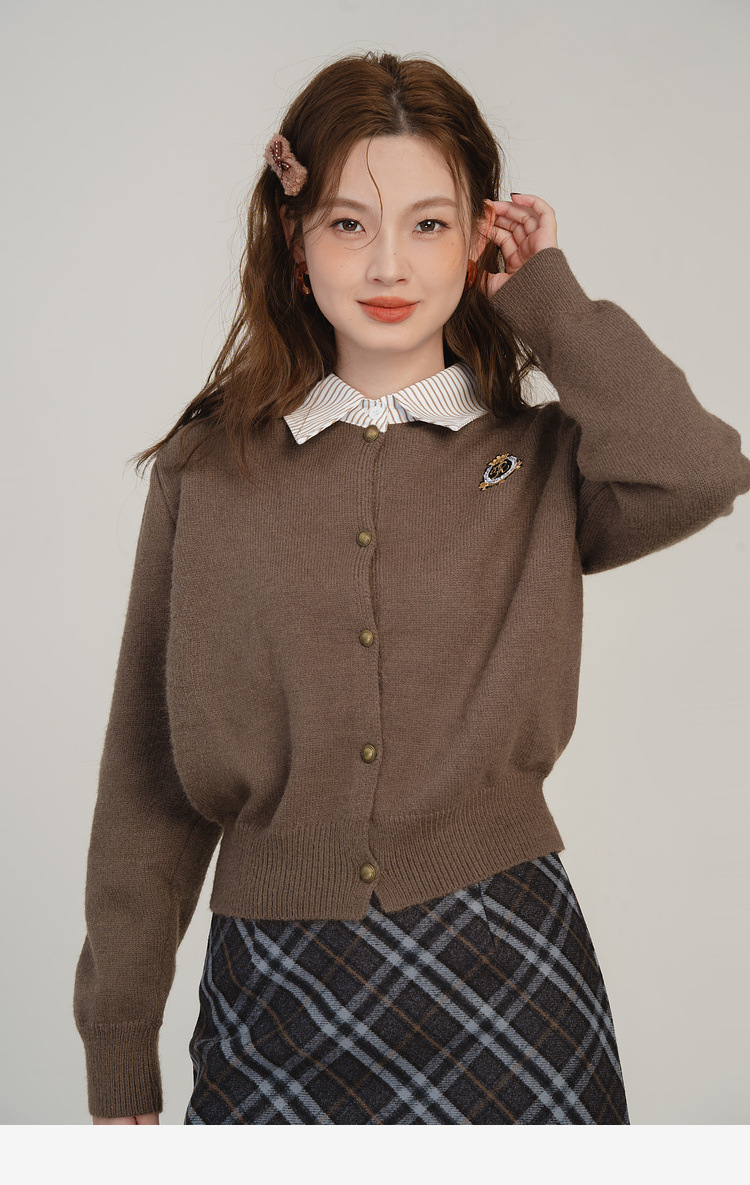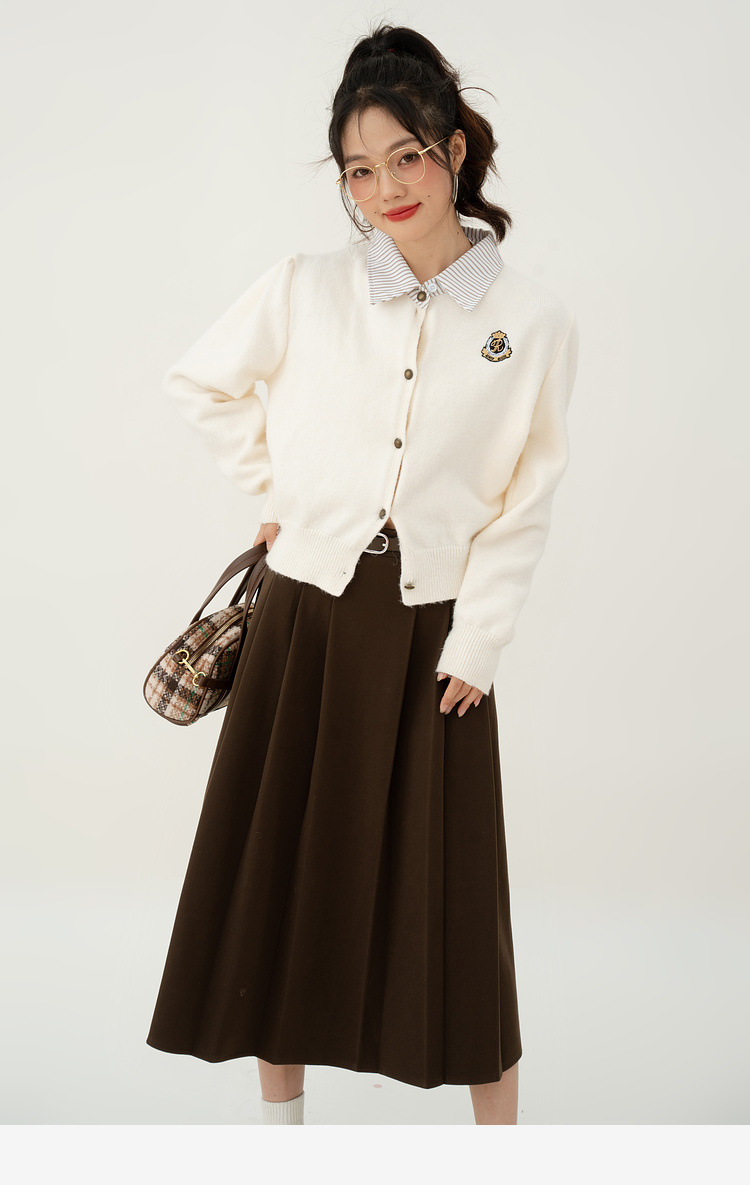 偽の2枚の学院風polo襟のカーディガンのセーターの女性秋冬のデザイン感の小さい人たちはニットのカーディガンを着ます。