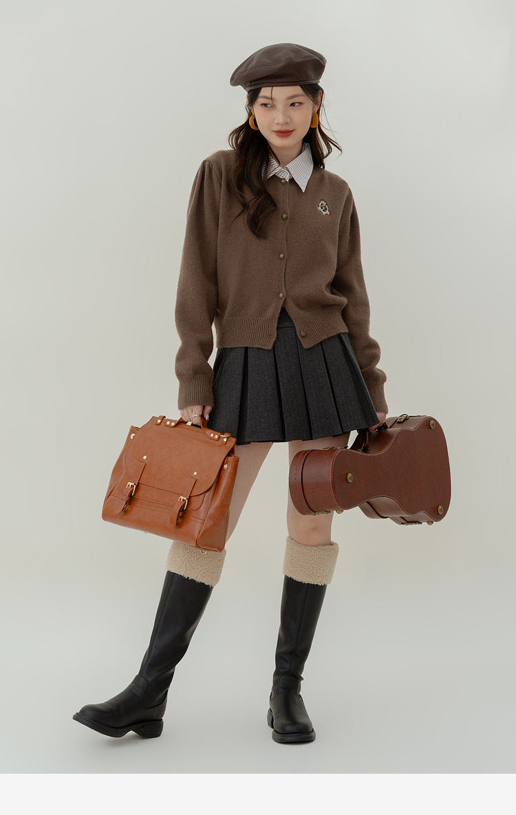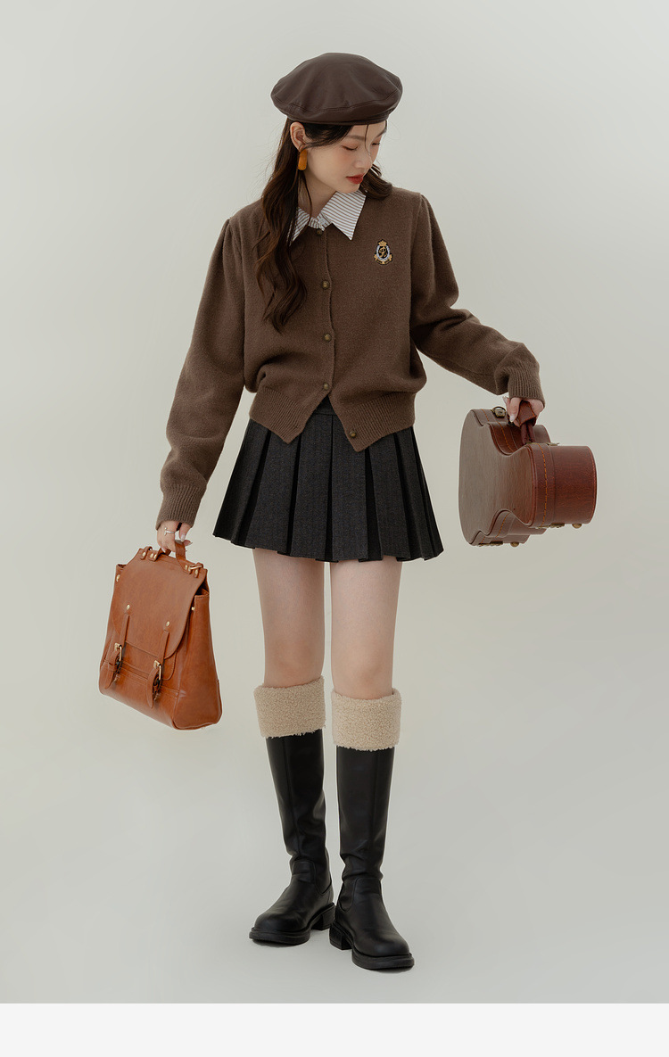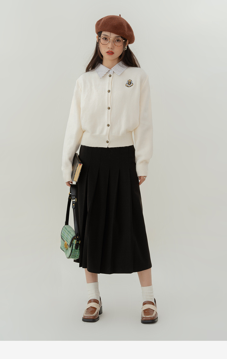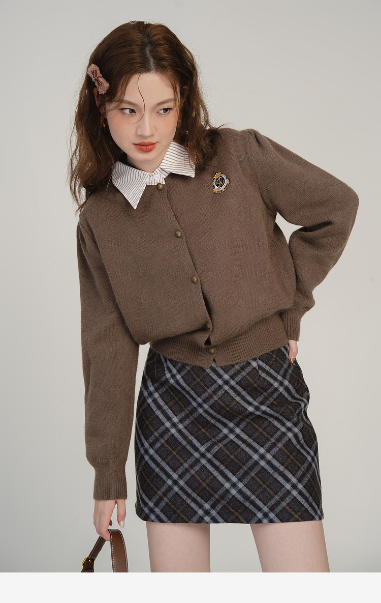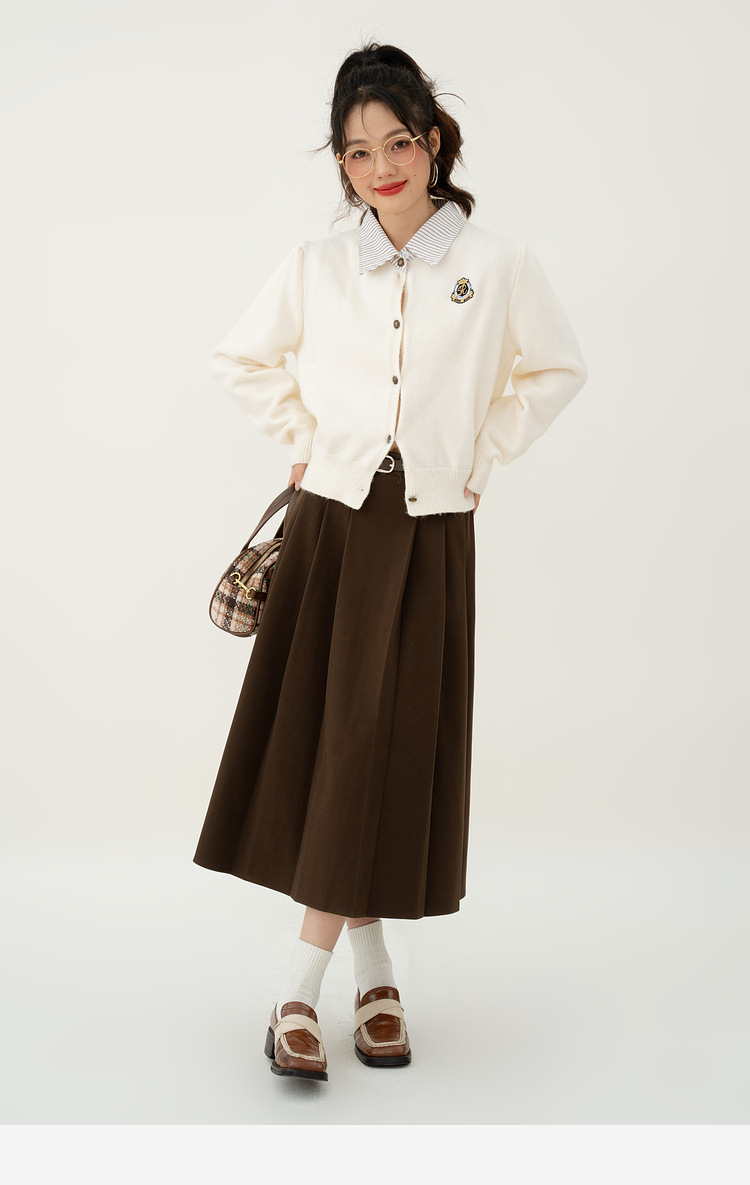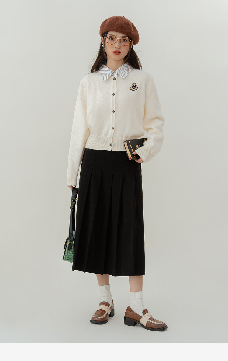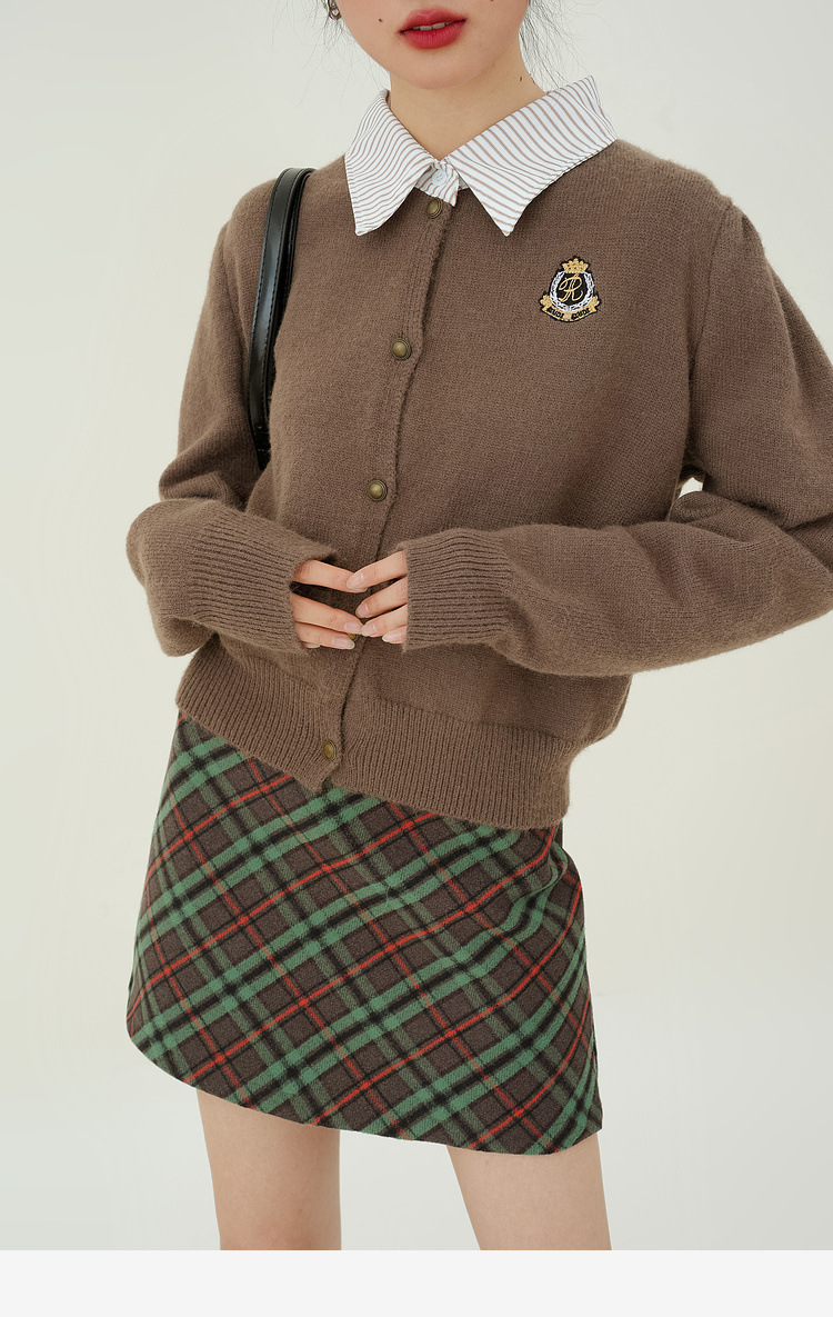 偽の2枚の学院風polo襟のカーディガンのセーターの女性秋冬のデザイン感の小さい人たちはニットのカーディガンを着ます。