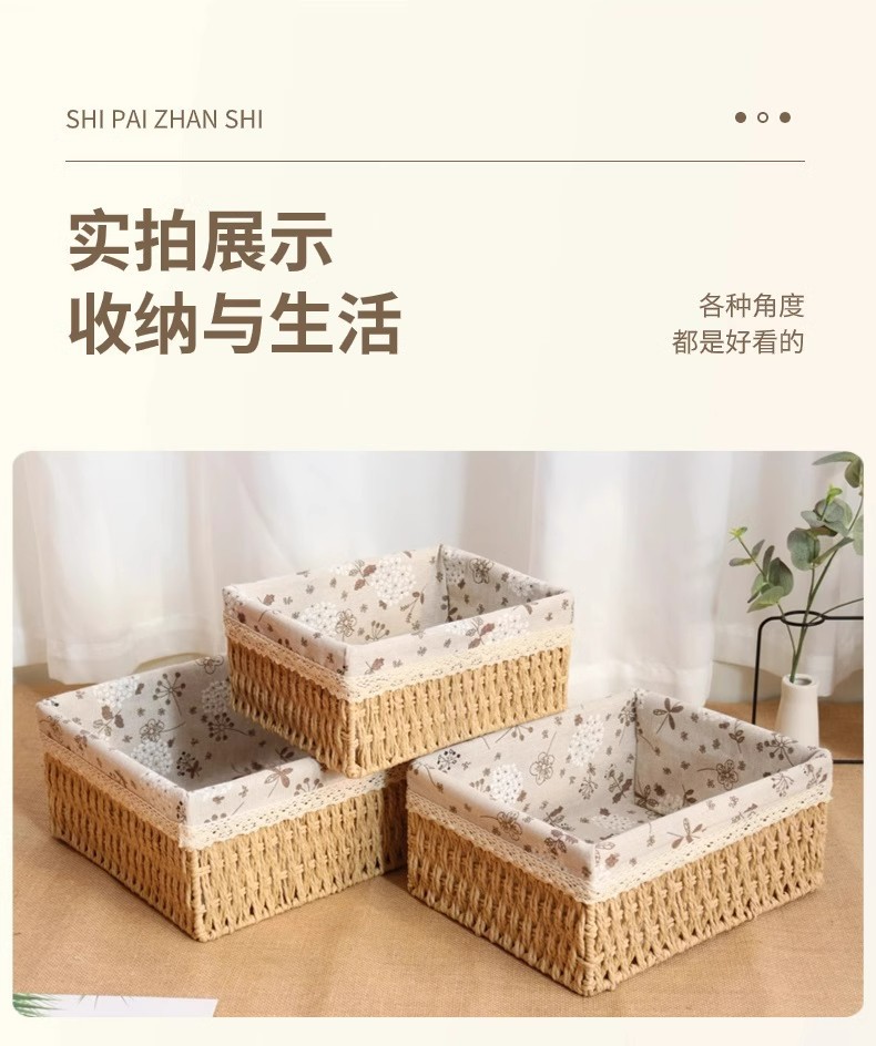 店铺商品页面图片都是实物拍摄,强弱光下或有微小色差,请您下单前与客服确定规格款式,以免给您造成误会;因为编织筐属于纯手工制,所以筐子边角或有少许绳头/结扣等,属于正常情况,如有介意还请慎拍。