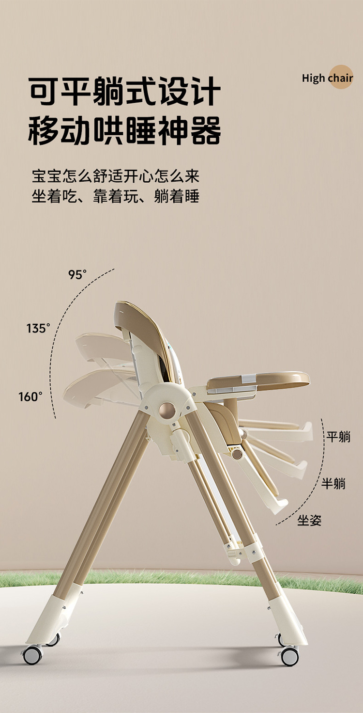ベビーダイニングチェア【高構成】-モカブラウン/PU/コットンパッド/ユニバーサルホイール