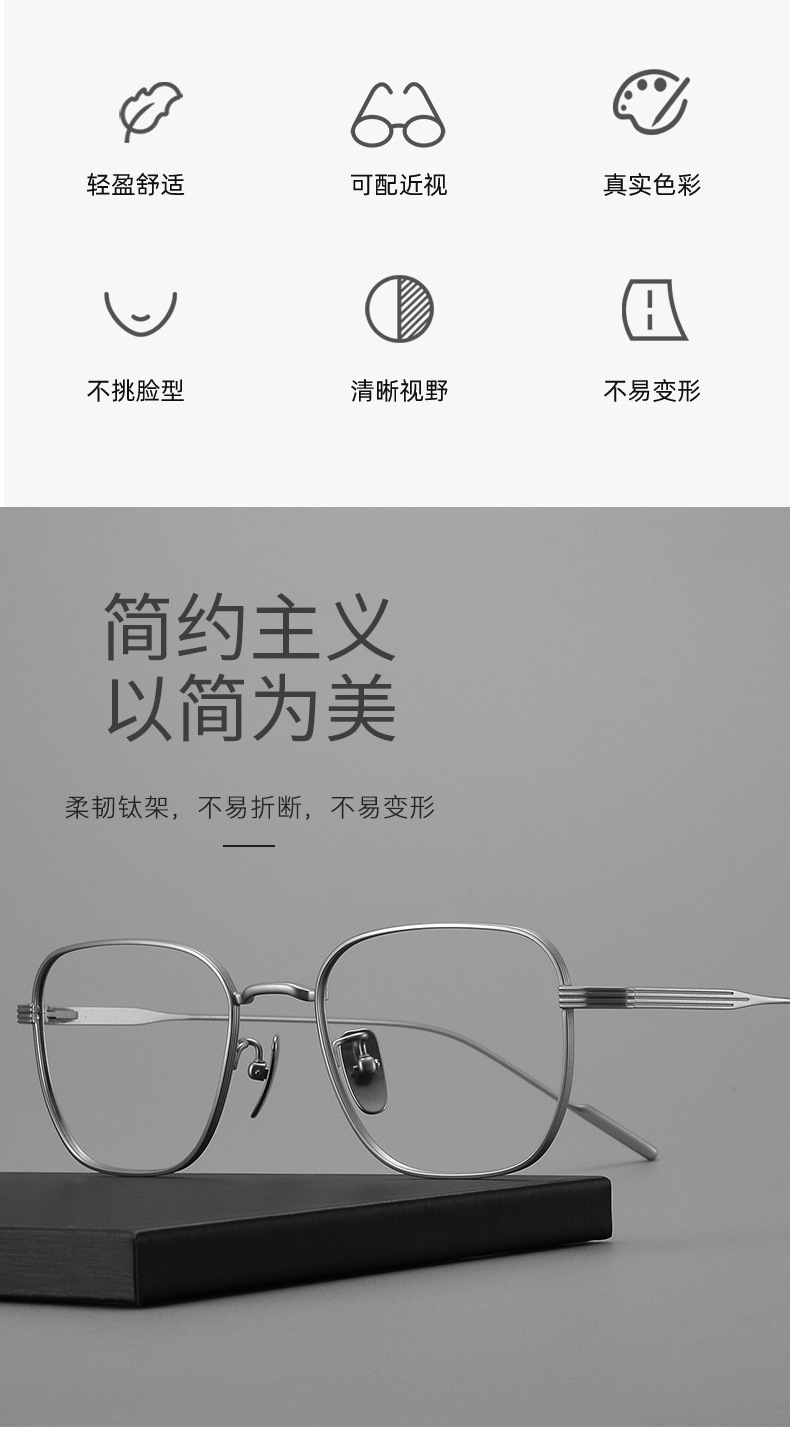洛莉先生の超軽量純チタンの額縁の暴竜の同モデルの近視純チタンの鏡のフレームの丹陽のメガネの明月のレンズは鏡を配合します。