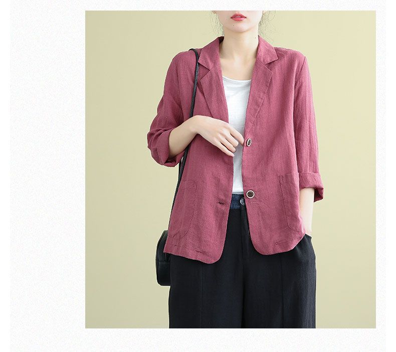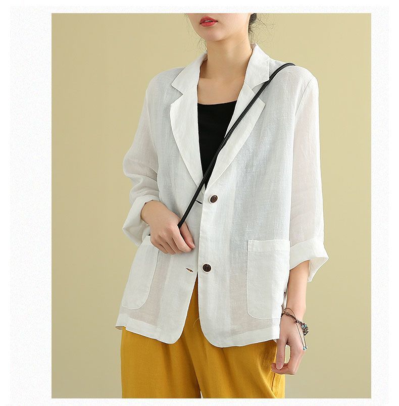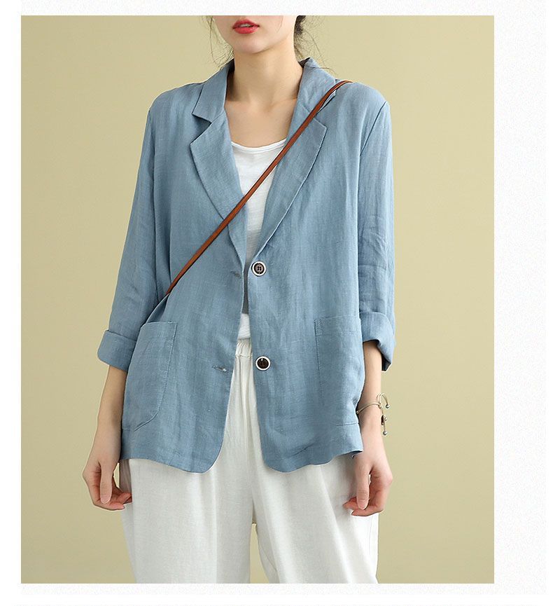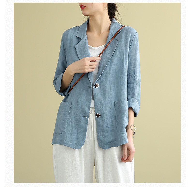 綿麻のコートの小さいスーツの2023春の夏の新型のゆったりしている文芸は長袖のカジュアルな気質の日焼け止めの服の女性に似合います。