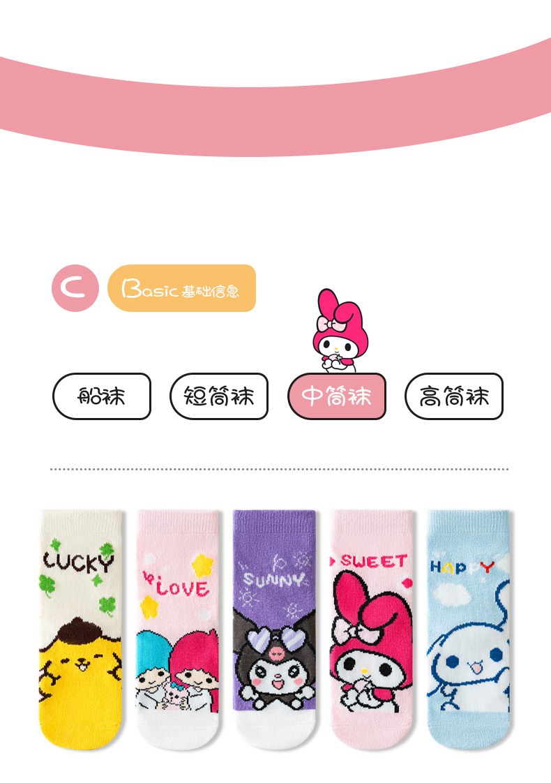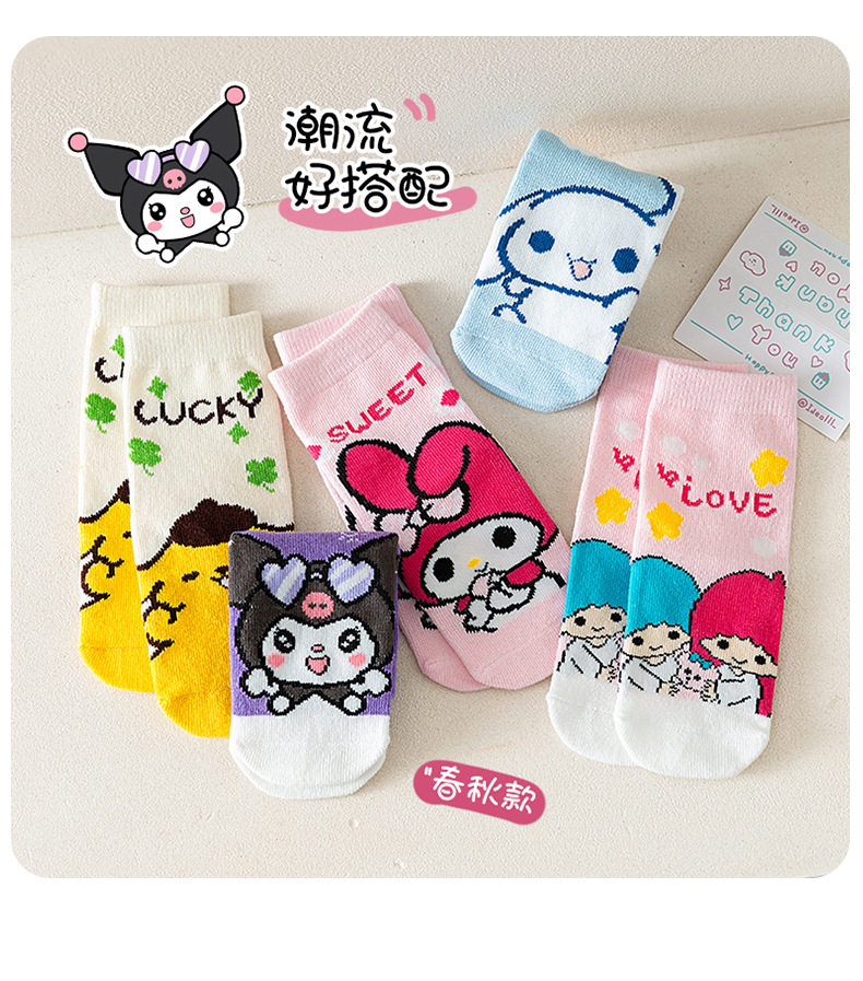 クロミの女の子の靴下の秋の新商品の学生の甘い子供の靴下の韓国版の赤ちゃんのサンリオの中筒の綿の靴下の卸売り