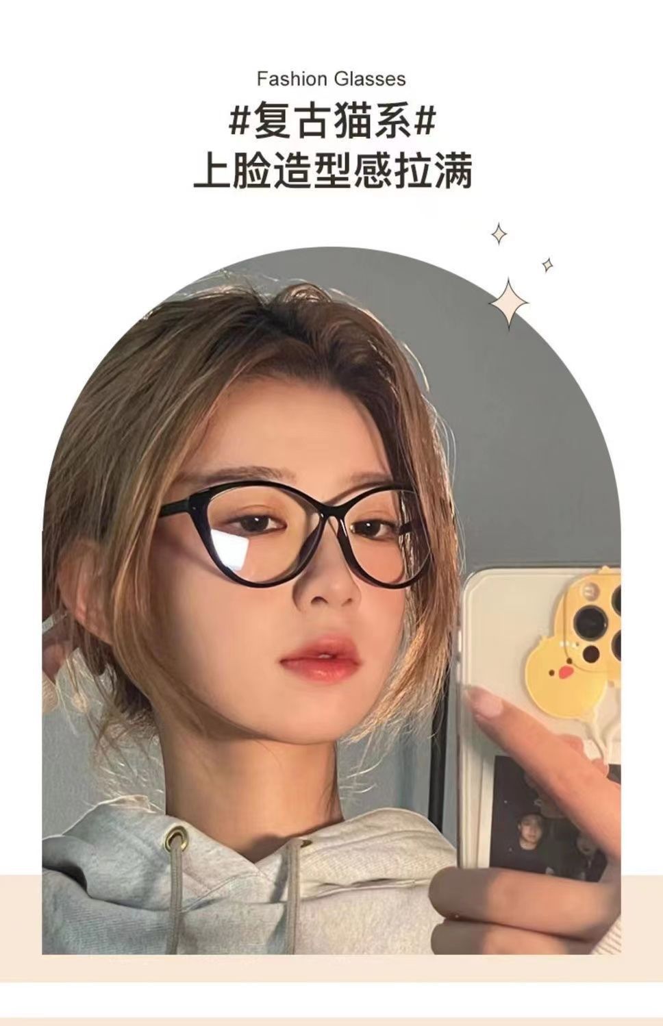 アメリカンキャットアイべっ甲色メガネフレーム近視メガネ超軽量レトロ学生ノーメイク神器小顔効果プレーンメガネ