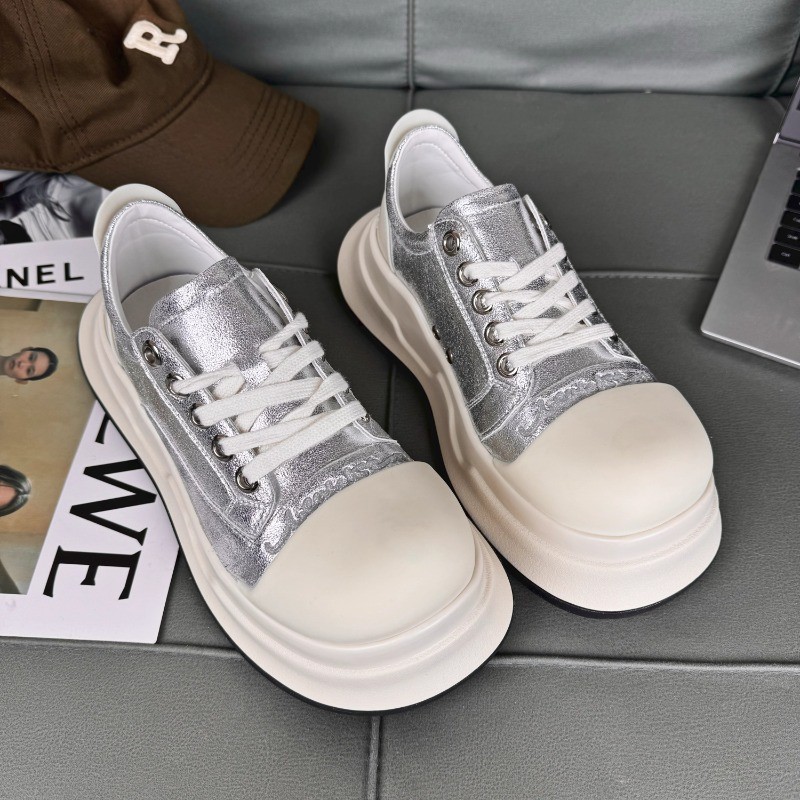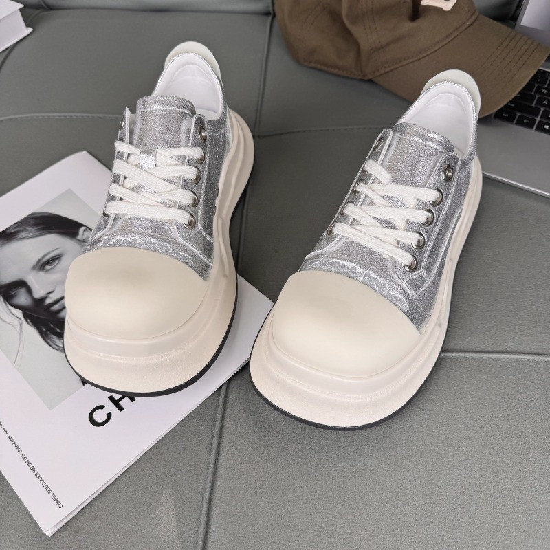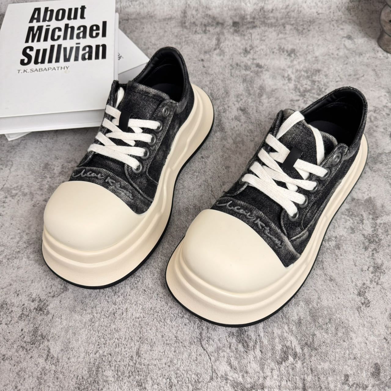 白黒の丸い頭の米琪の大きい頭の靴の女性の2024春夏の新型の醜い萌えのキャンバスの靴の厚い底は高くなって運動のカジュアルシューズを高めます。