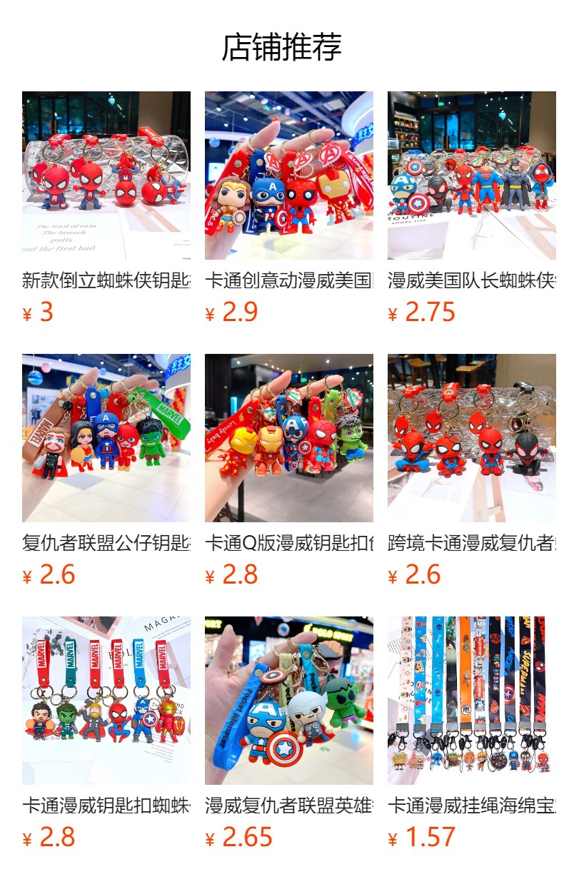 新商品アニメアベンジャーズのキーホルダー創意的なスパイダーアイアンマンの死侍公仔カバンのペンダントプレゼント