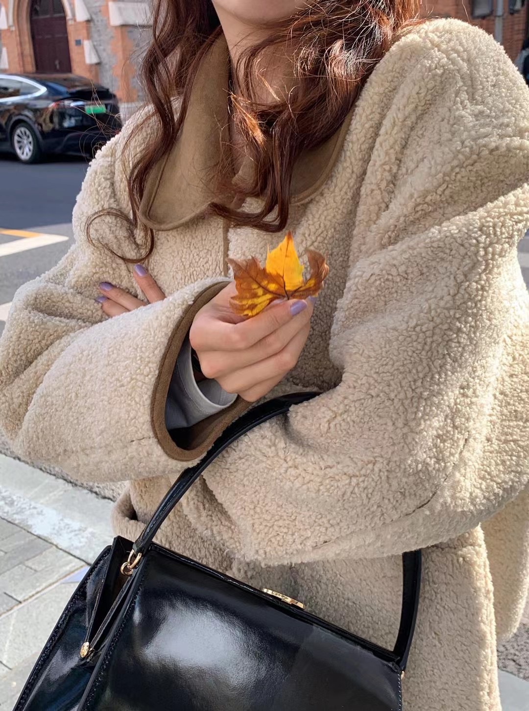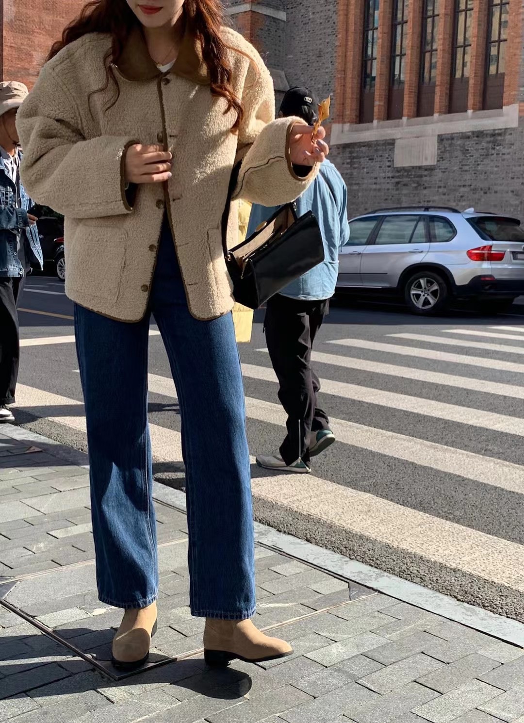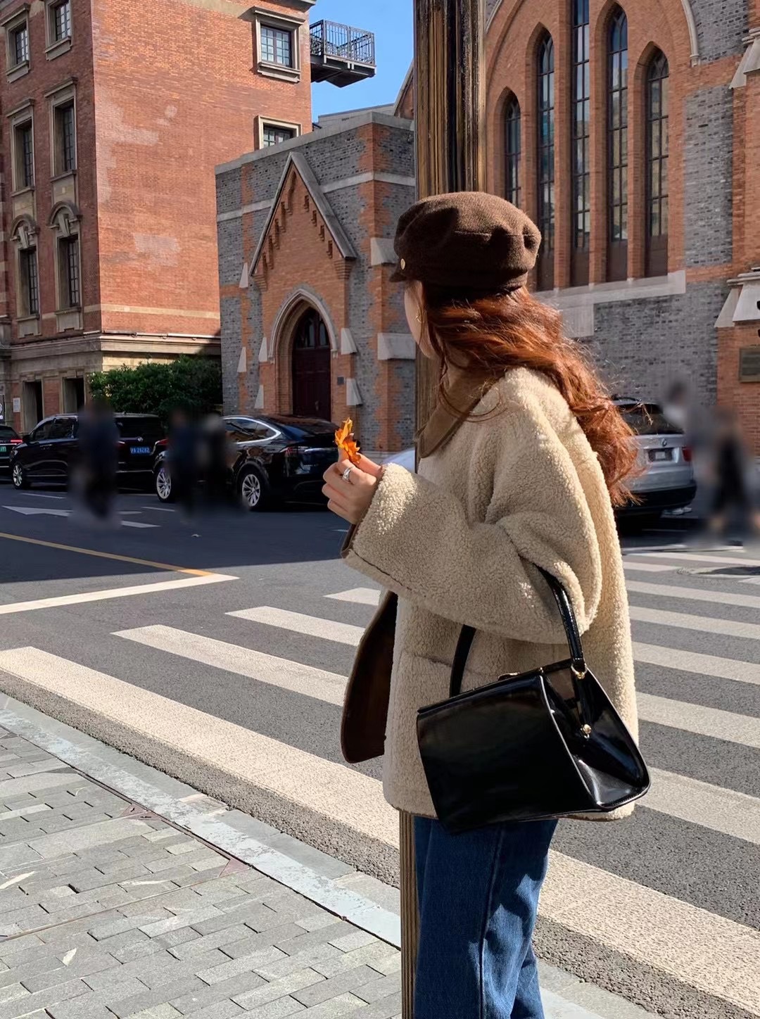 冬用厚手の綿入りジャケット、韓国風リバーシブルラムウールジャケット、襟付き、ダブルポケット、厚手で暖かい女性用トップス