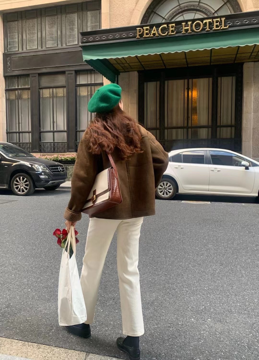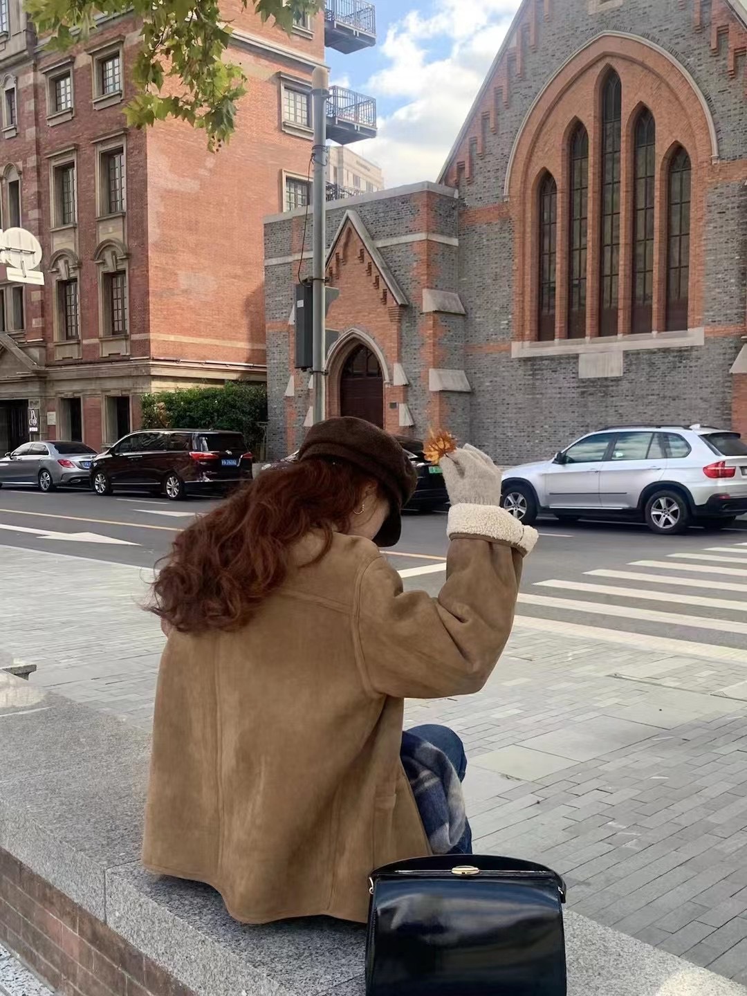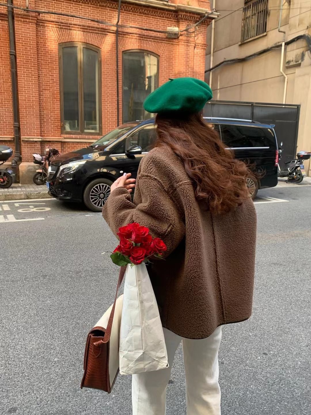 冬用厚手の綿入りジャケット、韓国風リバーシブルラムウールジャケット、襟付き、ダブルポケット、厚手で暖かい女性用トップス