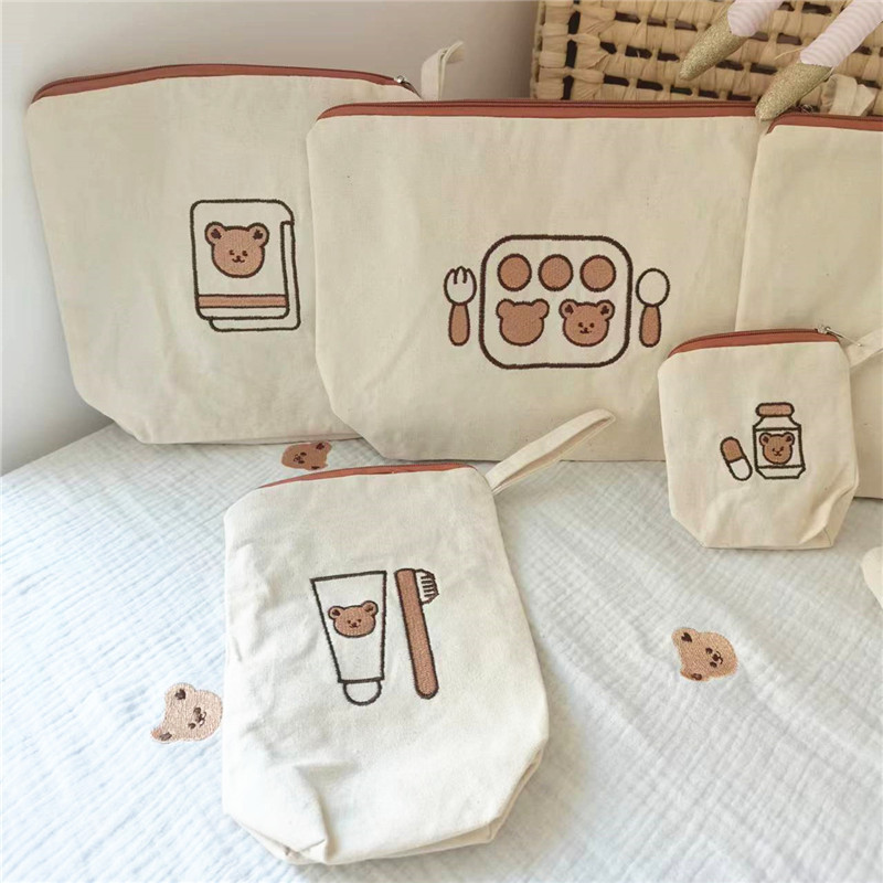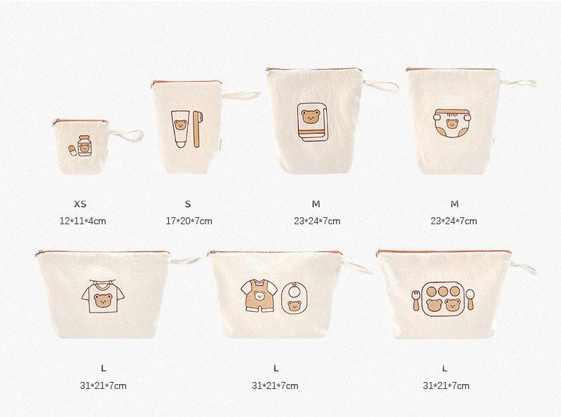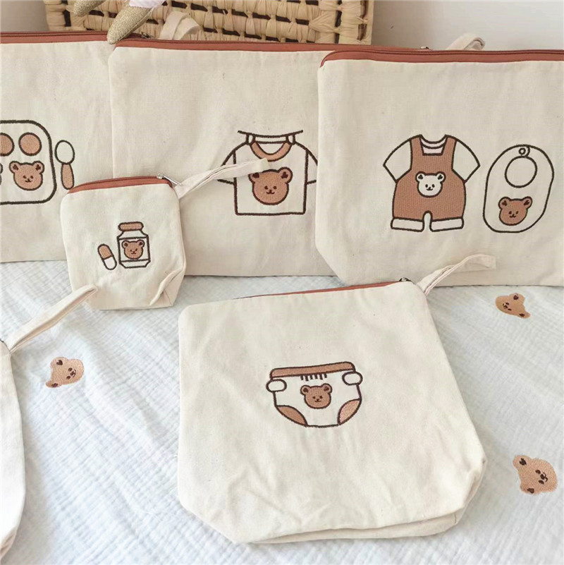 クマのプリント 7 個セット,クマの刺繍7点セット(在庫あり),リス刺繍7点セット(ライトパープルジッパー)