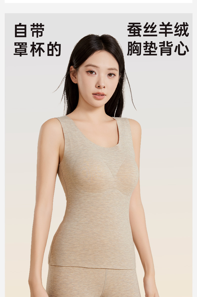 【クラスA】シルクカシミヤ徳パイル保温ベスト女性7A抗菌無胸ベストとベルベット胸パッドベスト