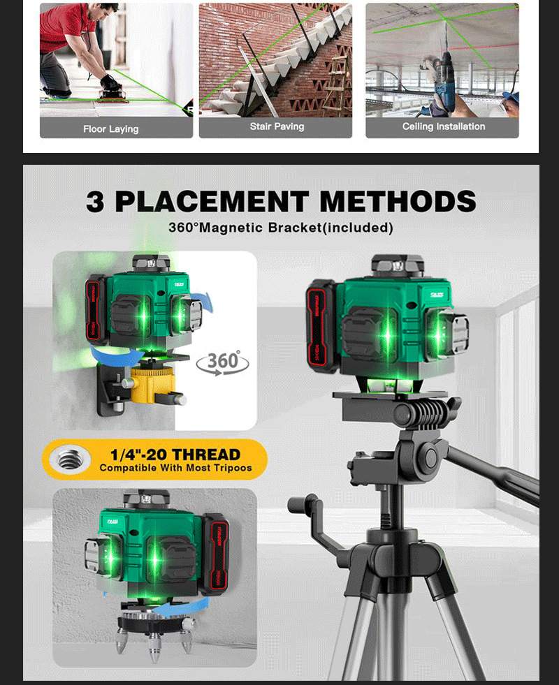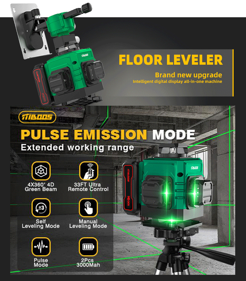 高精度グリーンライト8線式【デジタル表示大画面】ビッグマックデュアルバッテリー+三脚