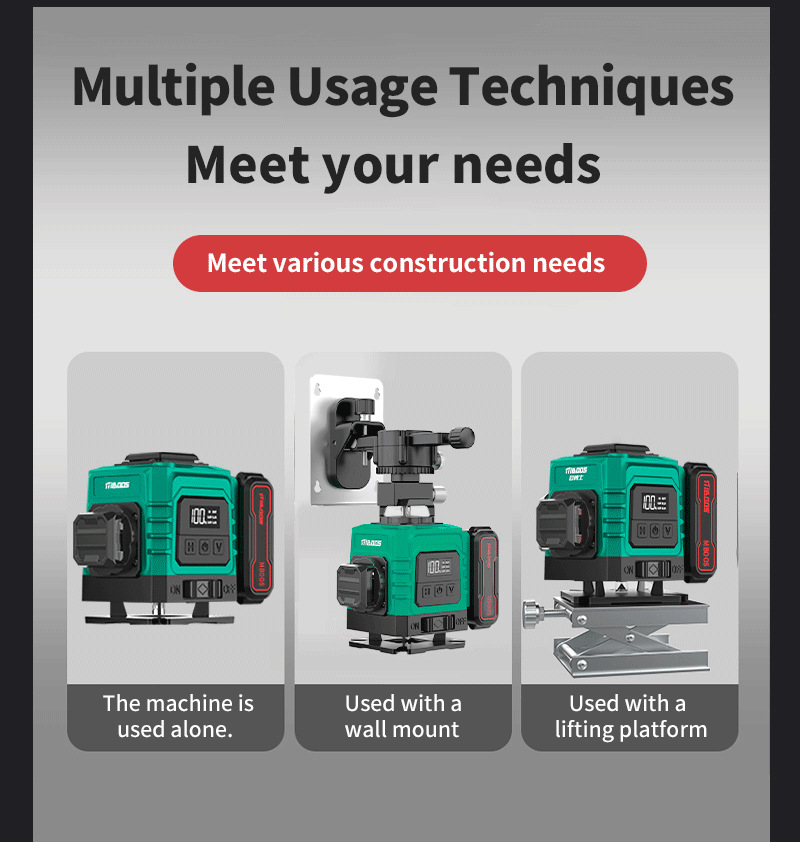 高精度グリーンライト12線式【デジタル表示大画面】ビッグマックデュアルバッテリー+ウォールラック
