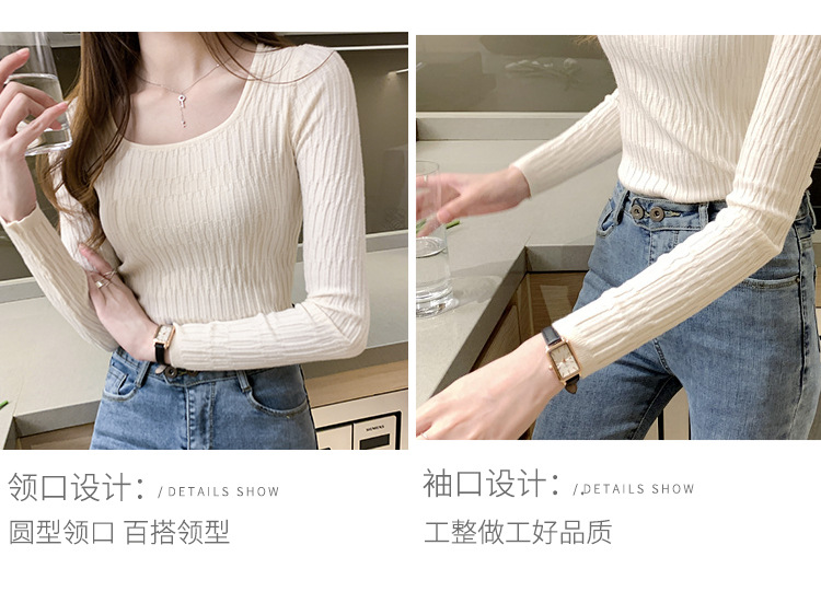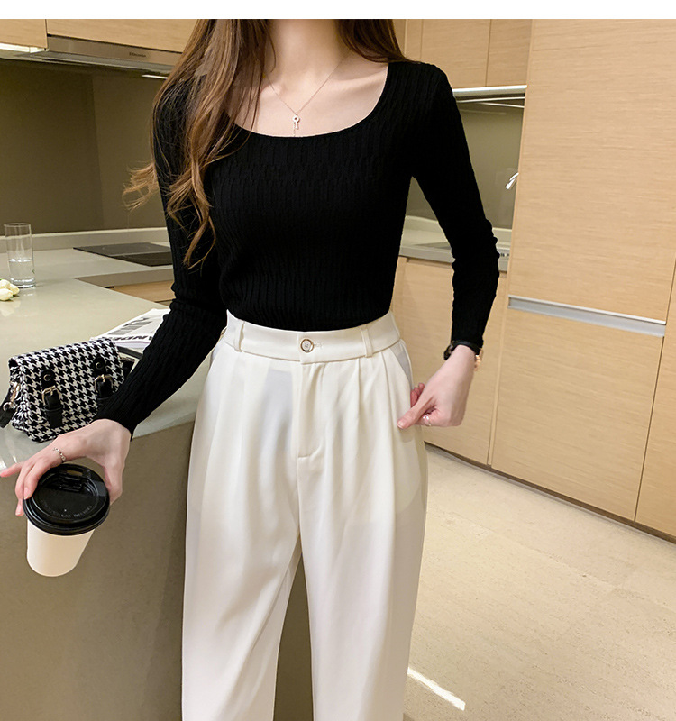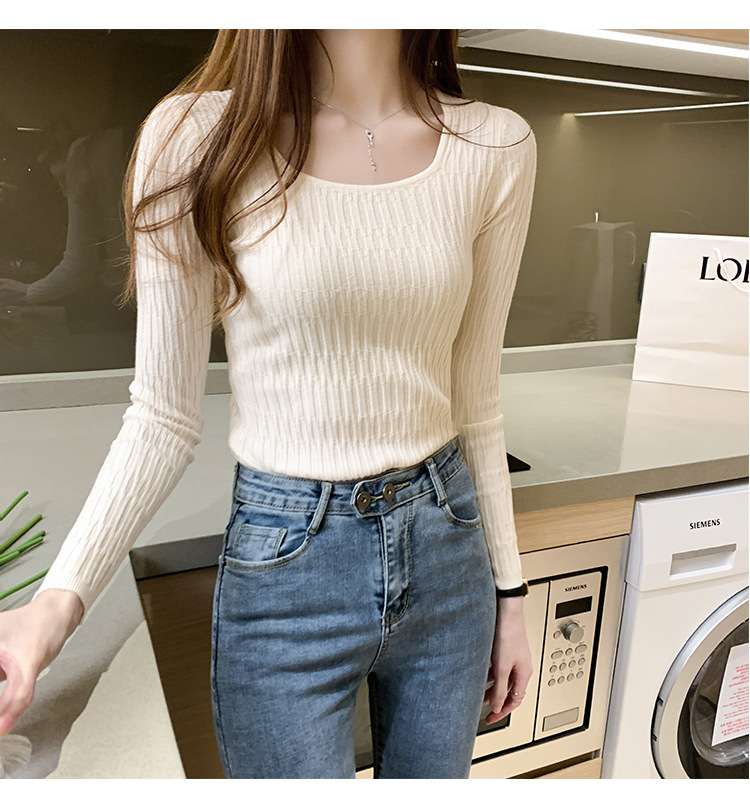 2025 春と秋の新韓国スタイルレトロ婦人服スリムスクエアカラートップボトリングシャツ長袖セーター女性のファッション