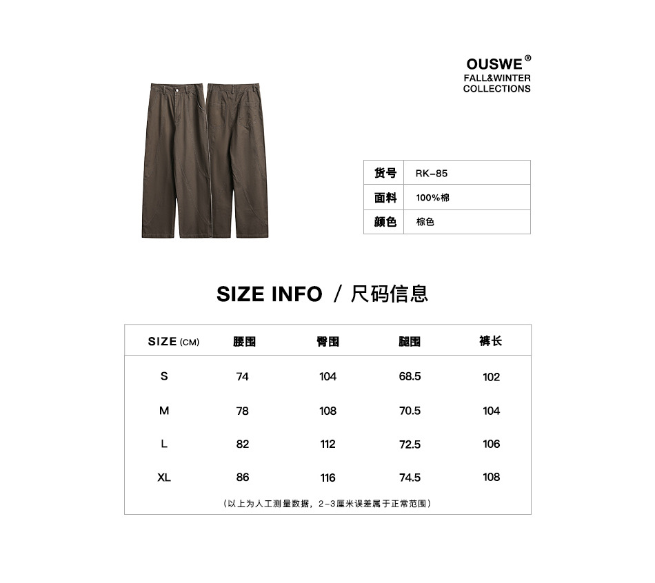 OUSWE春秋日本系復古工装ズボン男性ゆるい百合ストレートカジュアル長ズボン甲板ズボンRK85