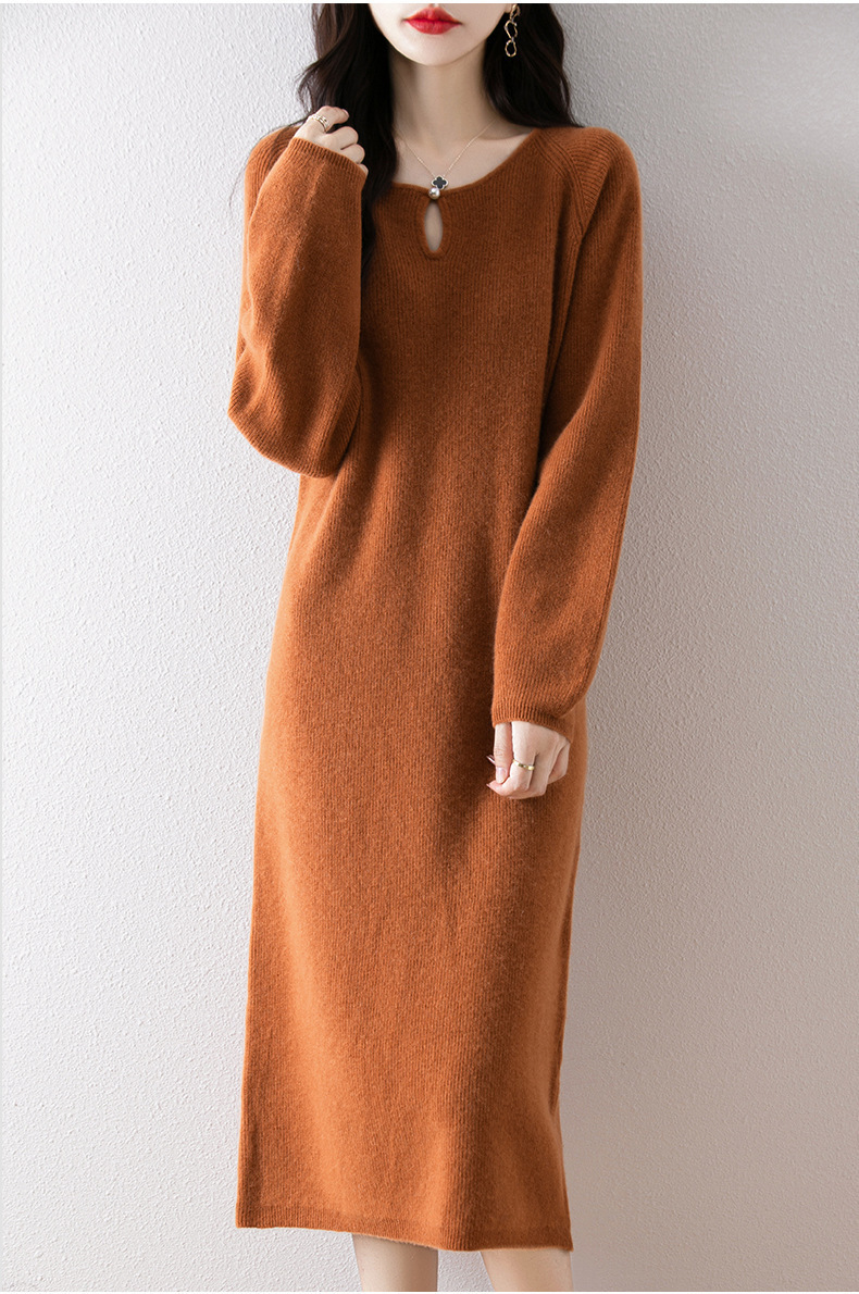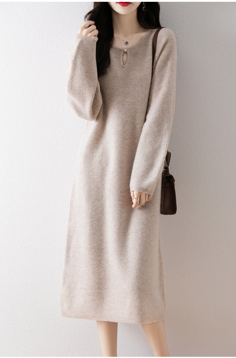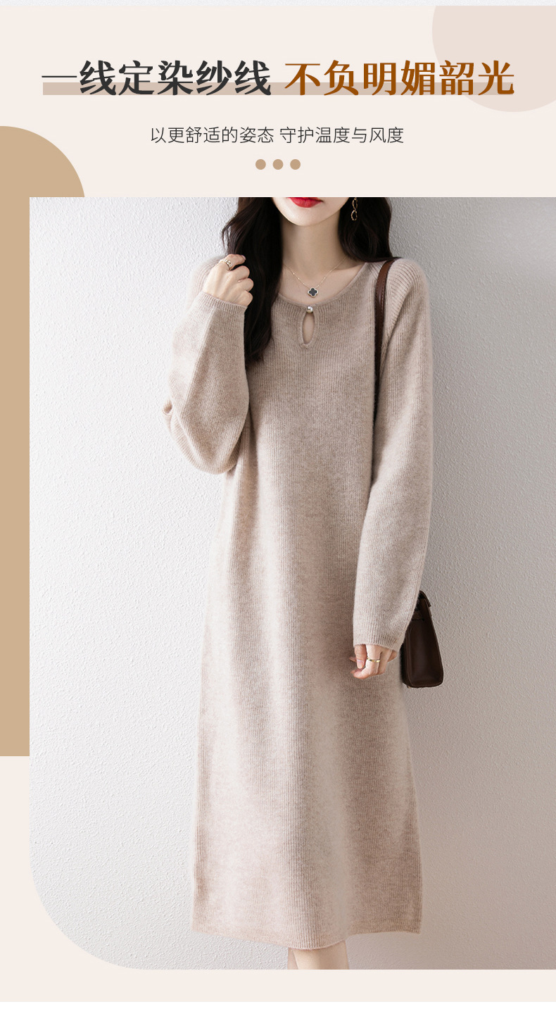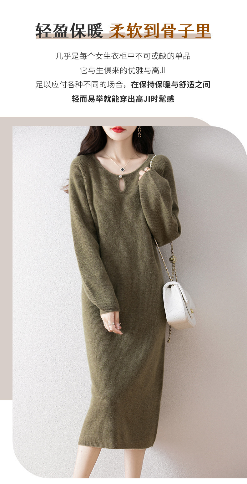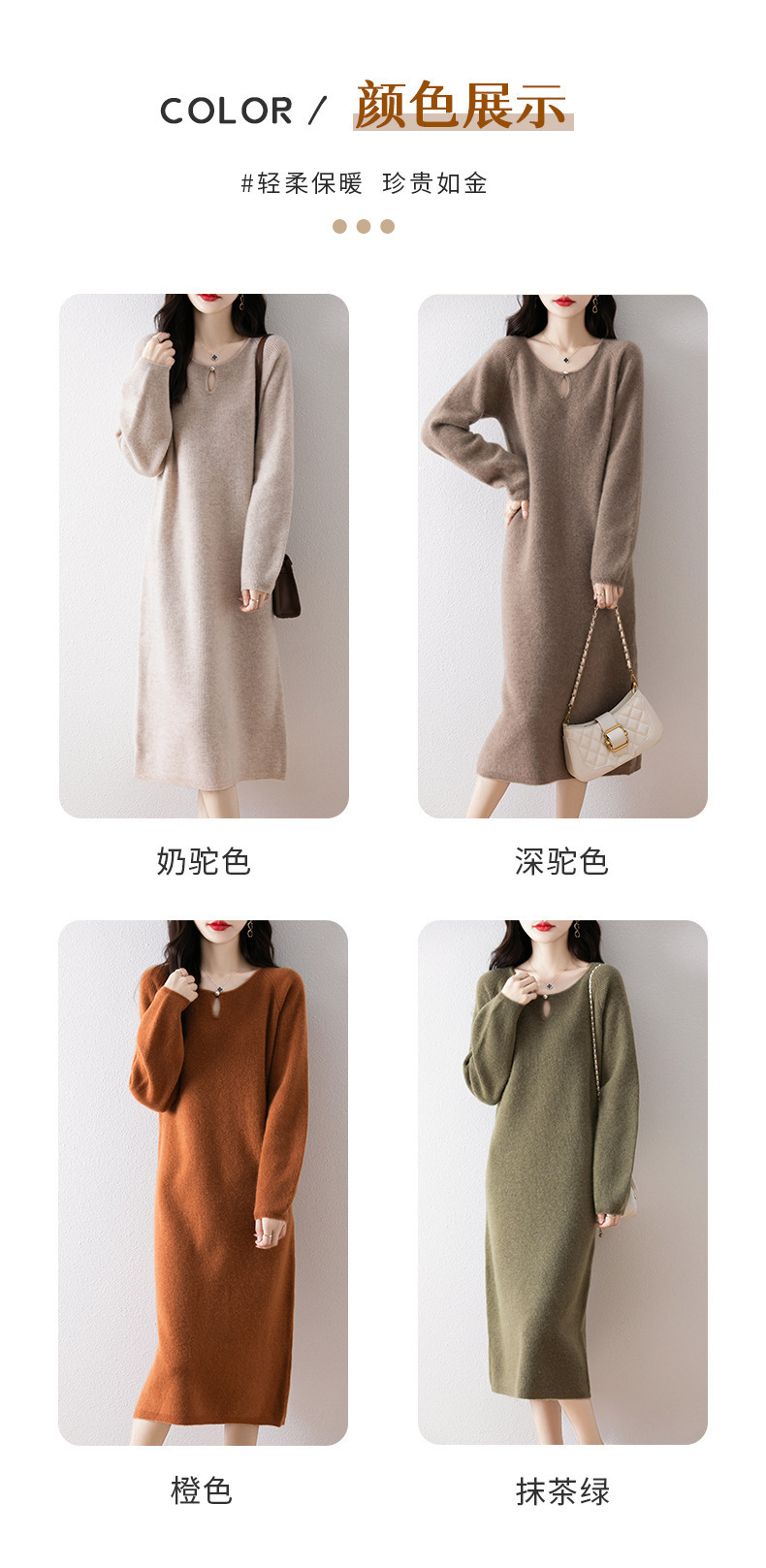 純粋なウールのワンピースの女性のゆったりした怠惰なファッションは膝の長いスカートの24秋冬の新型のデザイン感のニットのセーターのスカートを越えます。