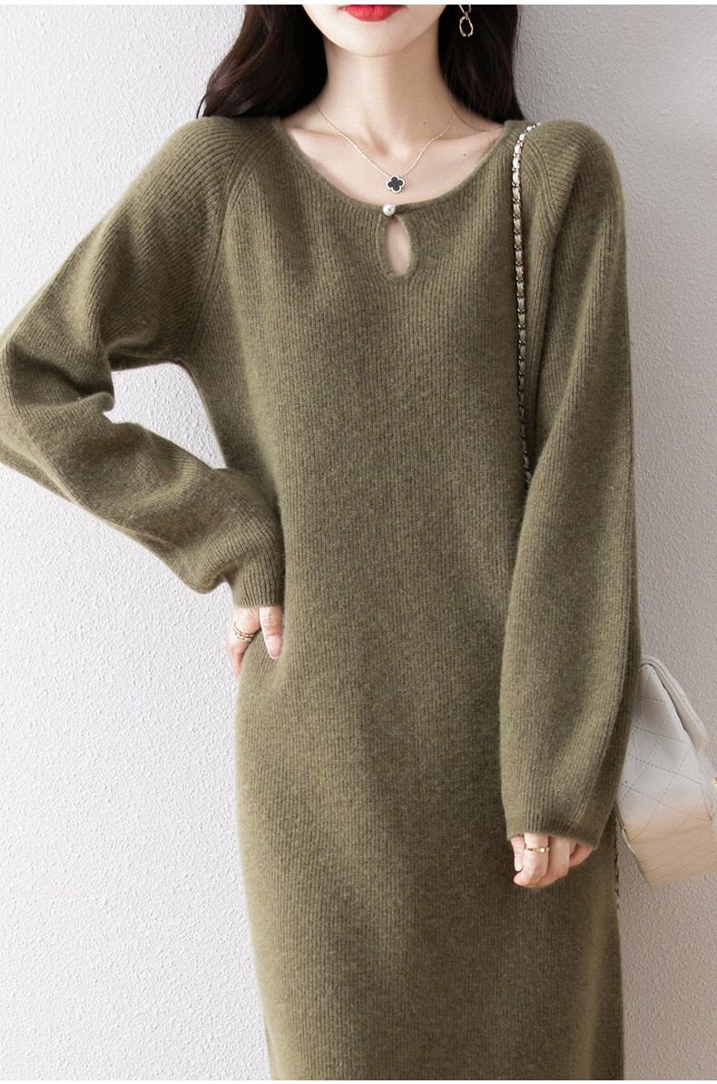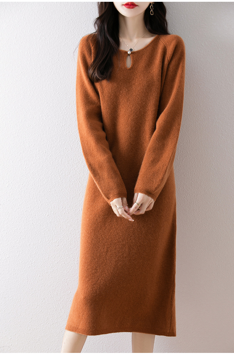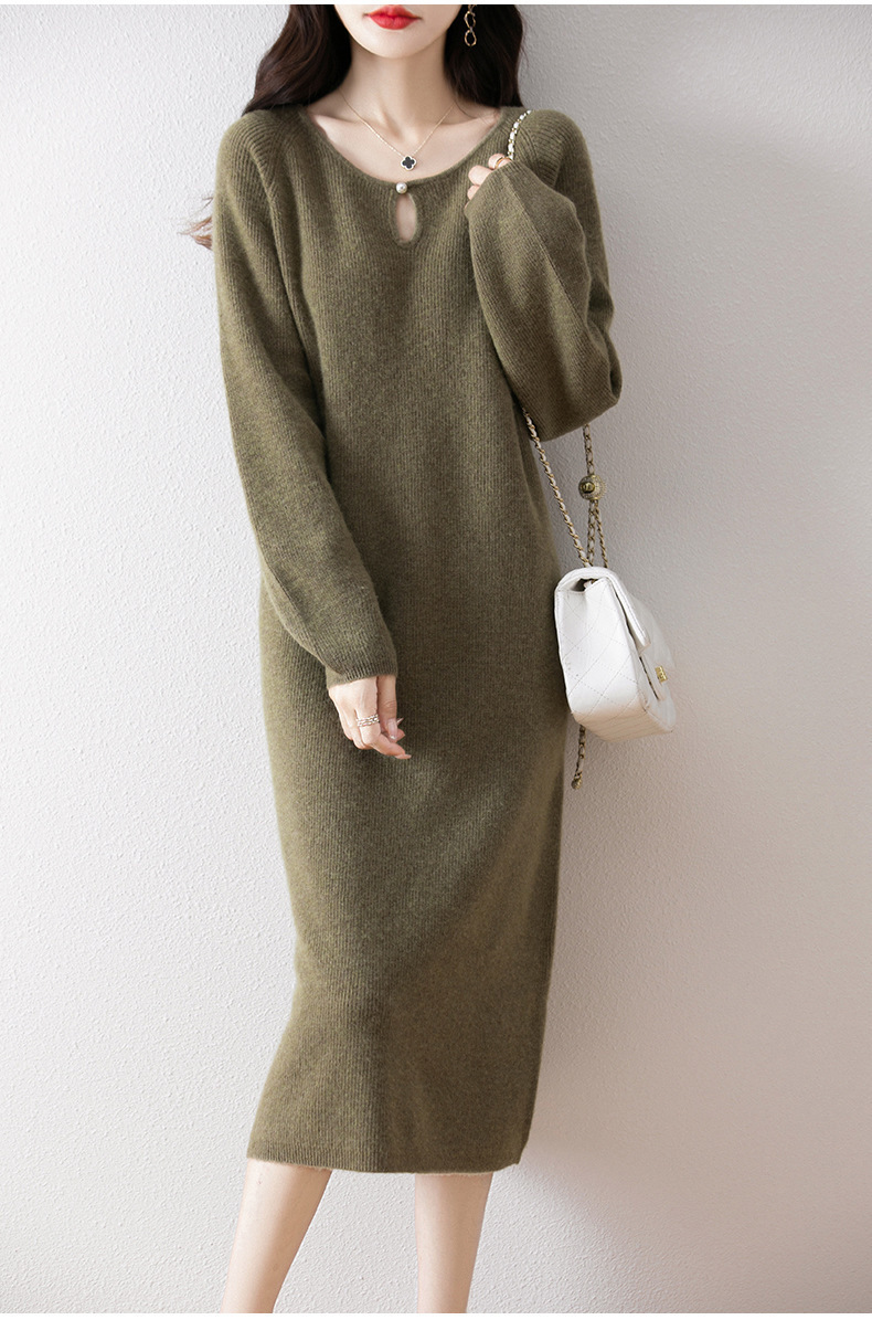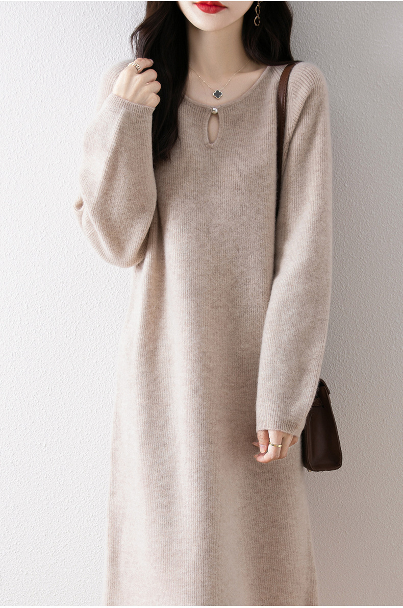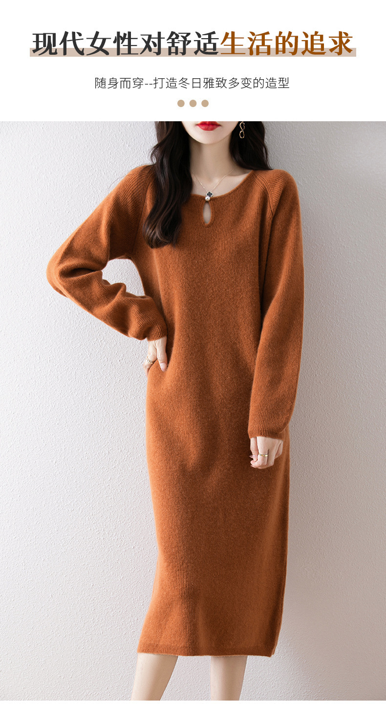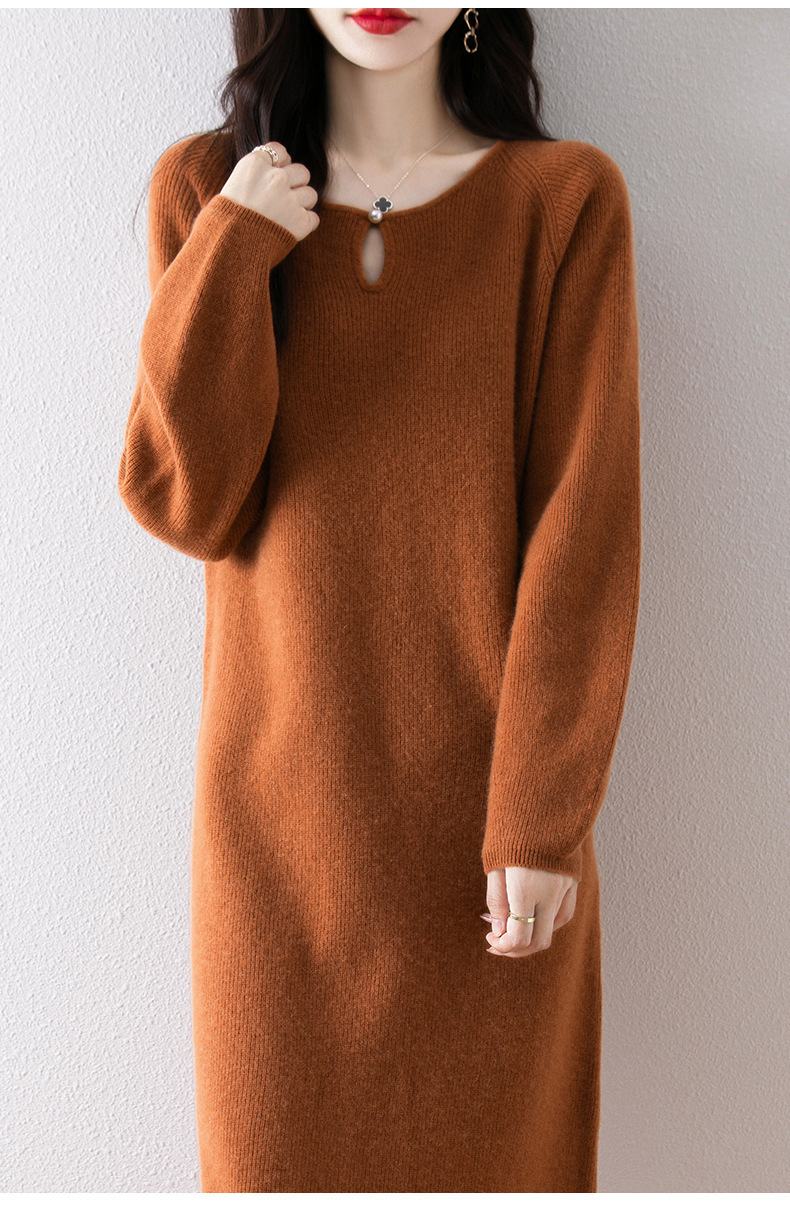 純粋なウールのワンピースの女性のゆったりした怠惰なファッションは膝の長いスカートの24秋冬の新型のデザイン感のニットのセーターのスカートを越えます。