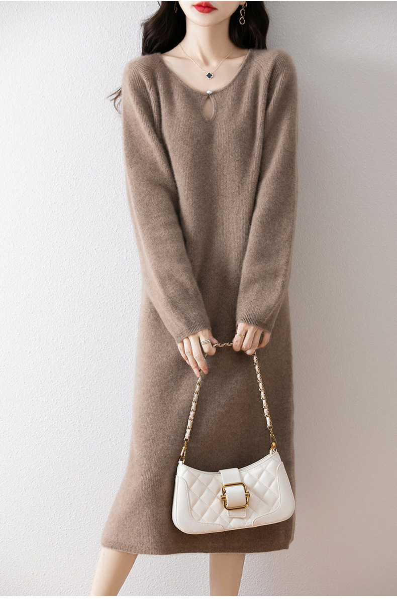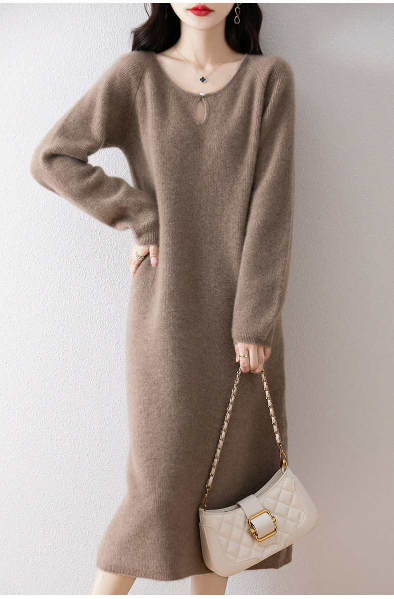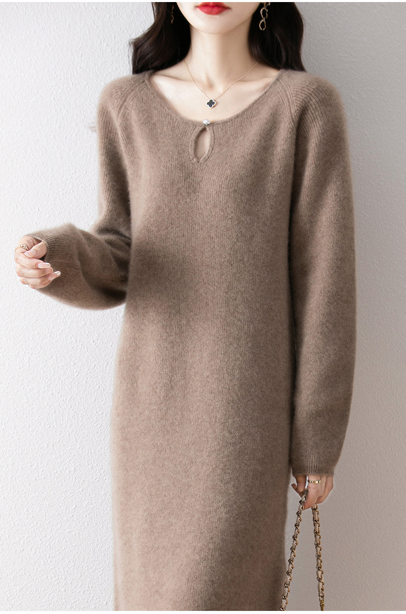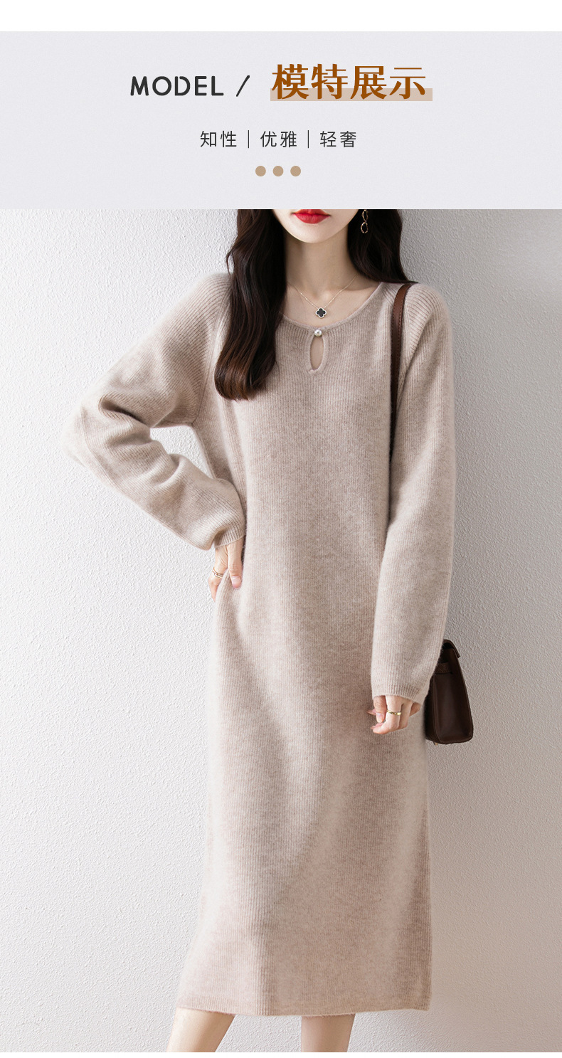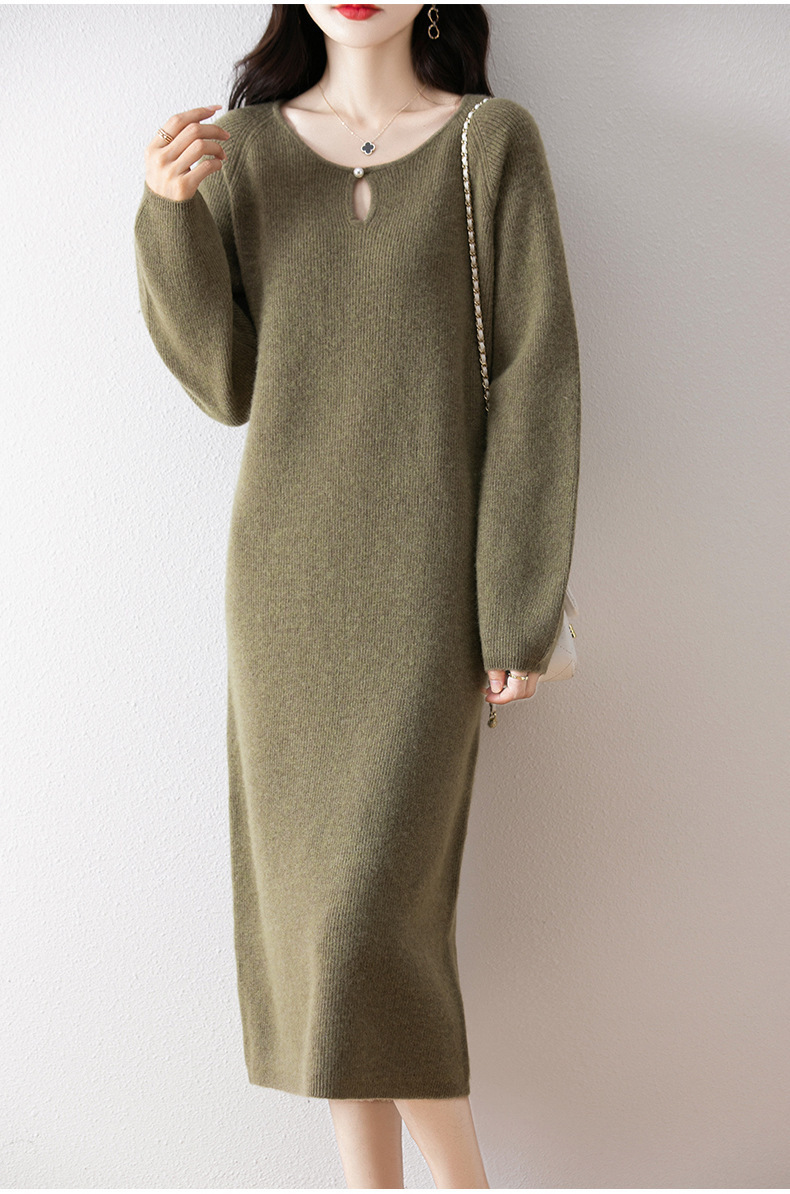純粋なウールのワンピースの女性のゆったりした怠惰なファッションは膝の長いスカートの24秋冬の新型のデザイン感のニットのセーターのスカートを越えます。
