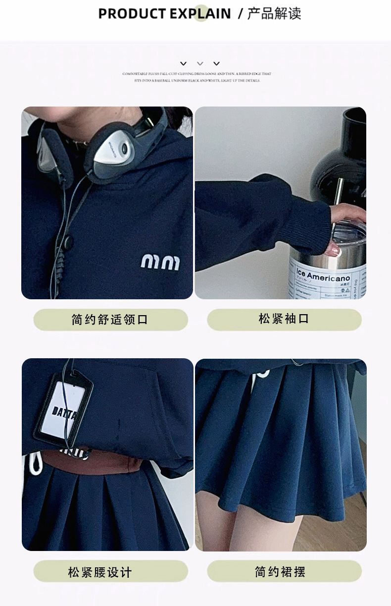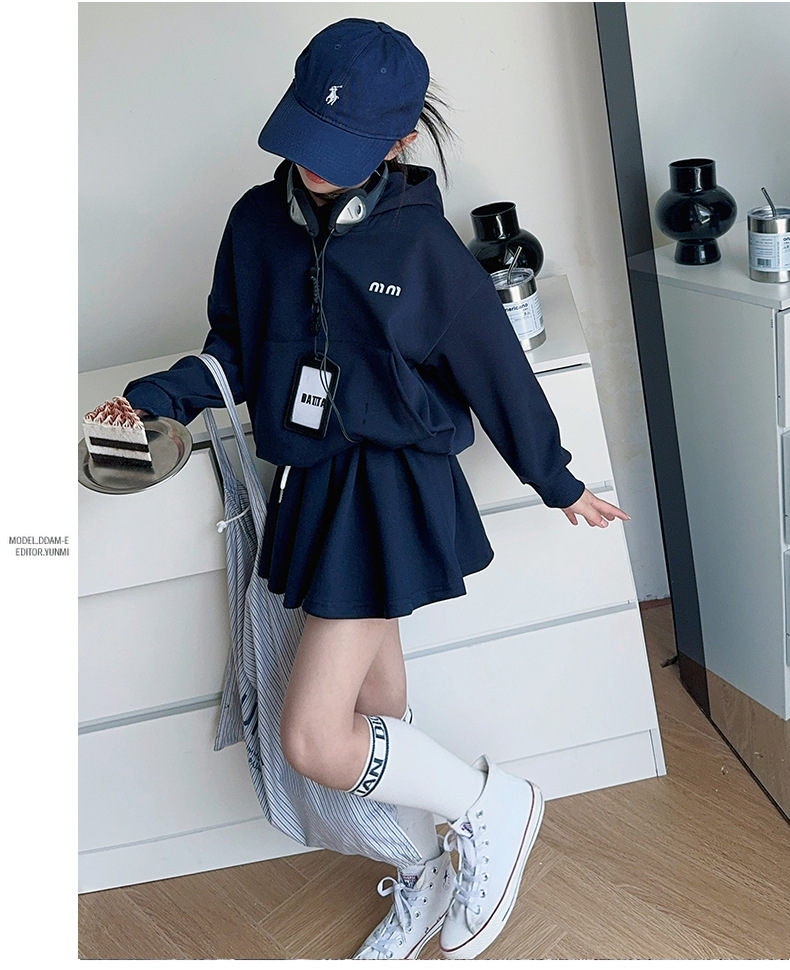 CYL-YQ-ブルーのフード付きスウェットシャツスカートスーツ