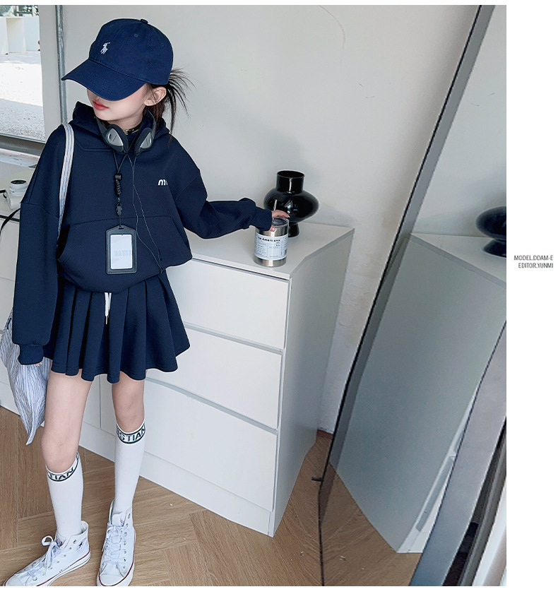 オレンジタイガーガールズ春秋スーツ 2025 新しいファッションガール韓国スタイル中大型子供カレッジスタイルスウェットシャツプリーツスカート