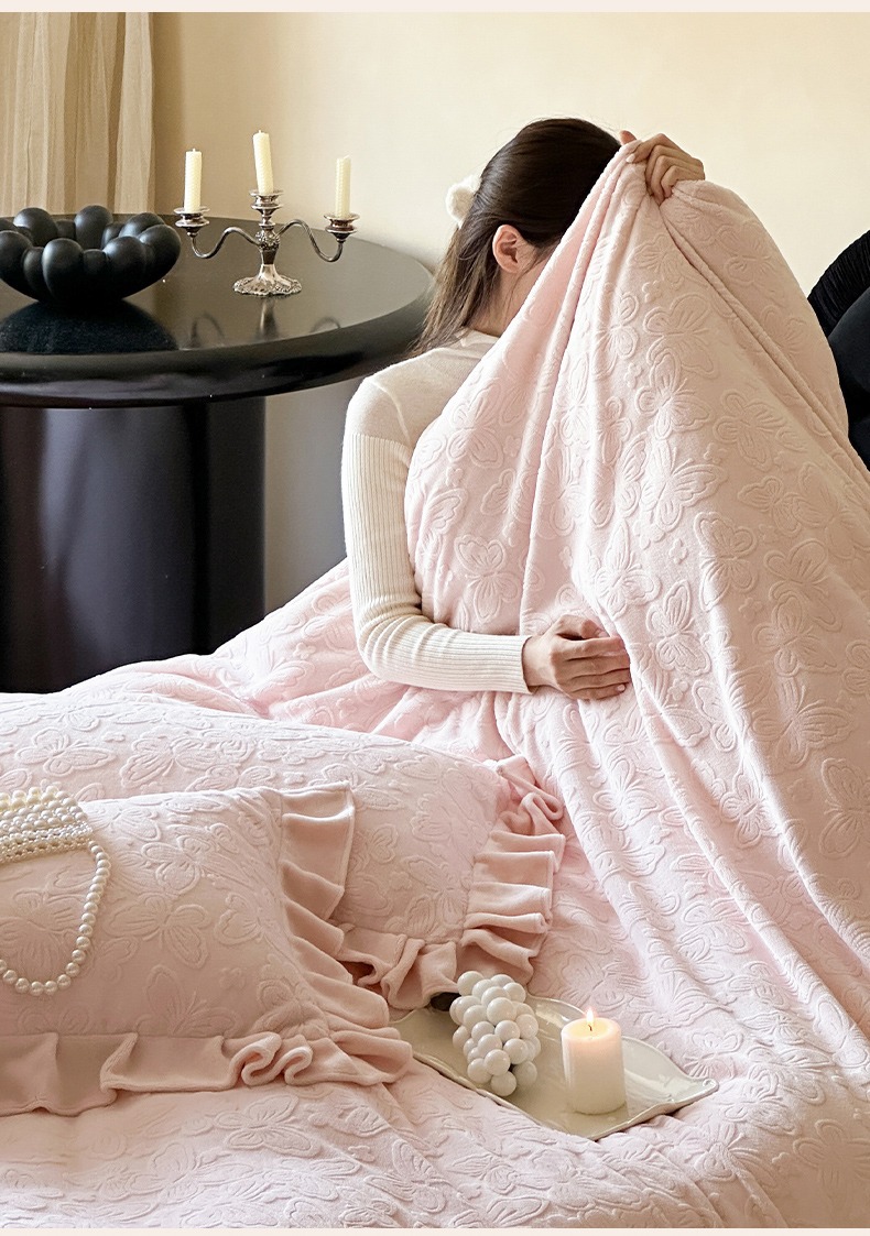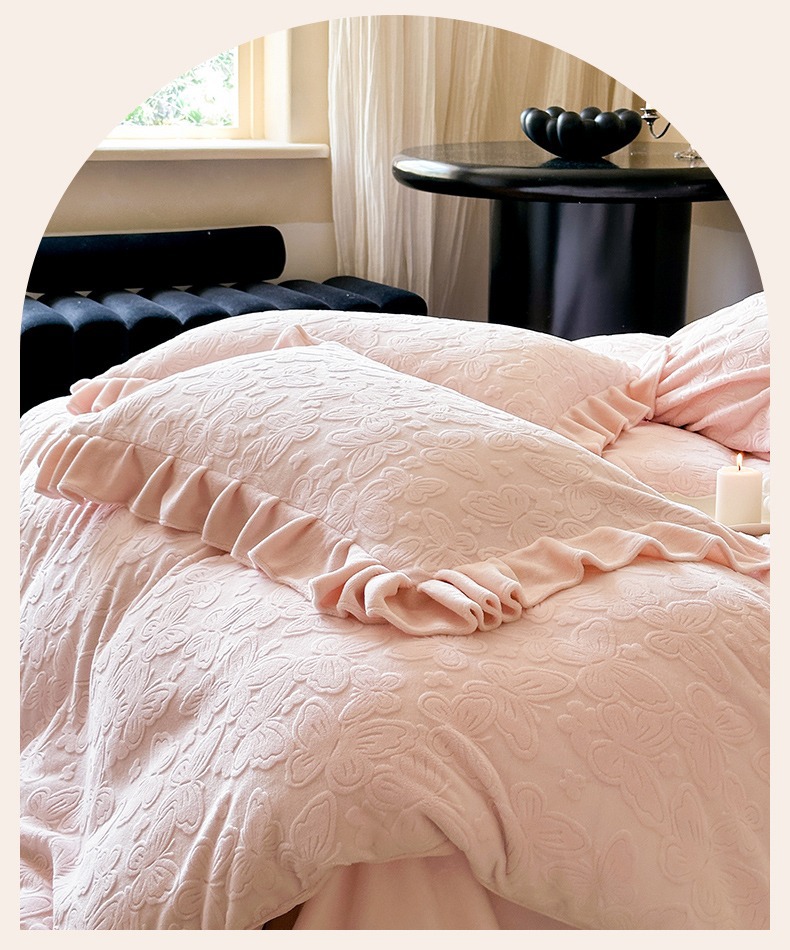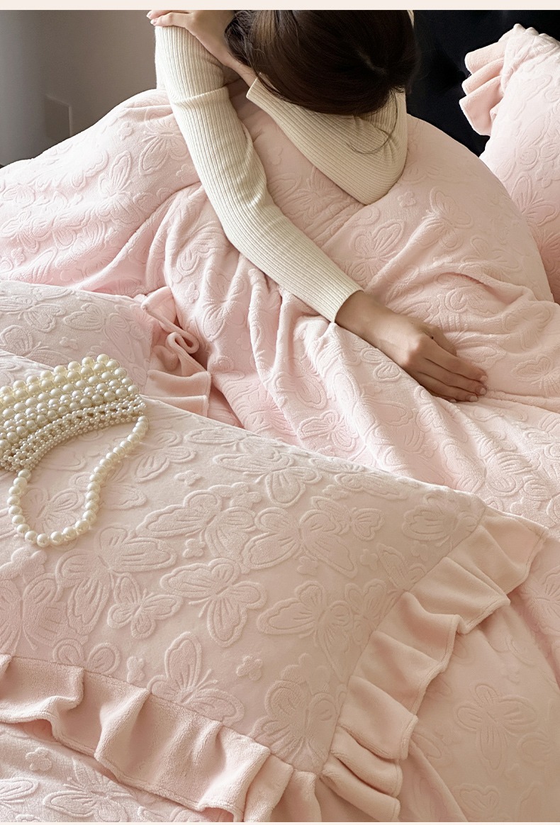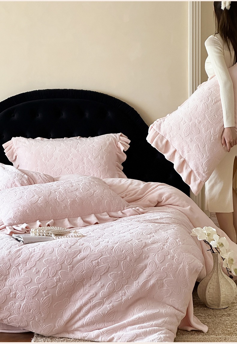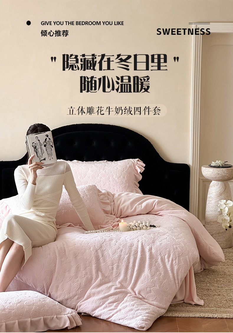 冬用厚手マット無地立体彫刻ミルクベルベット4点セットベッドシーツ寝具