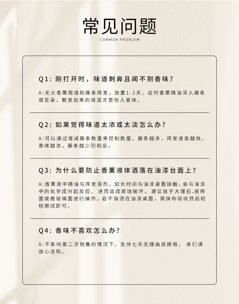 250ML(オイリーで香りが強く、籐5本無料),500ML(油性の強い香り、籐10本無料),1000ML(デフォルトは白いスクエアボトル)(油性で強い香り、籐20本無料)
