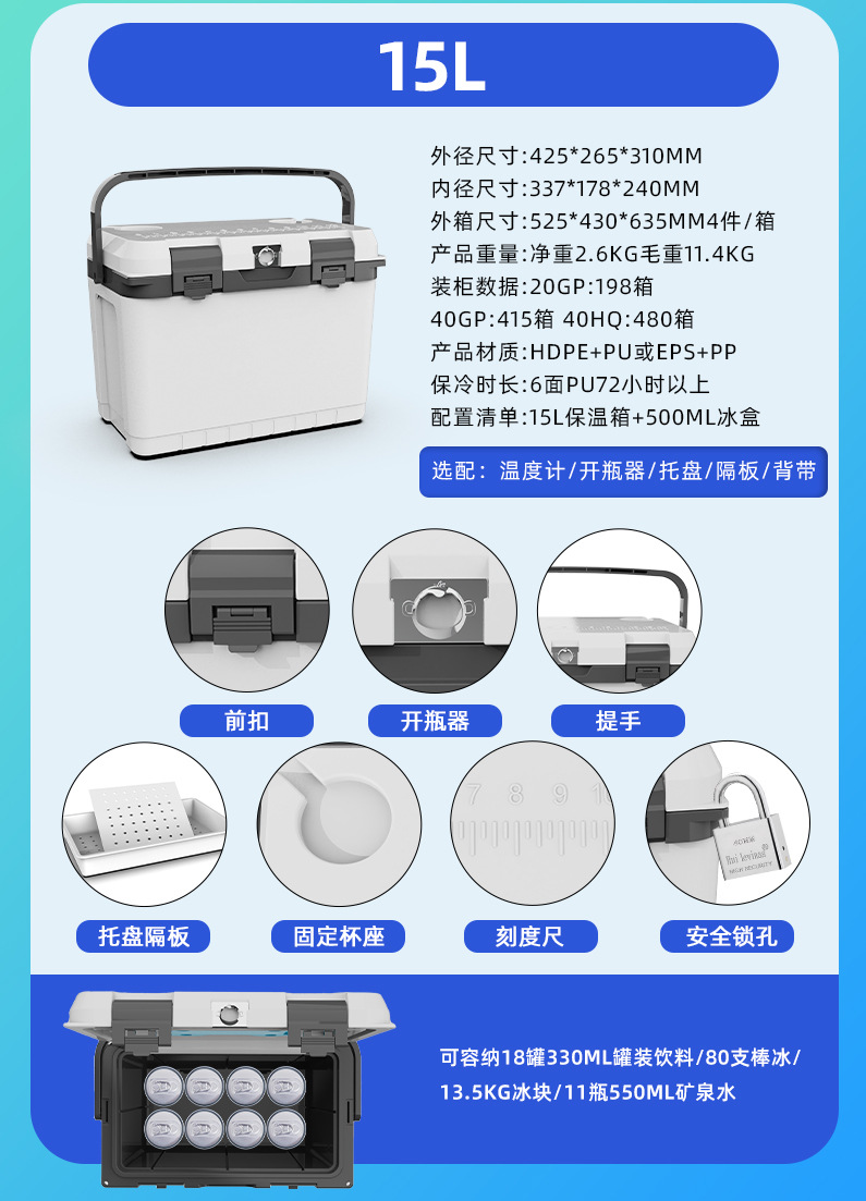 【新商品登場】15L ホワイト - ポータブルポータブル [EPS 24時間保冷] 密閉バックル - スケール - 無料アイスバッグ