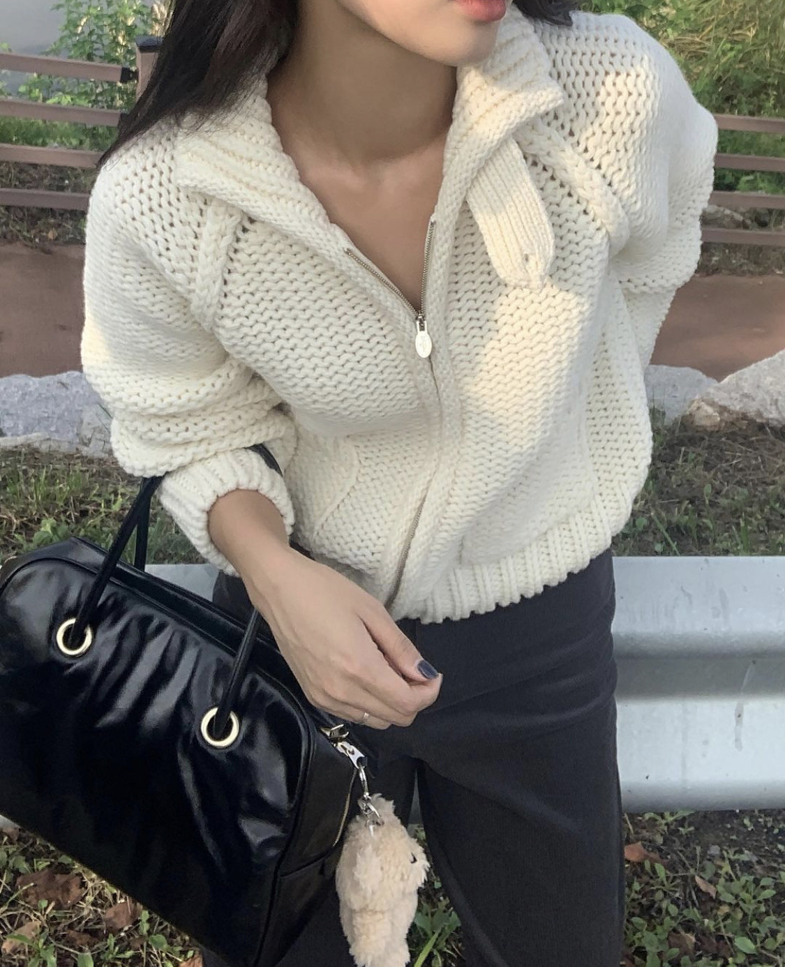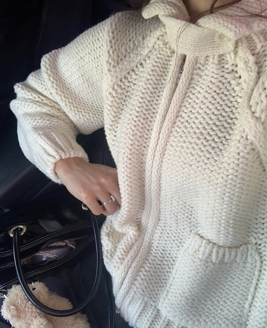 現物八乳重ポンド粗針セーターコート女性韓系立襟厚いニットカーディガンthe barnn * t