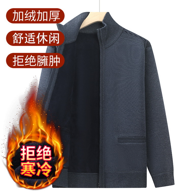 中高年のお父さんのセーターの男性の秋冬のベルベットの上着の老人の保温のメリヤスのゆったりしているレジャーのおじいさんは服を詰めます。
