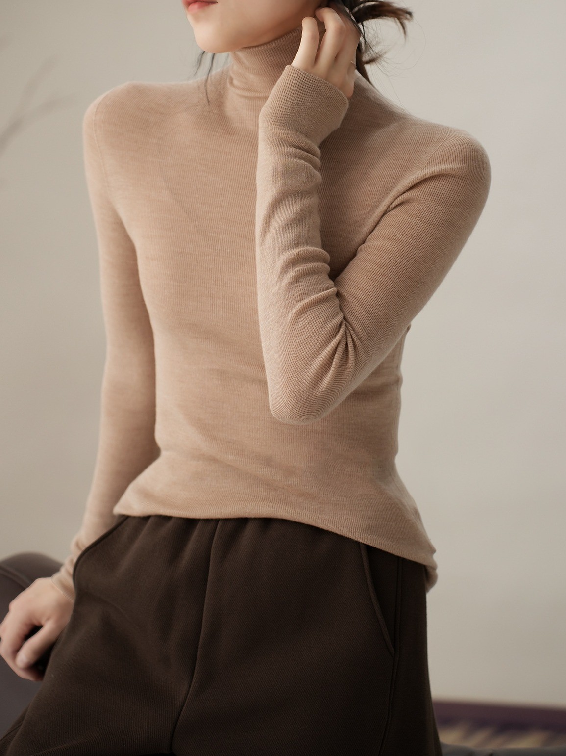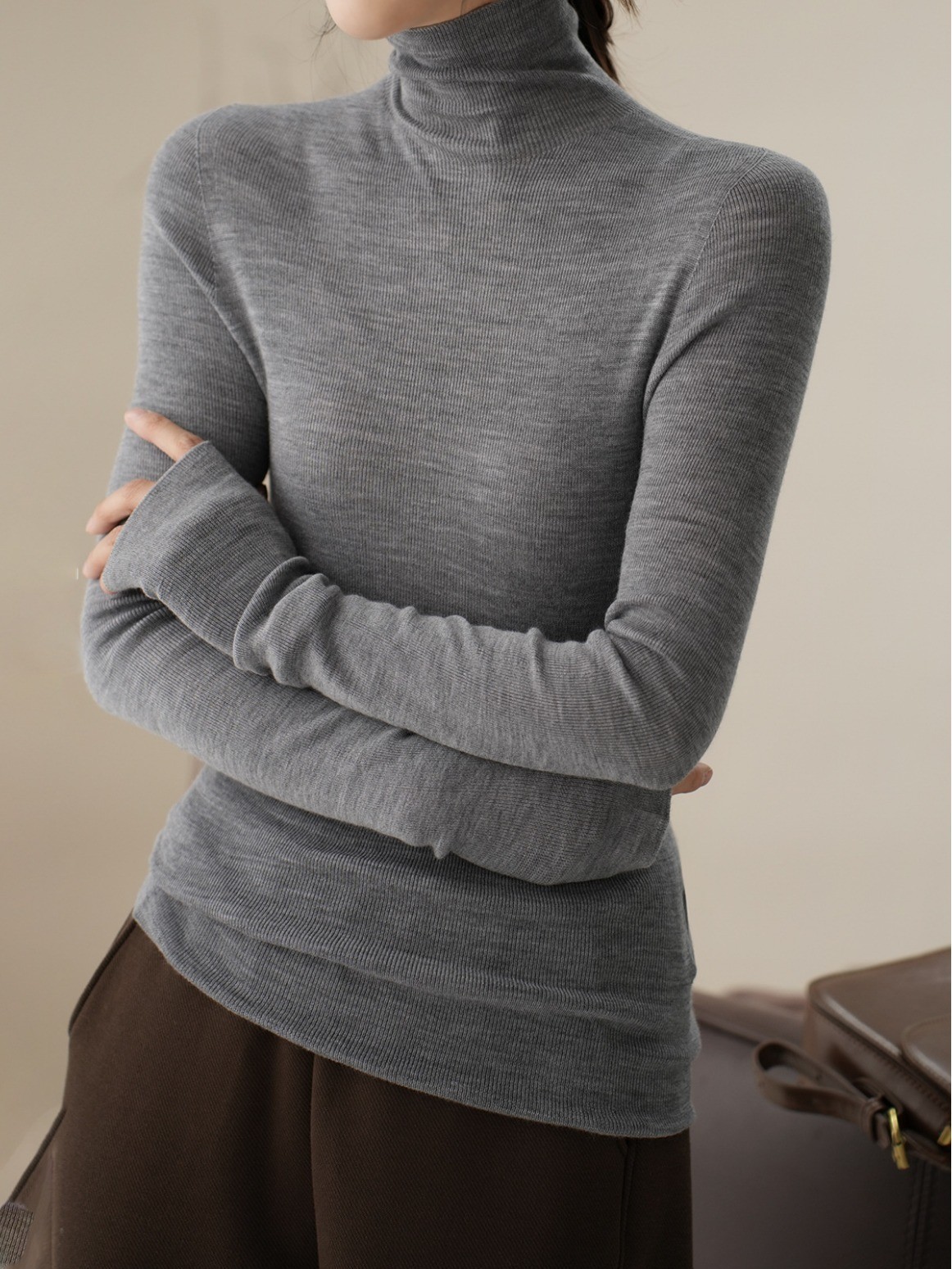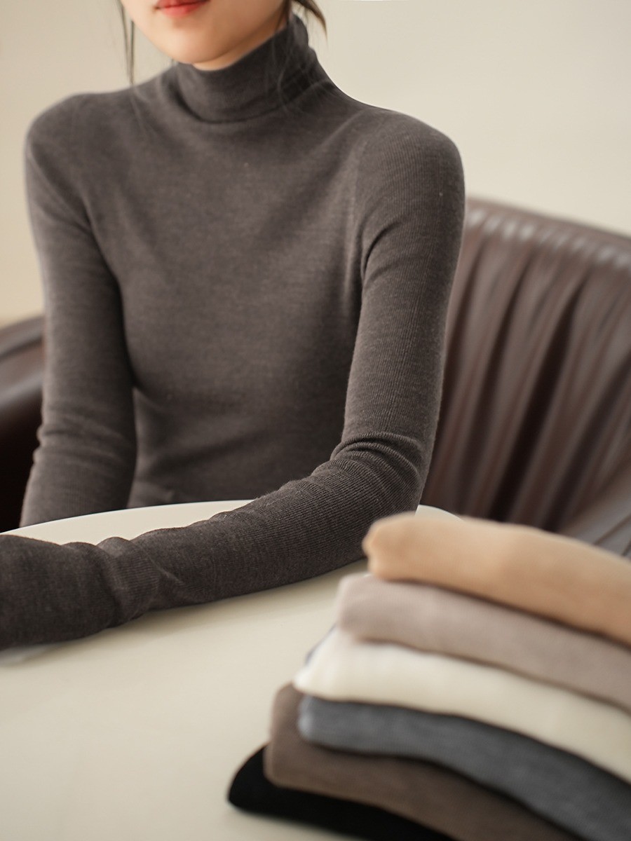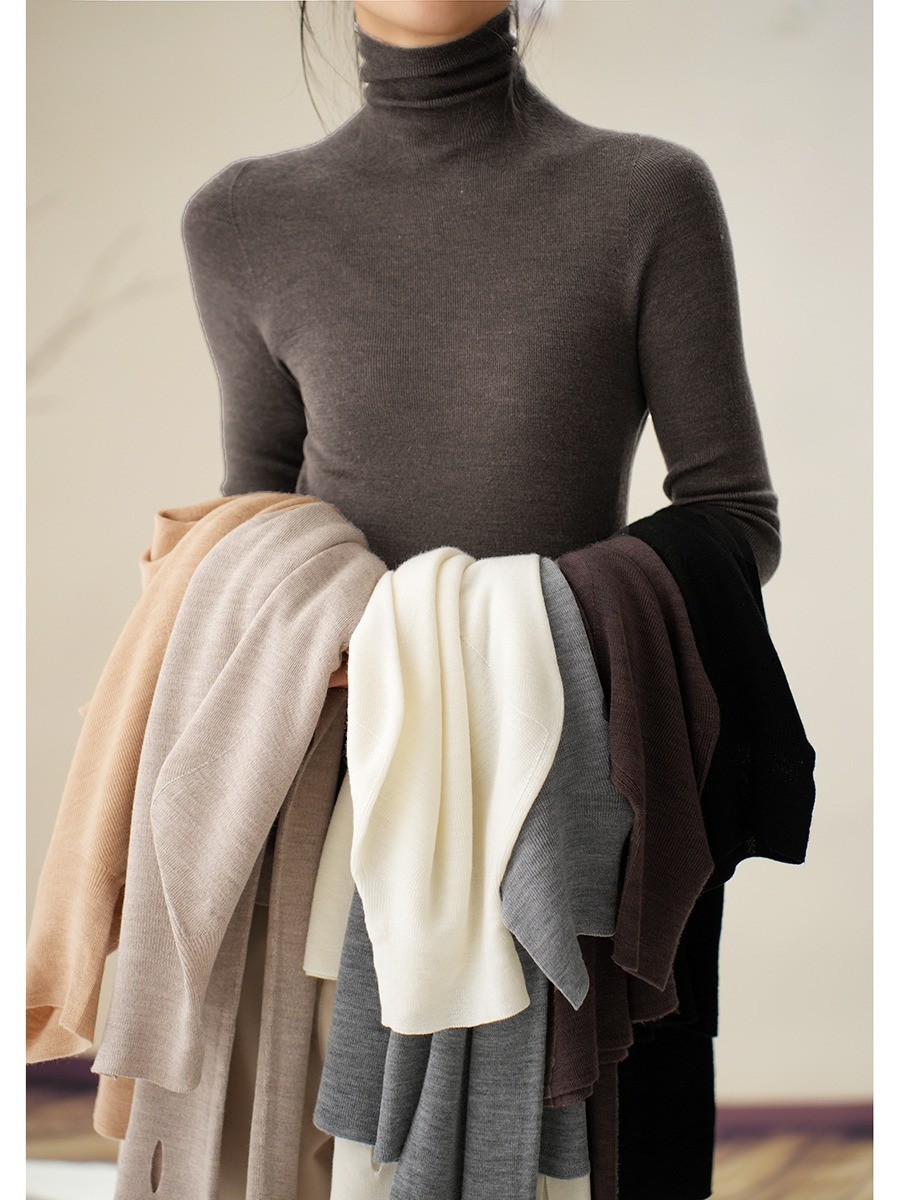 揚子糸 120 カウント シームレス ワンピース レディース ウール タートルネック セーター ボトリング シャツ 長袖