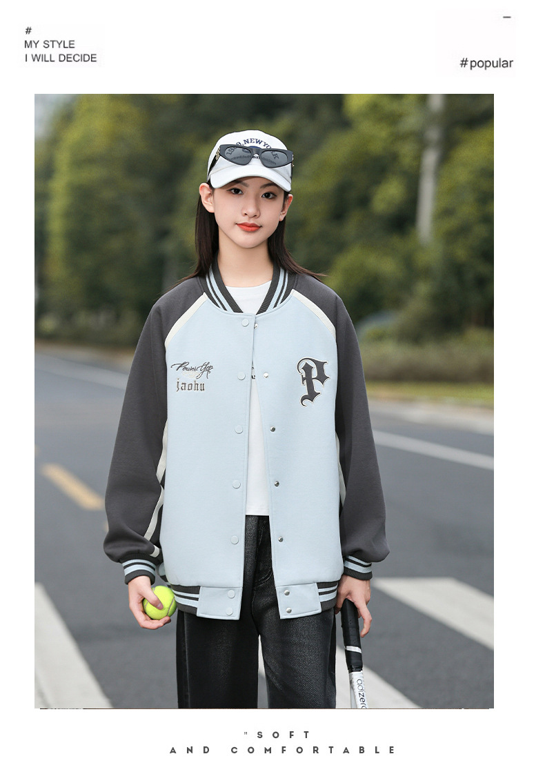 女の子のコート春秋服の中の大きいサイズのゆったりした野球服のジャケットの青少年の中学校の女の子の上着の洋風